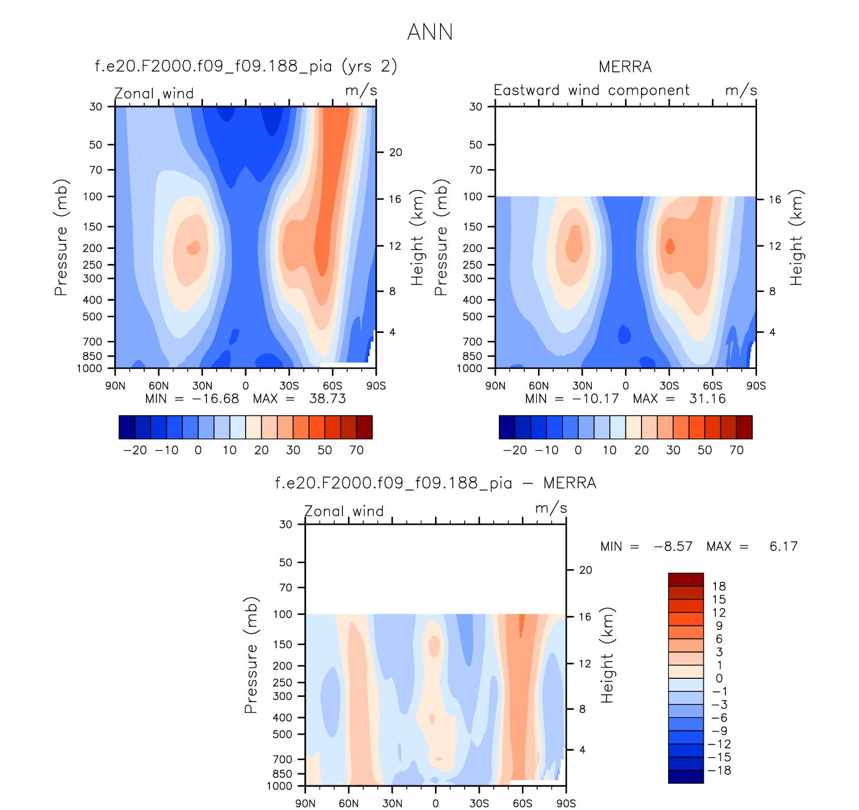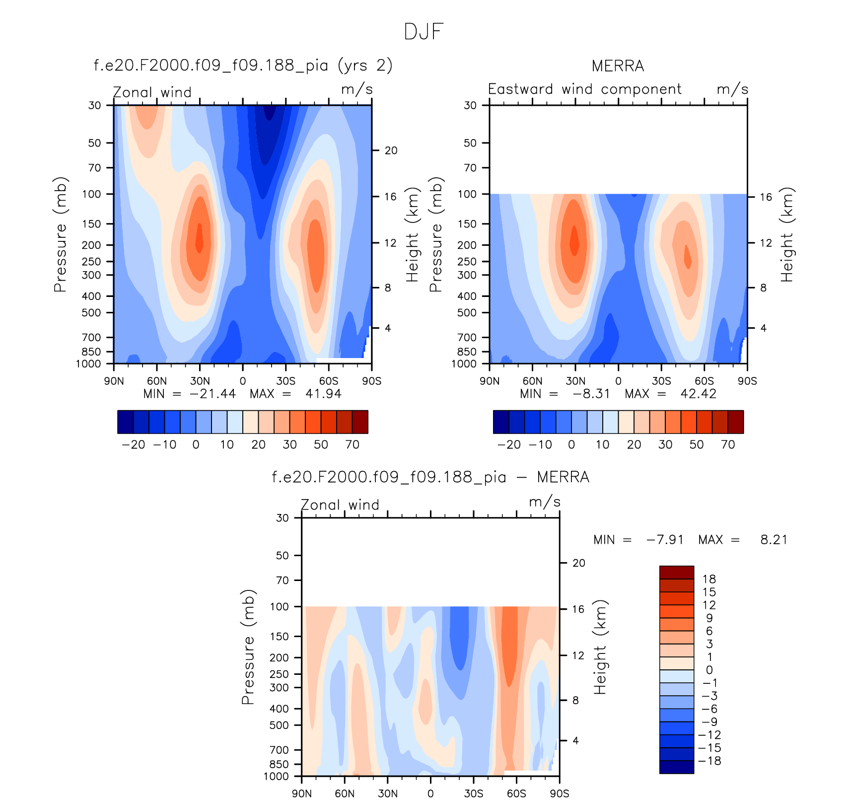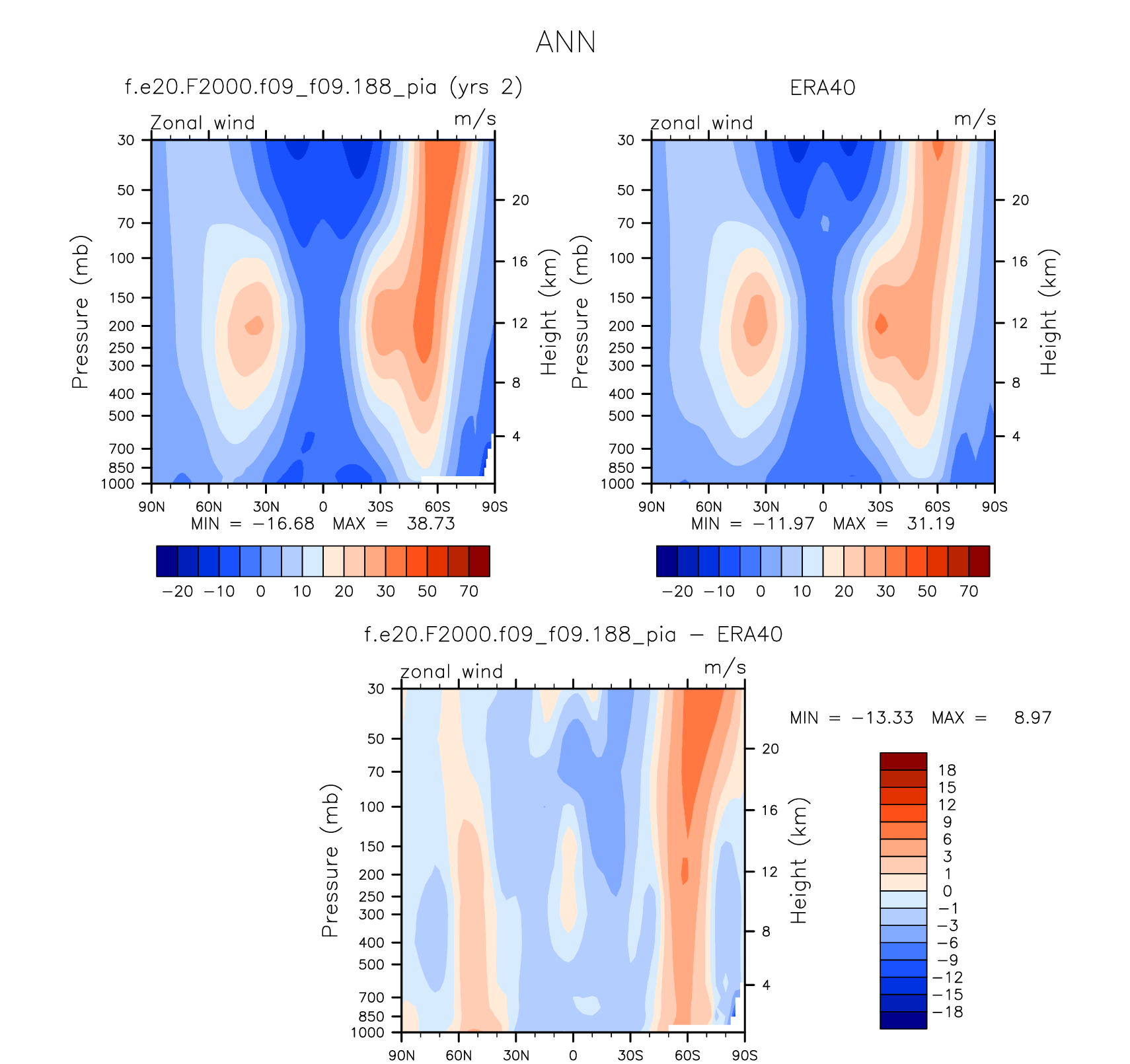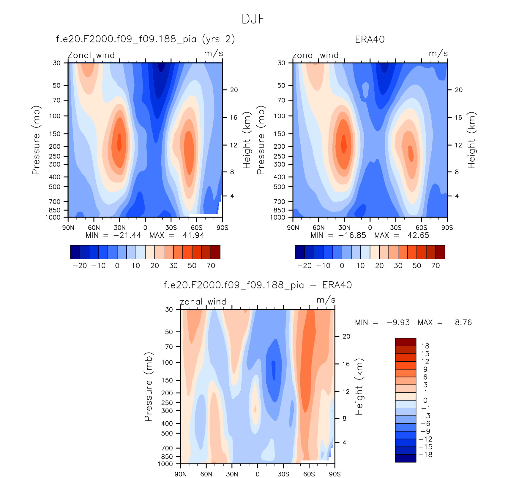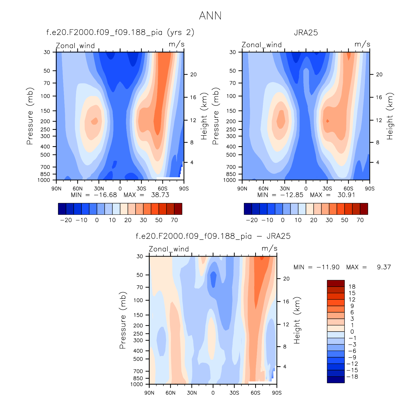 DIAG Set 4 - Vertical contour plots of DJF, JJA and ANN zonal means