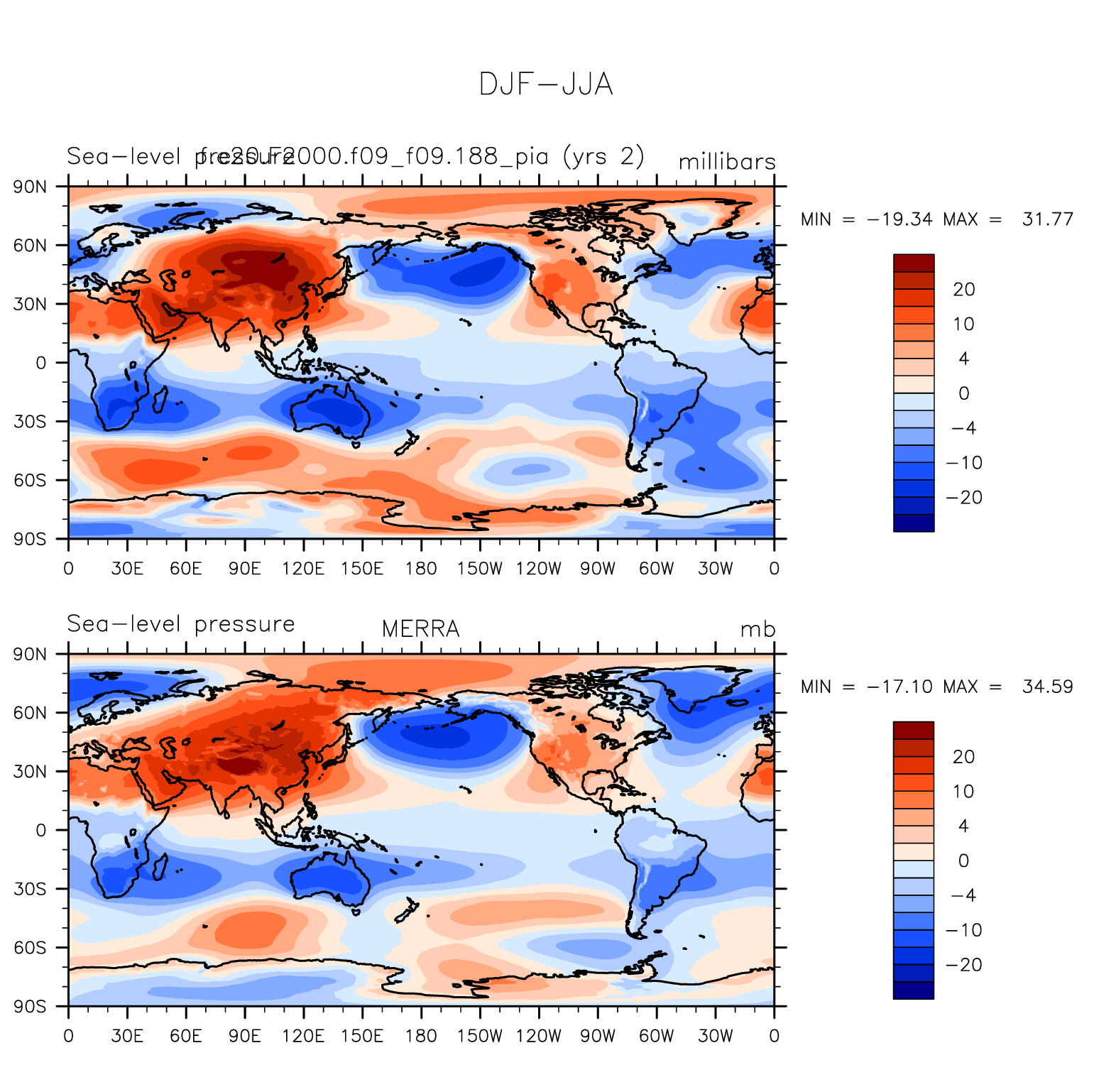 f.e20.F2000.f09_f09.188_pia DIAG Set 9 - Horizontal contour plots of DJF-JJA differences