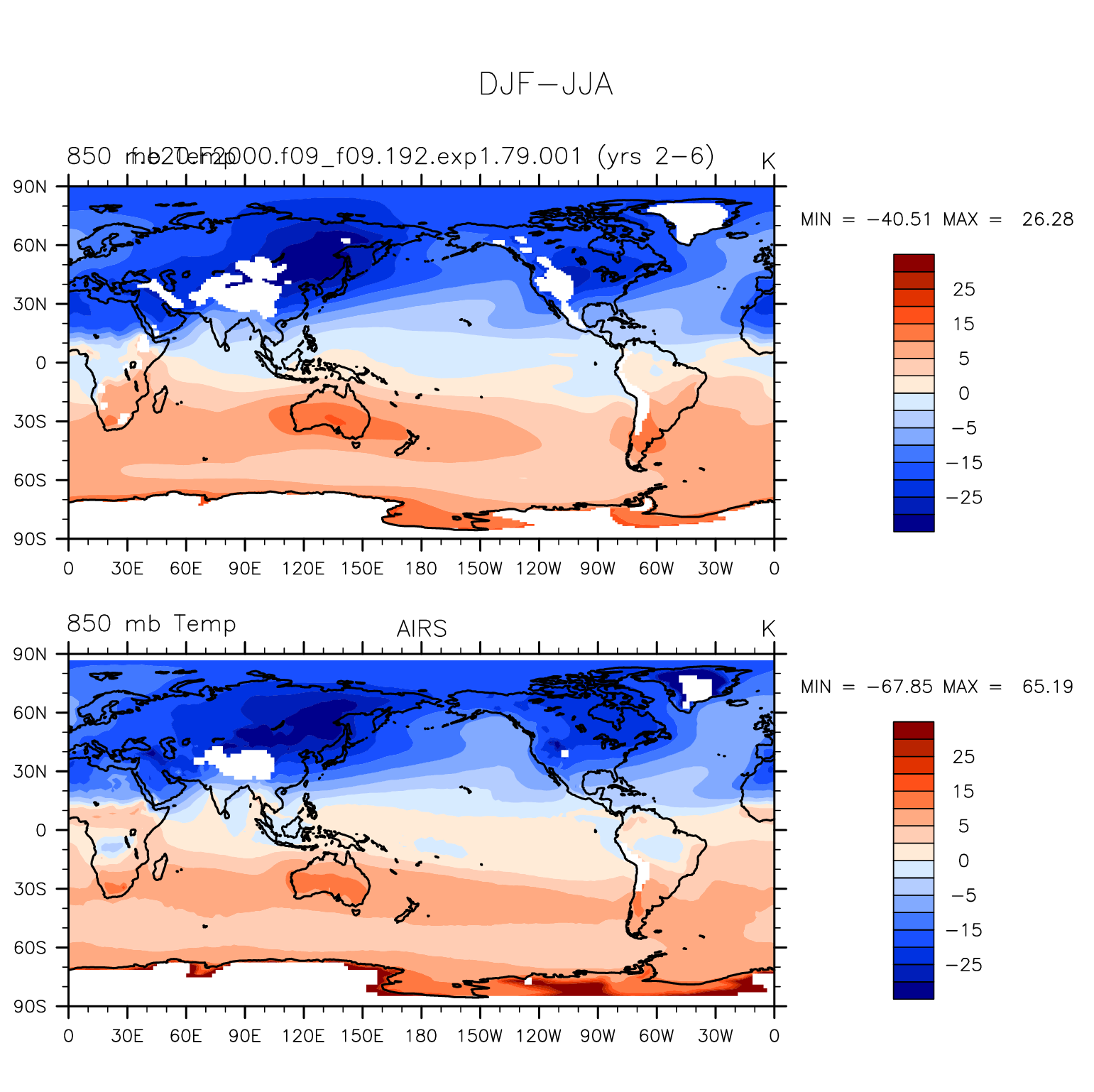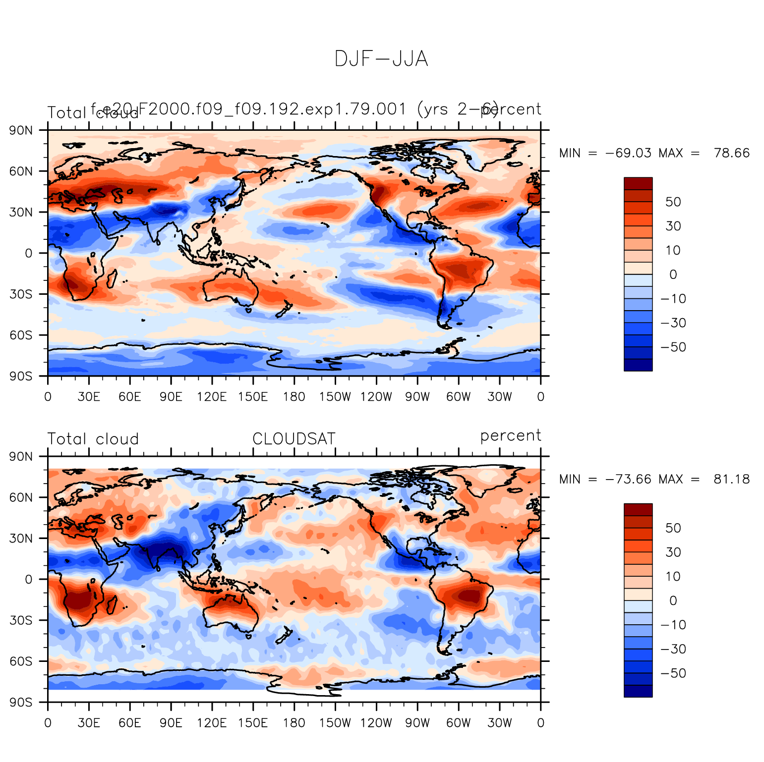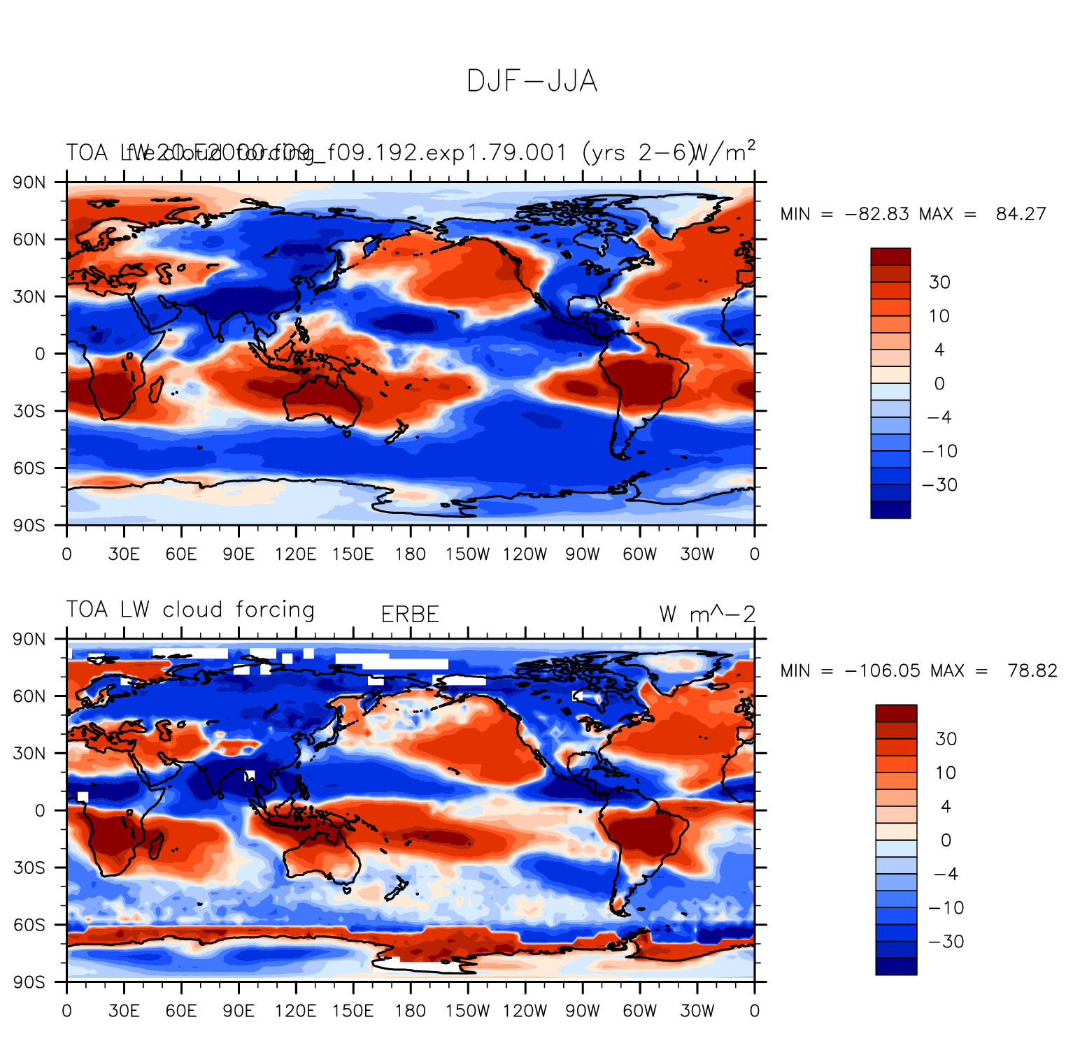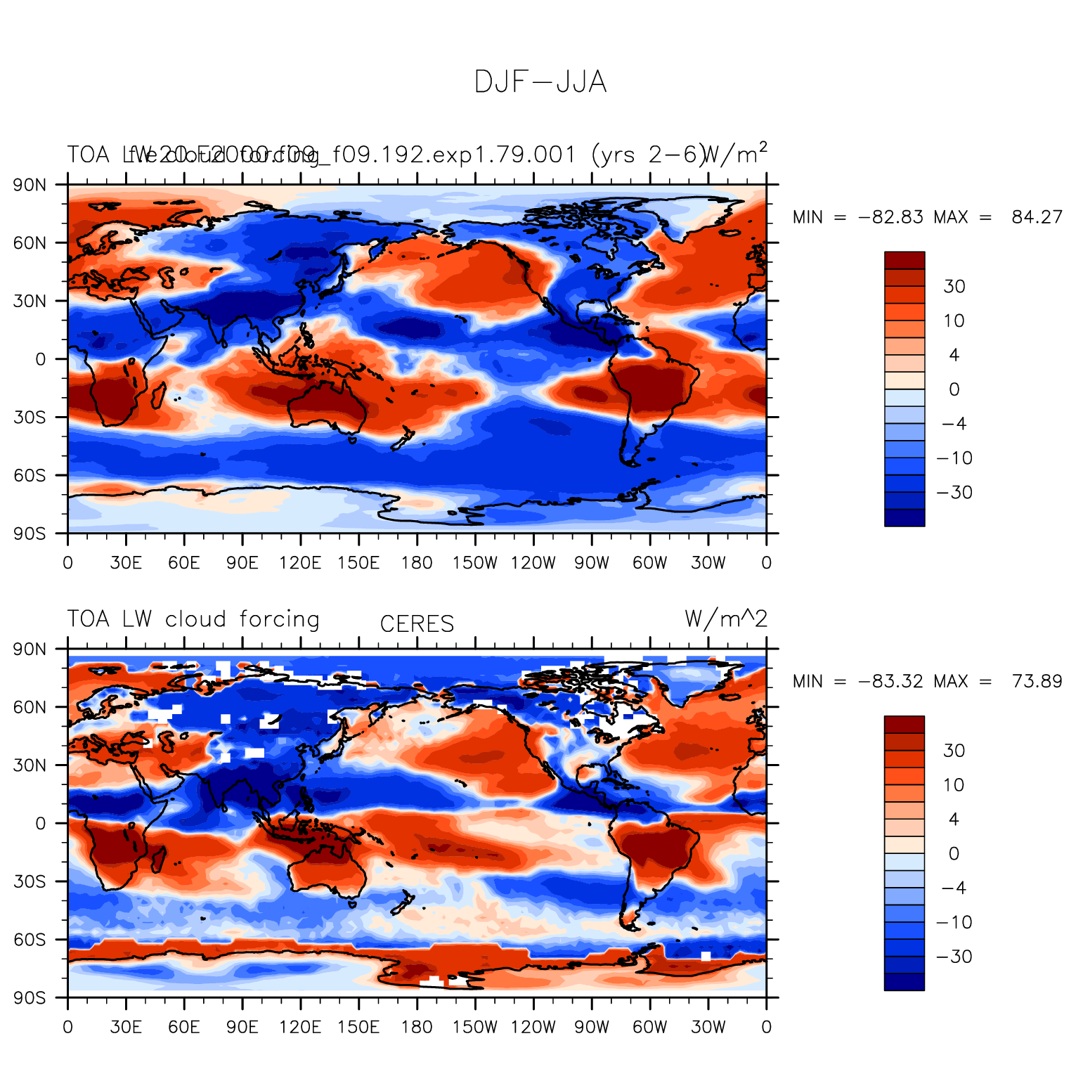 f.e20.F2000.f09_f09.192.exp1.79.001 DIAG Set 9 - Horizontal contour plots of DJF-JJA differences