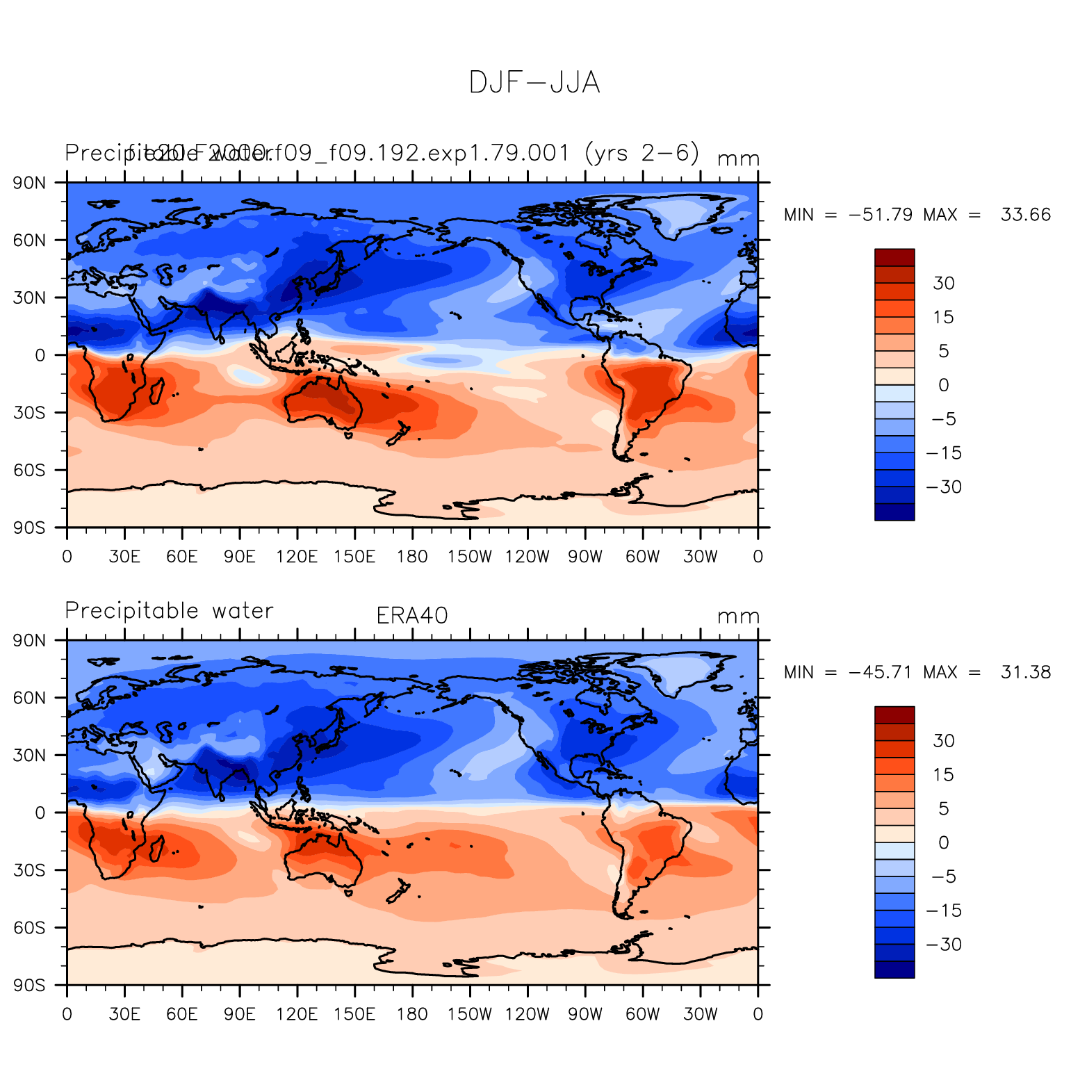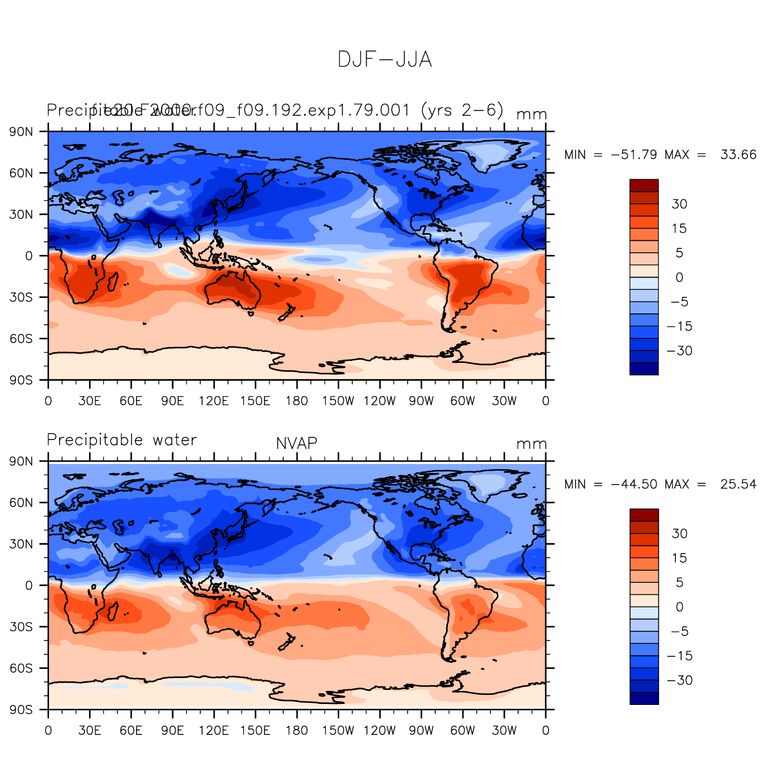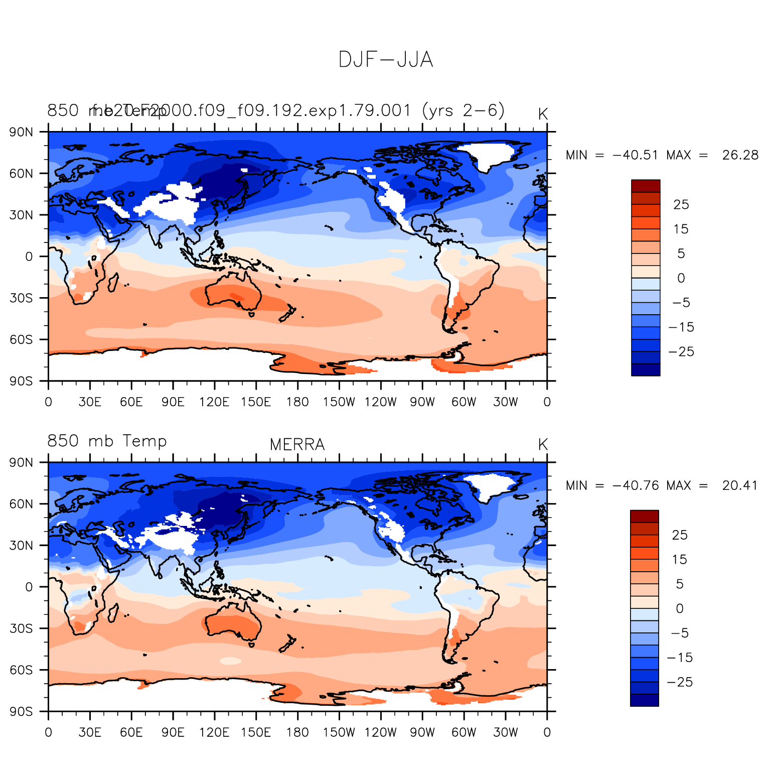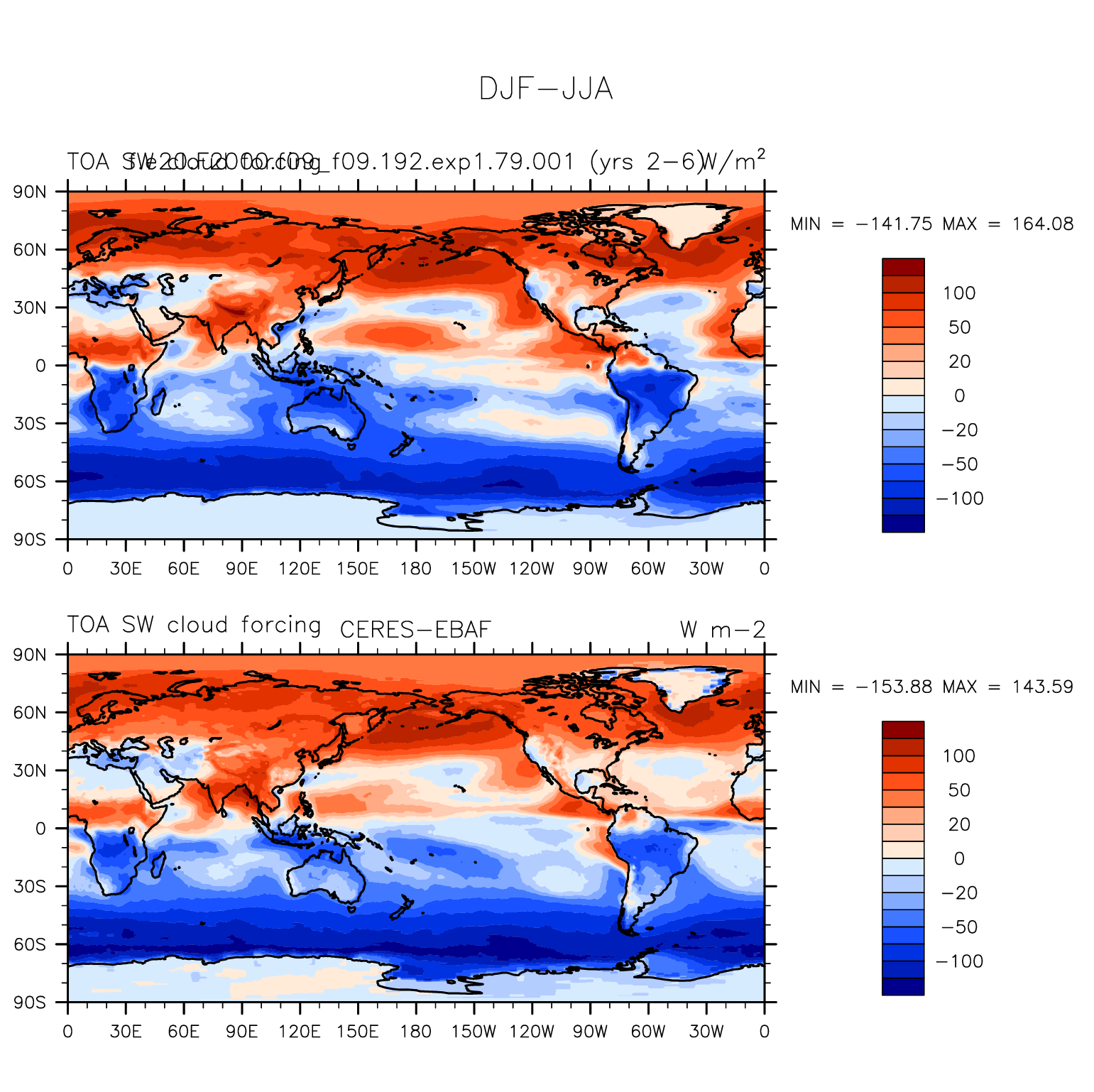 f.e20.F2000.f09_f09.192.exp1.79.001 DIAG Set 9 - Horizontal contour plots of DJF-JJA differences