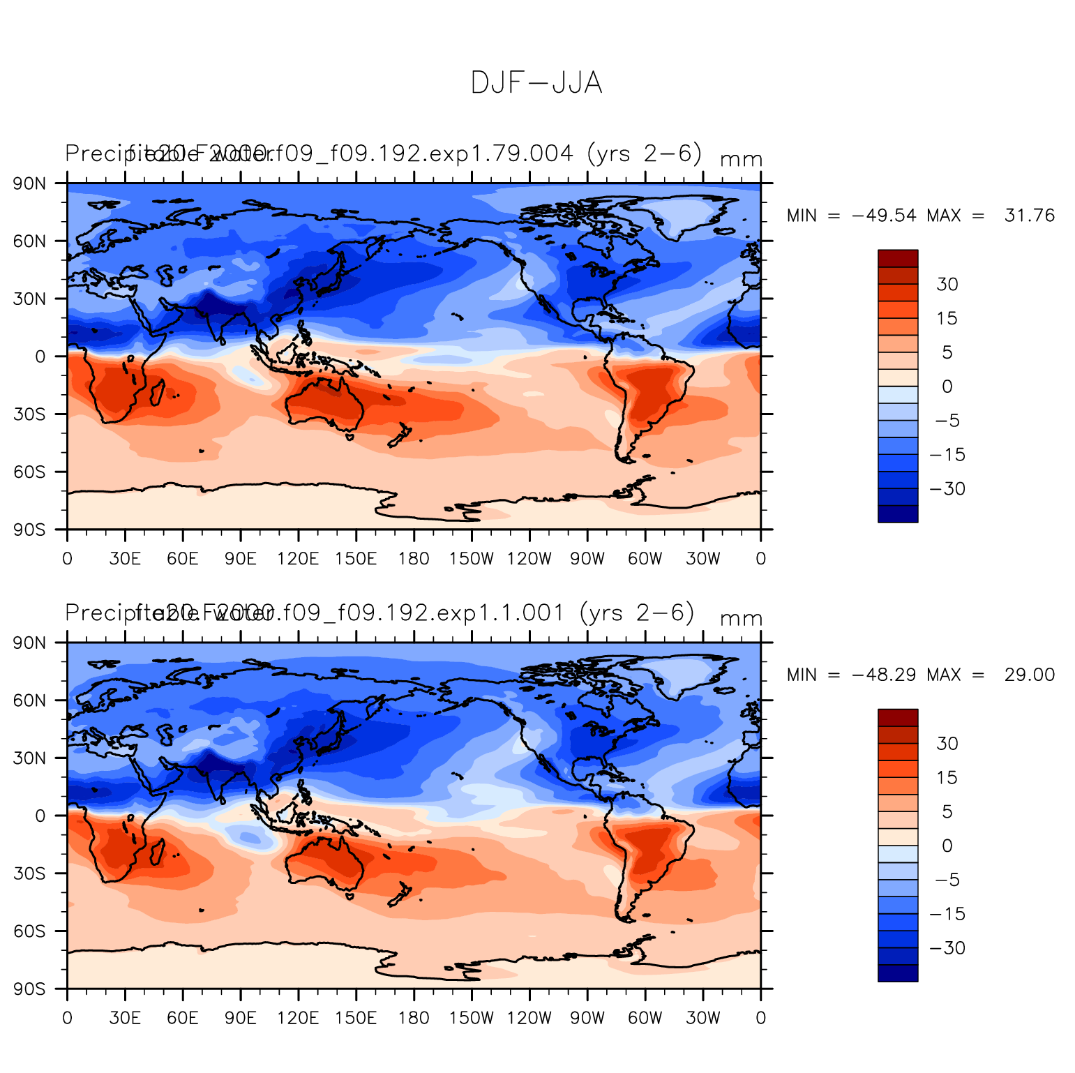 DIAG Set 9 - Horizontal contour plots of DJF-JJA differences