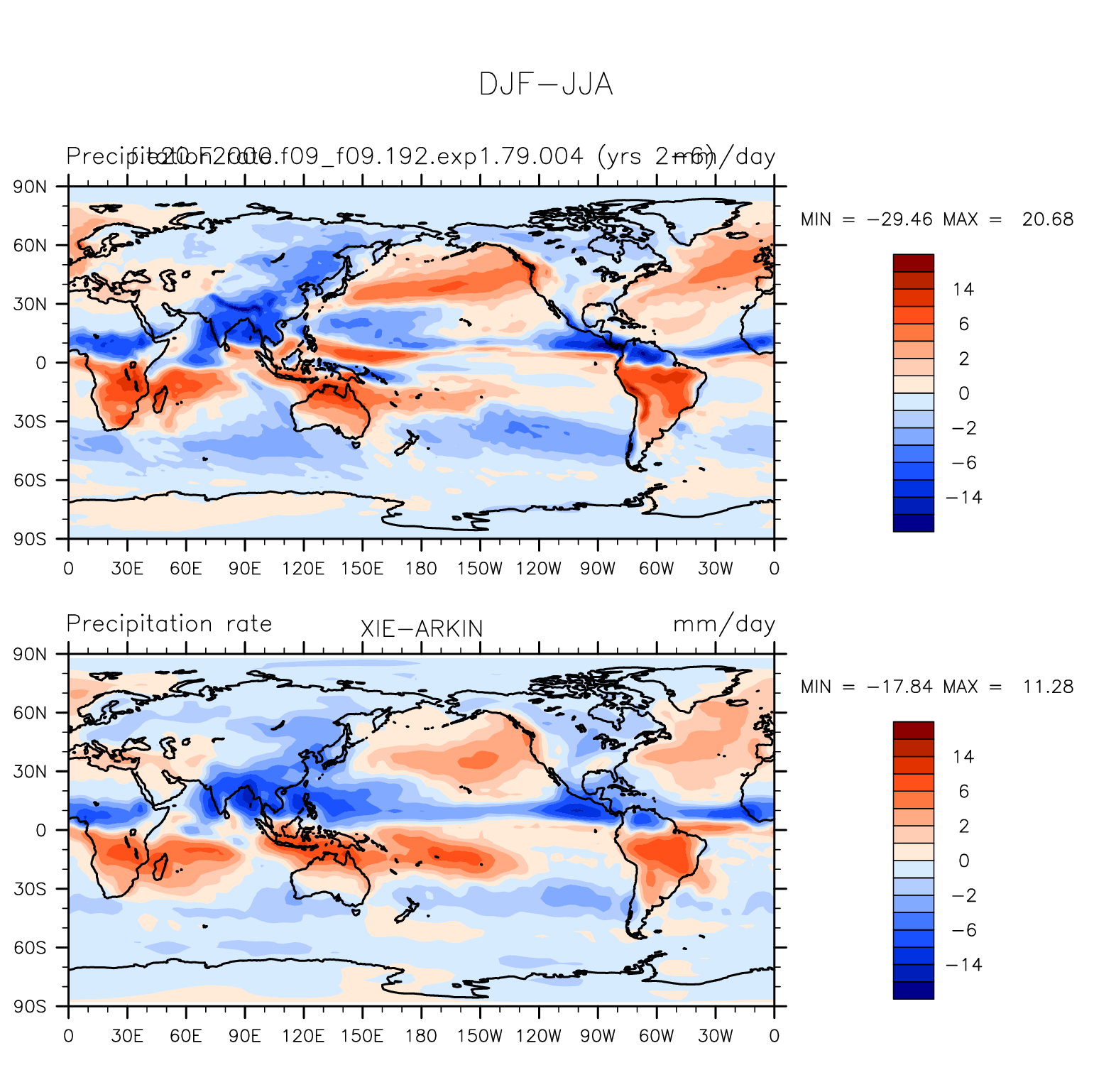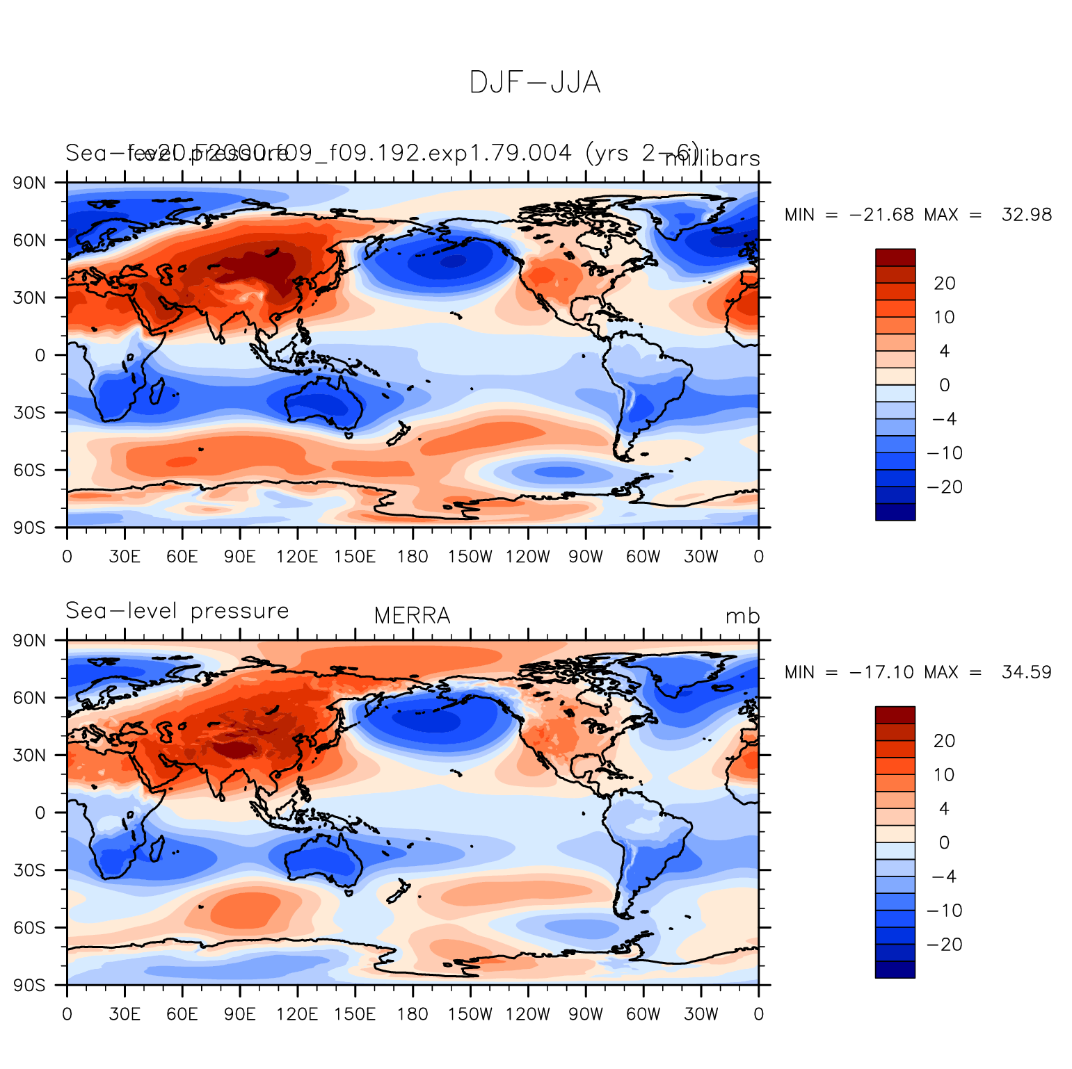 f.e20.F2000.f09_f09.192.exp1.79.004 DIAG Set 9 - Horizontal contour plots of DJF-JJA differences
