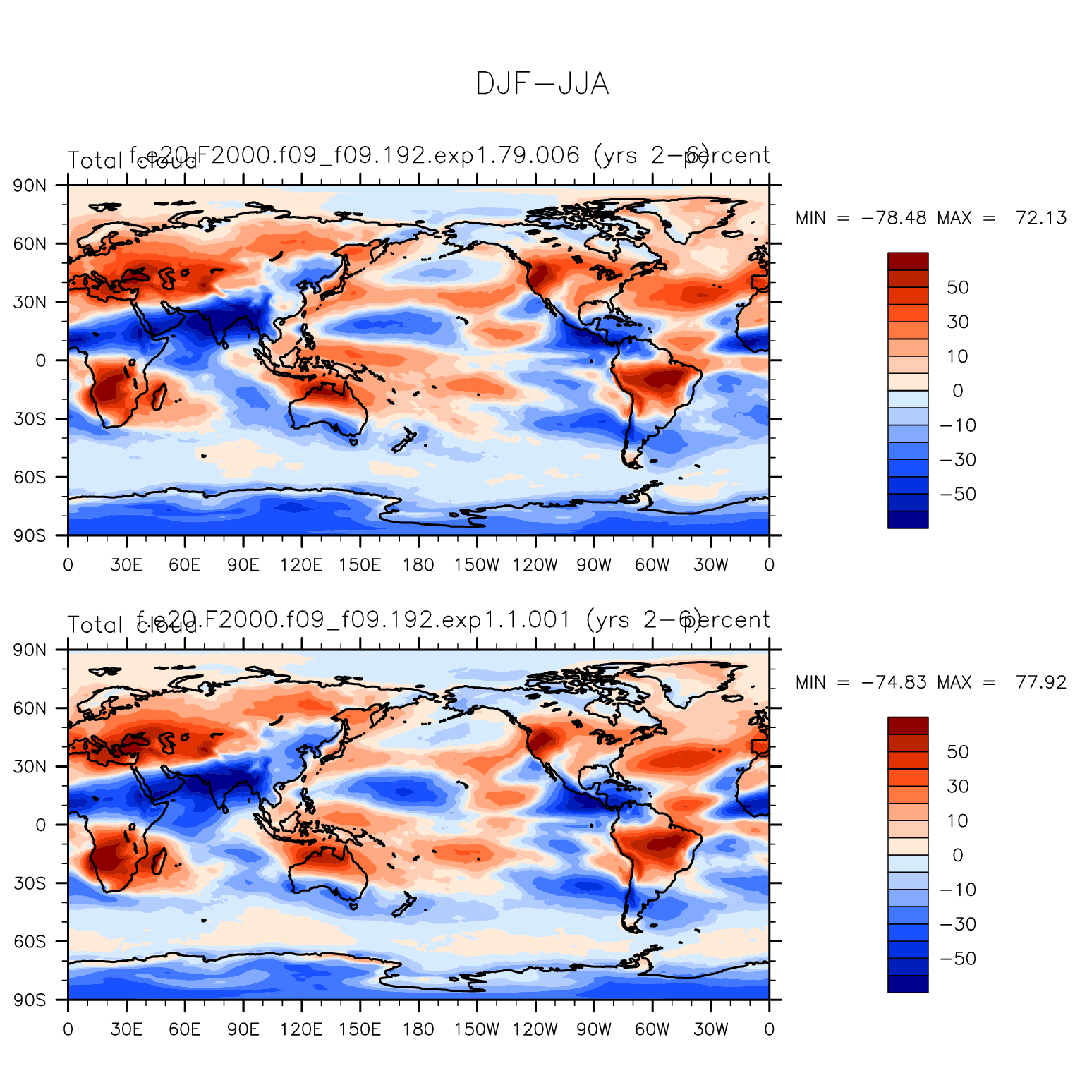 DIAG Set 9 - Horizontal contour plots of DJF-JJA differences