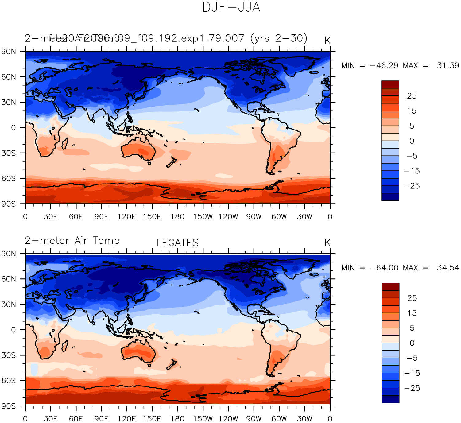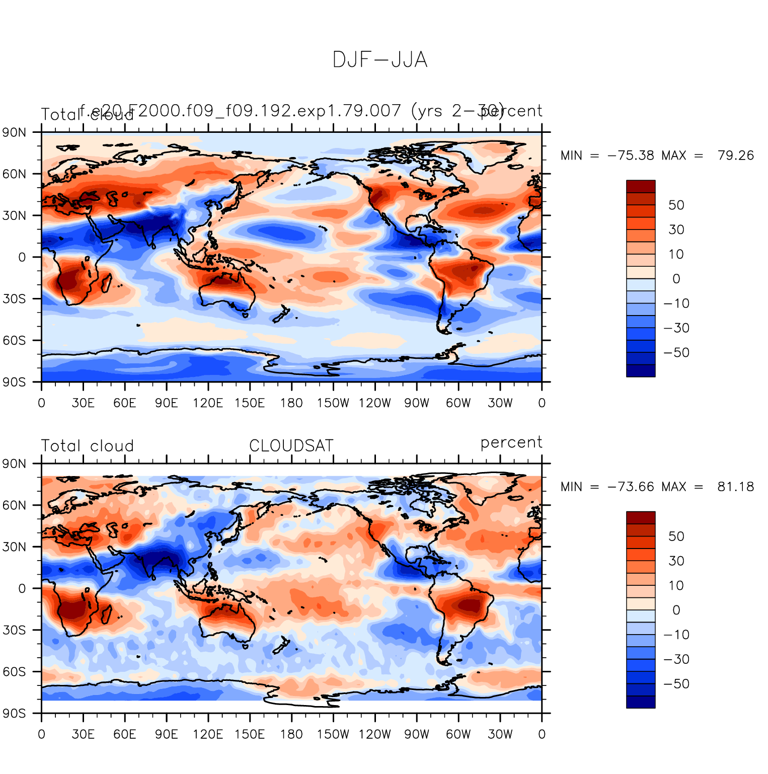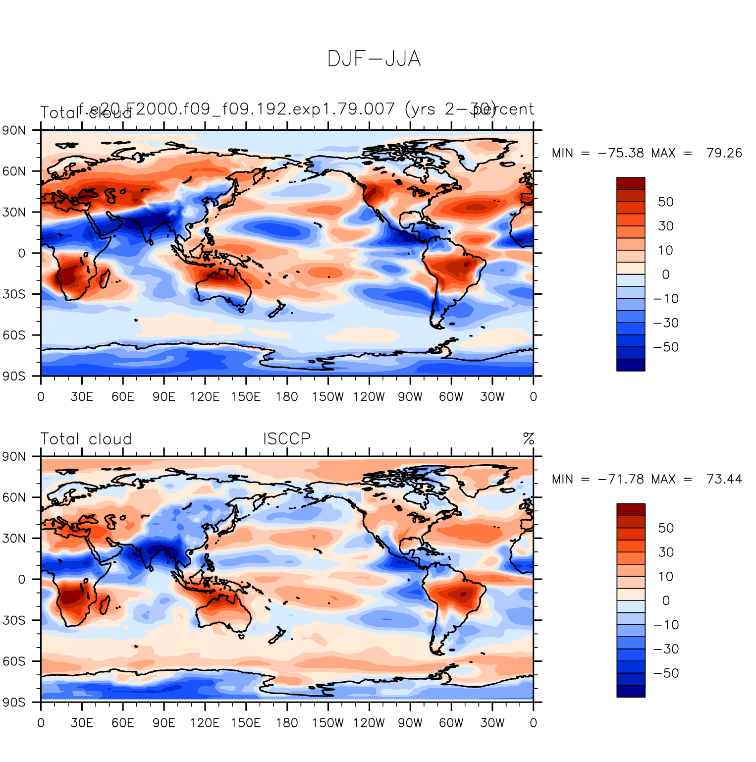 f.e20.F2000.f09_f09.192.exp1.79.007 DIAG Set 9 - Horizontal contour plots of DJF-JJA differences