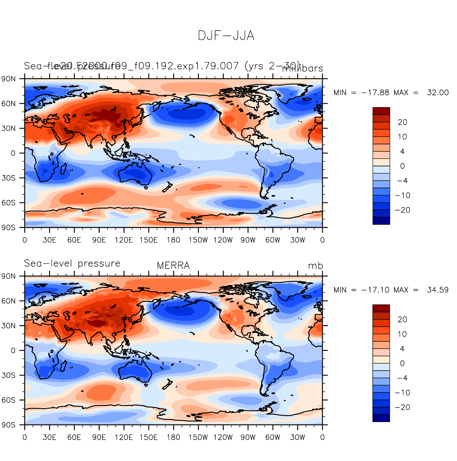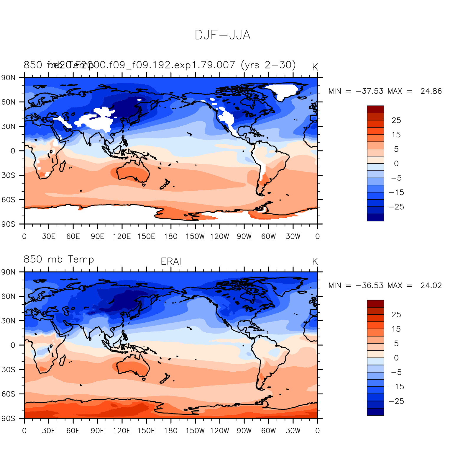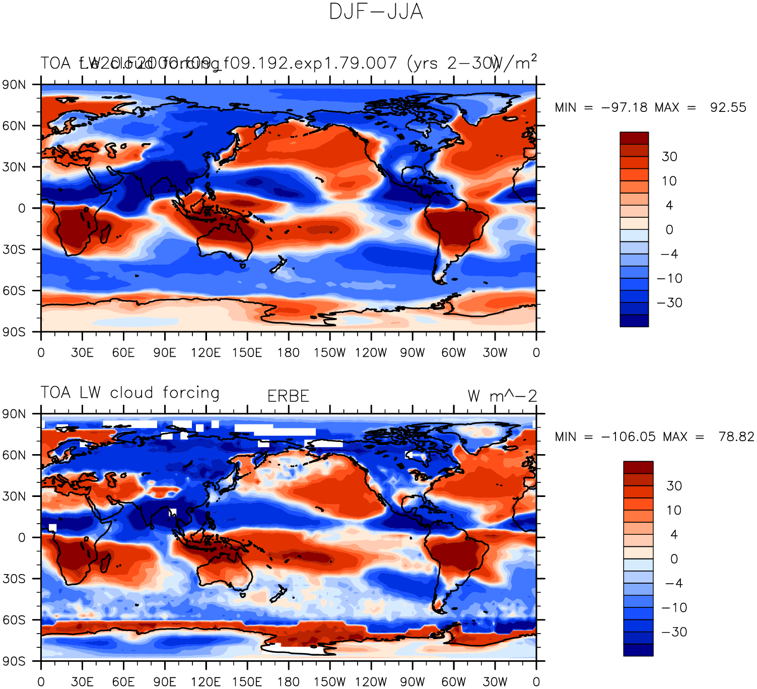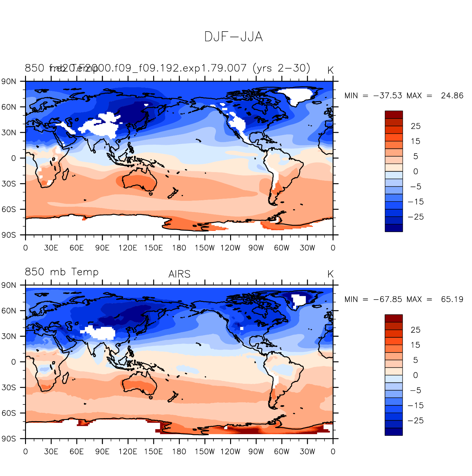 f.e20.F2000.f09_f09.192.exp1.79.007 DIAG Set 9 - Horizontal contour plots of DJF-JJA differences