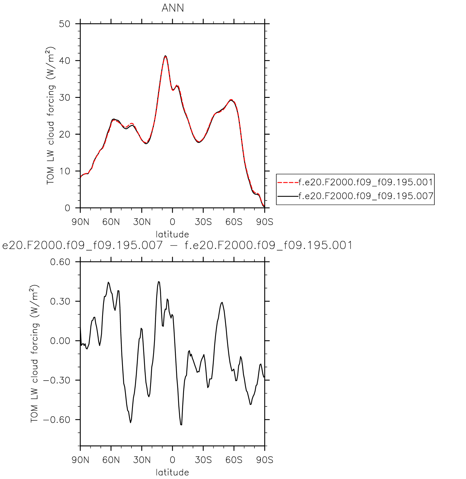 LWCF * Longwave cloud forcing plot plot plot plot plot