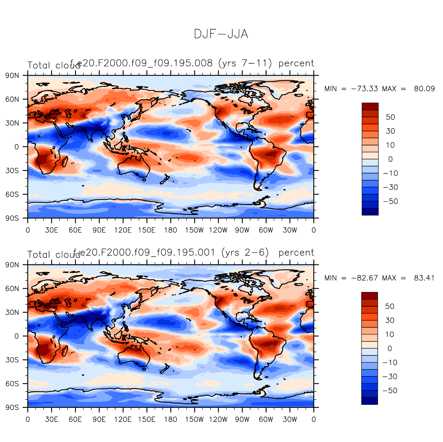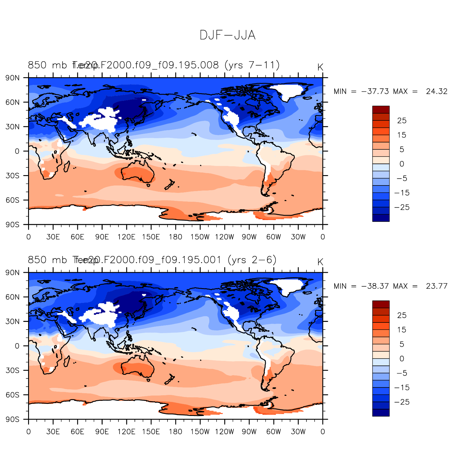 DIAG Set 9 - Horizontal contour plots of DJF-JJA differences