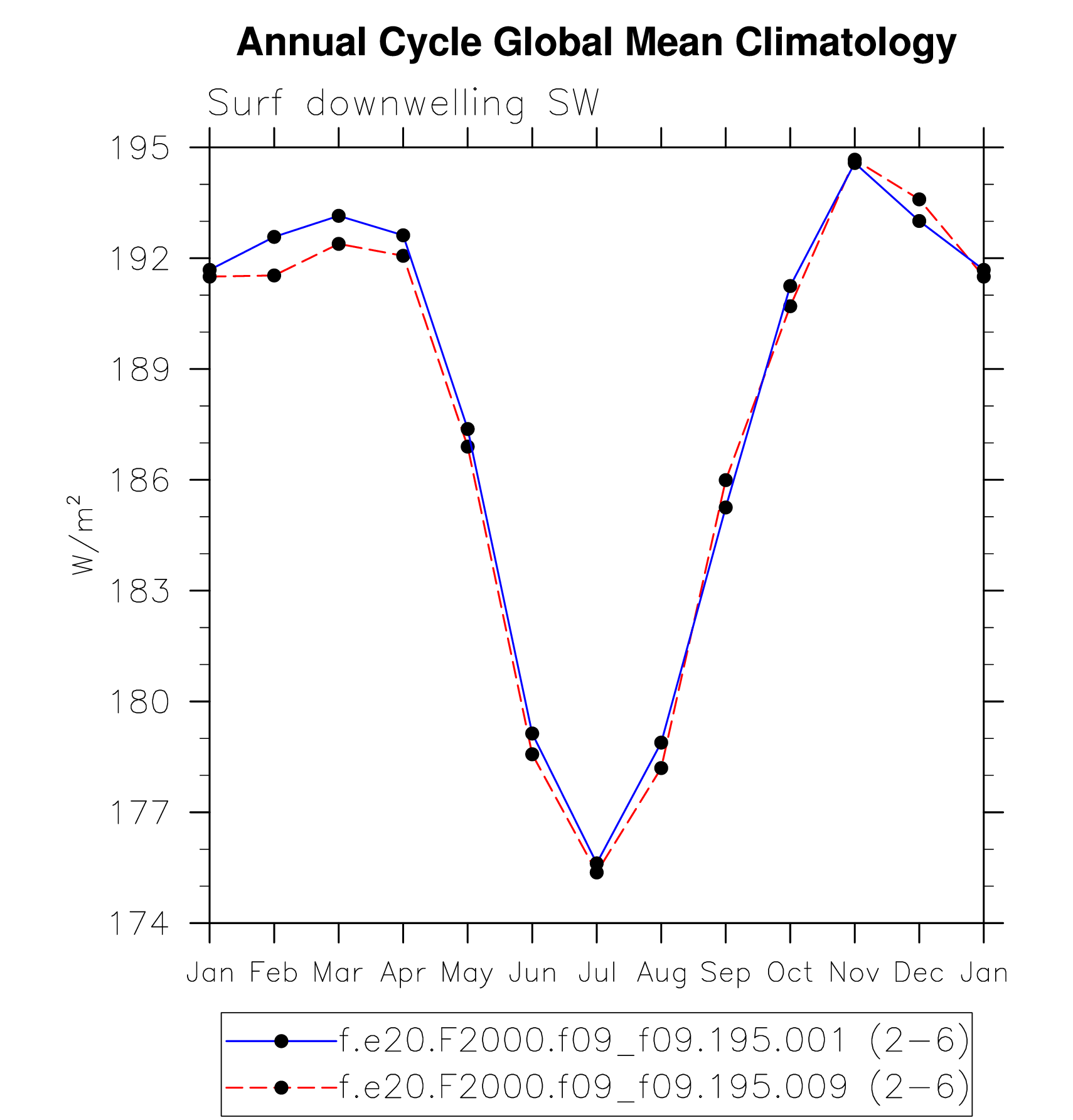 DIAG Set 10 - Annual cycle line plots of global means