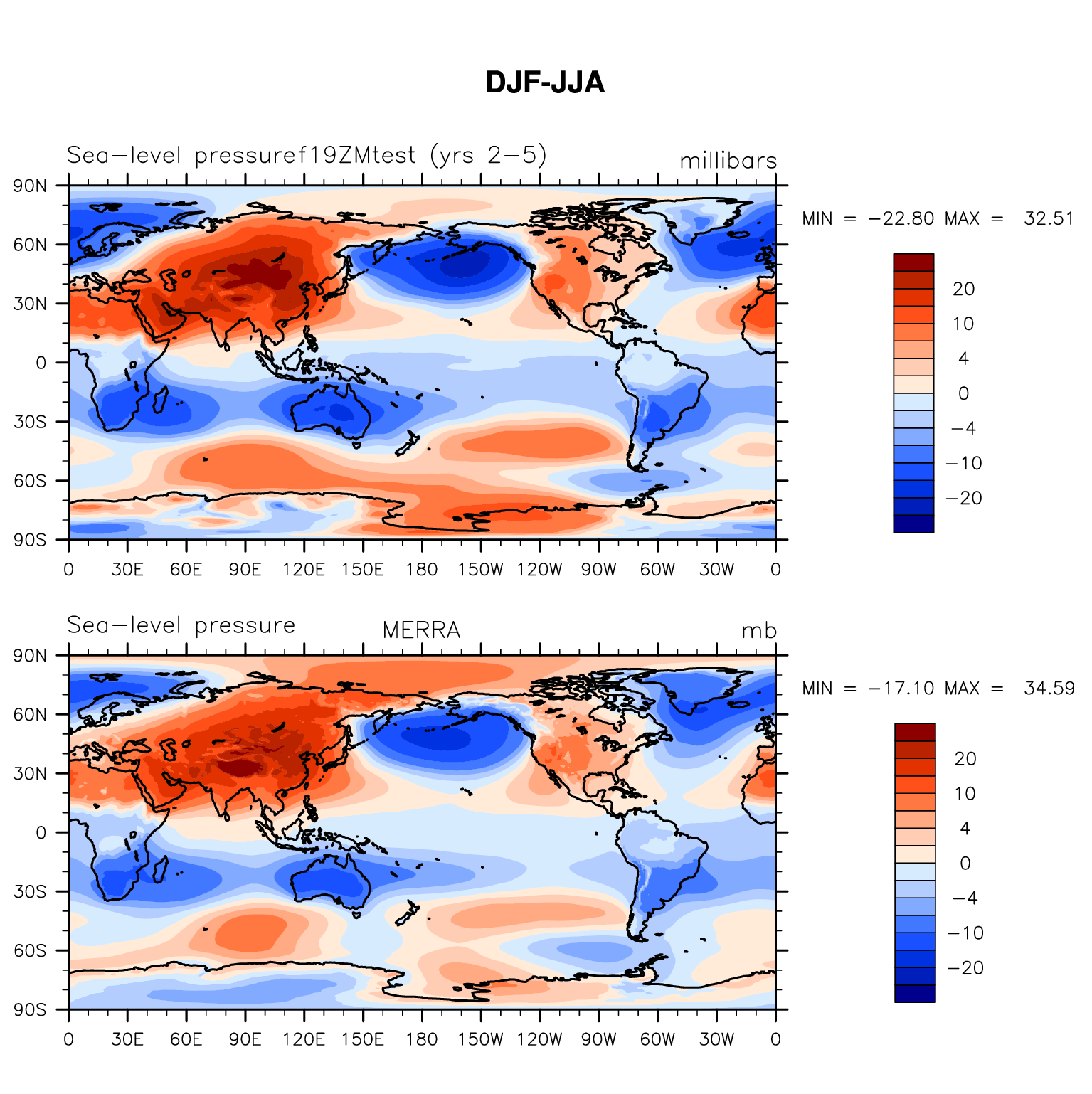 f19ZMtest_CIN+2nd DIAG Set 9 - Horizontal contour plots of DJF-JJA differences