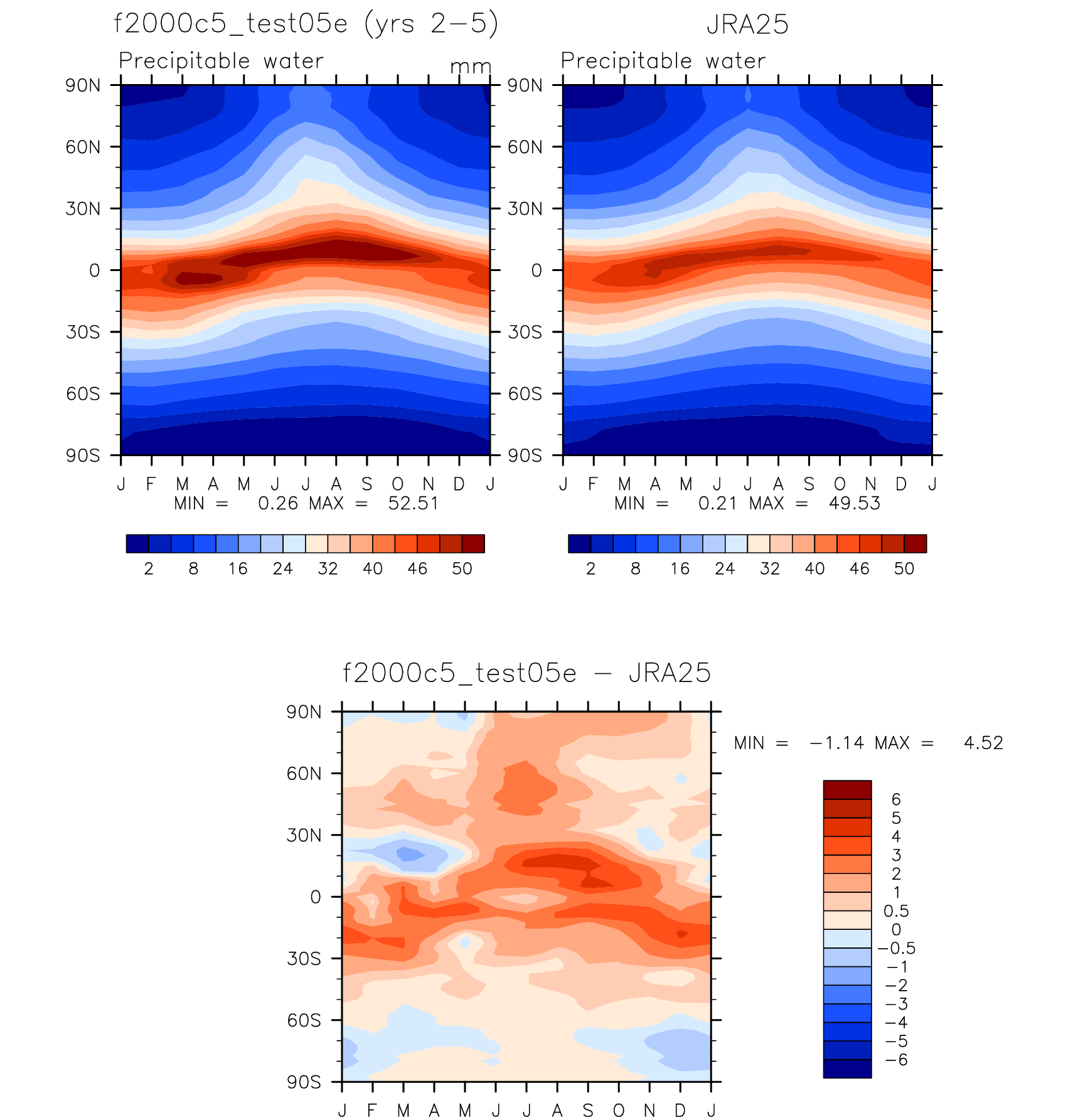 f2000c5_test05e DIAG Set 8 - Annual cycle contour plots of zonal means