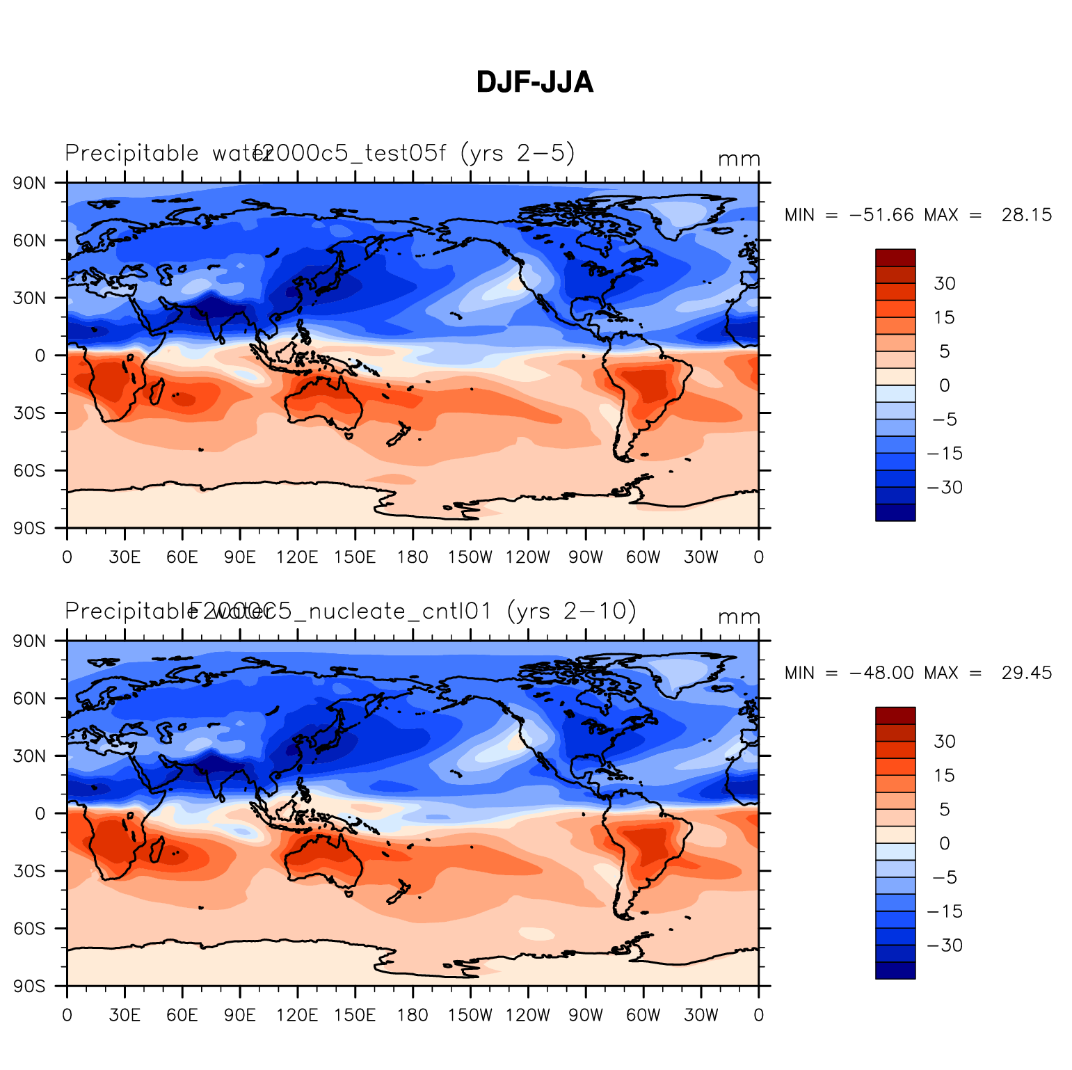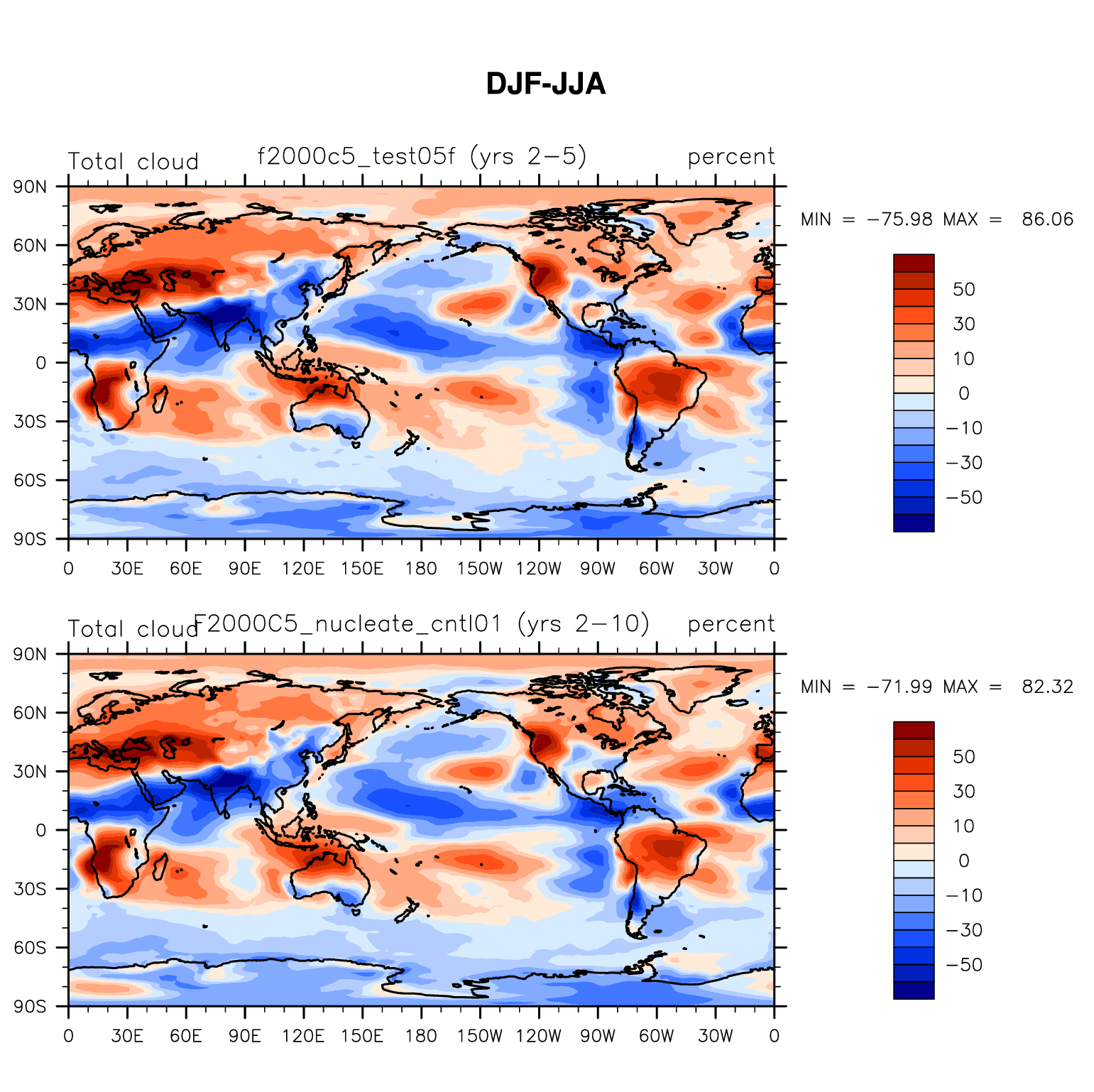 DIAG Set 9 - Horizontal contour plots of DJF-JJA differences
