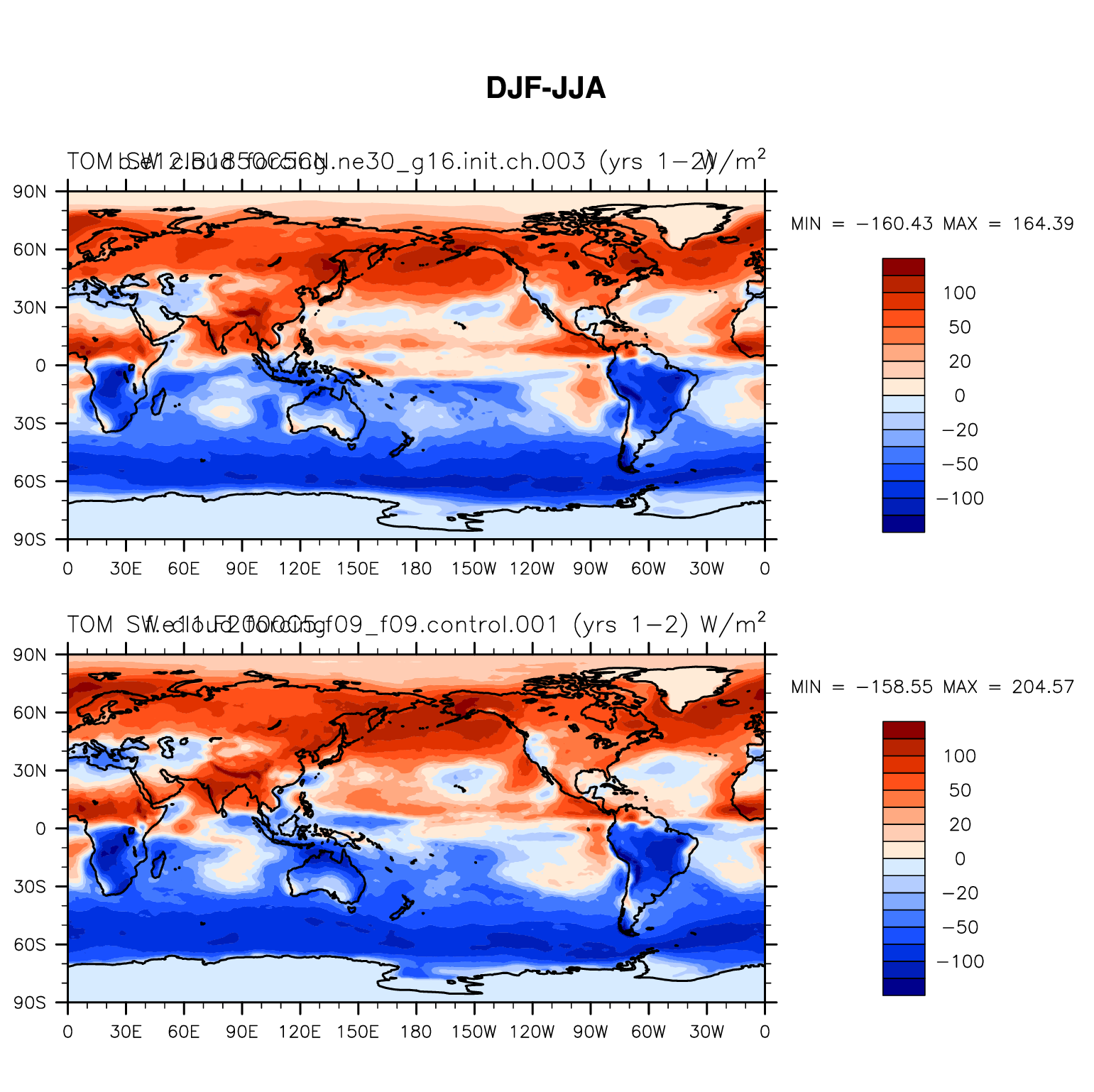 DIAG Set 9 - Horizontal contour plots of DJF-JJA differences