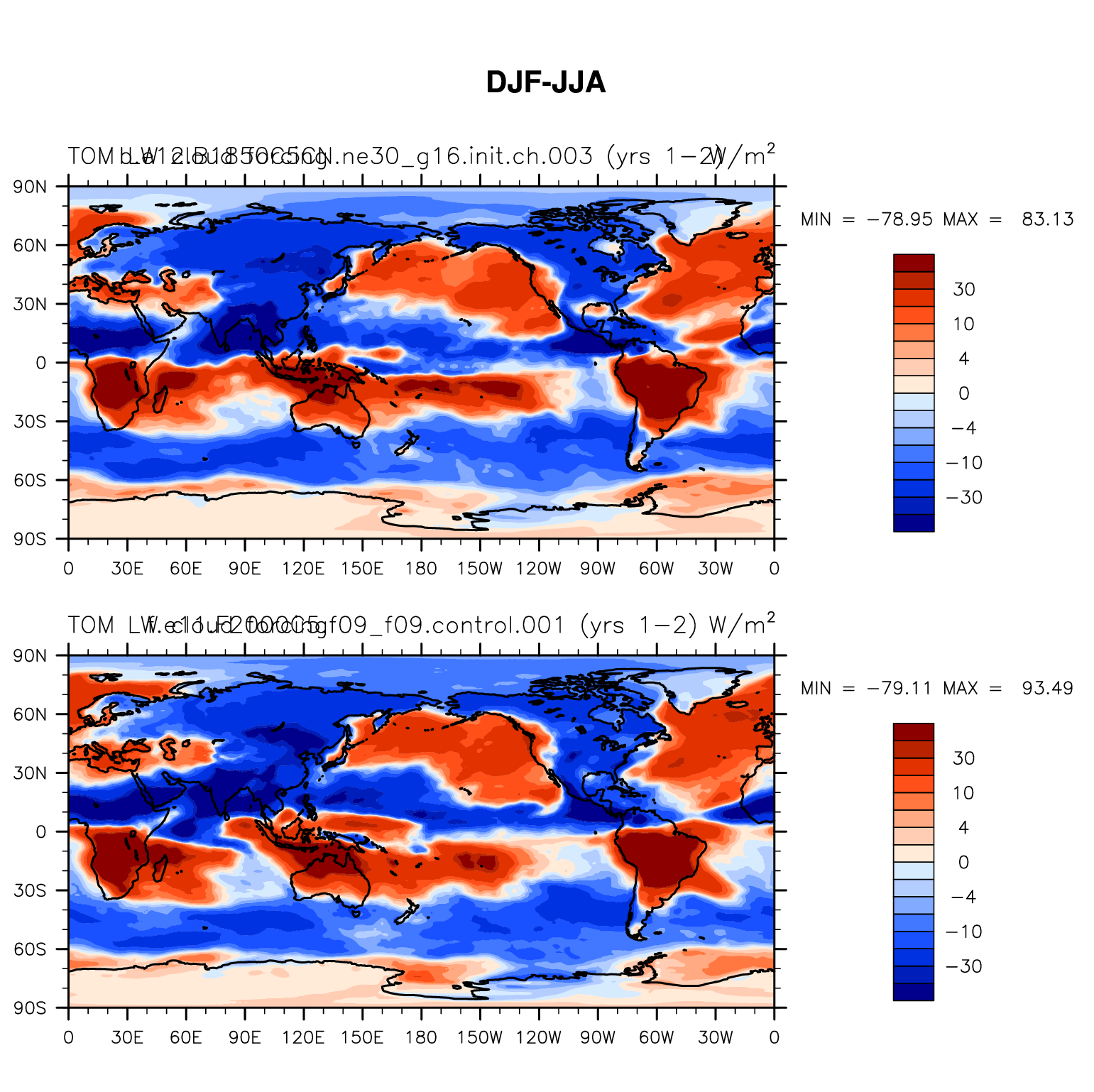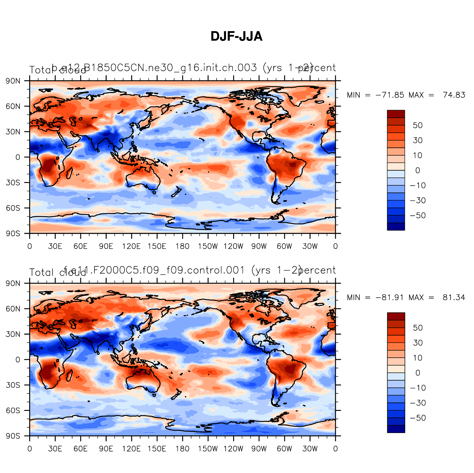 DIAG Set 9 - Horizontal contour plots of DJF-JJA differences