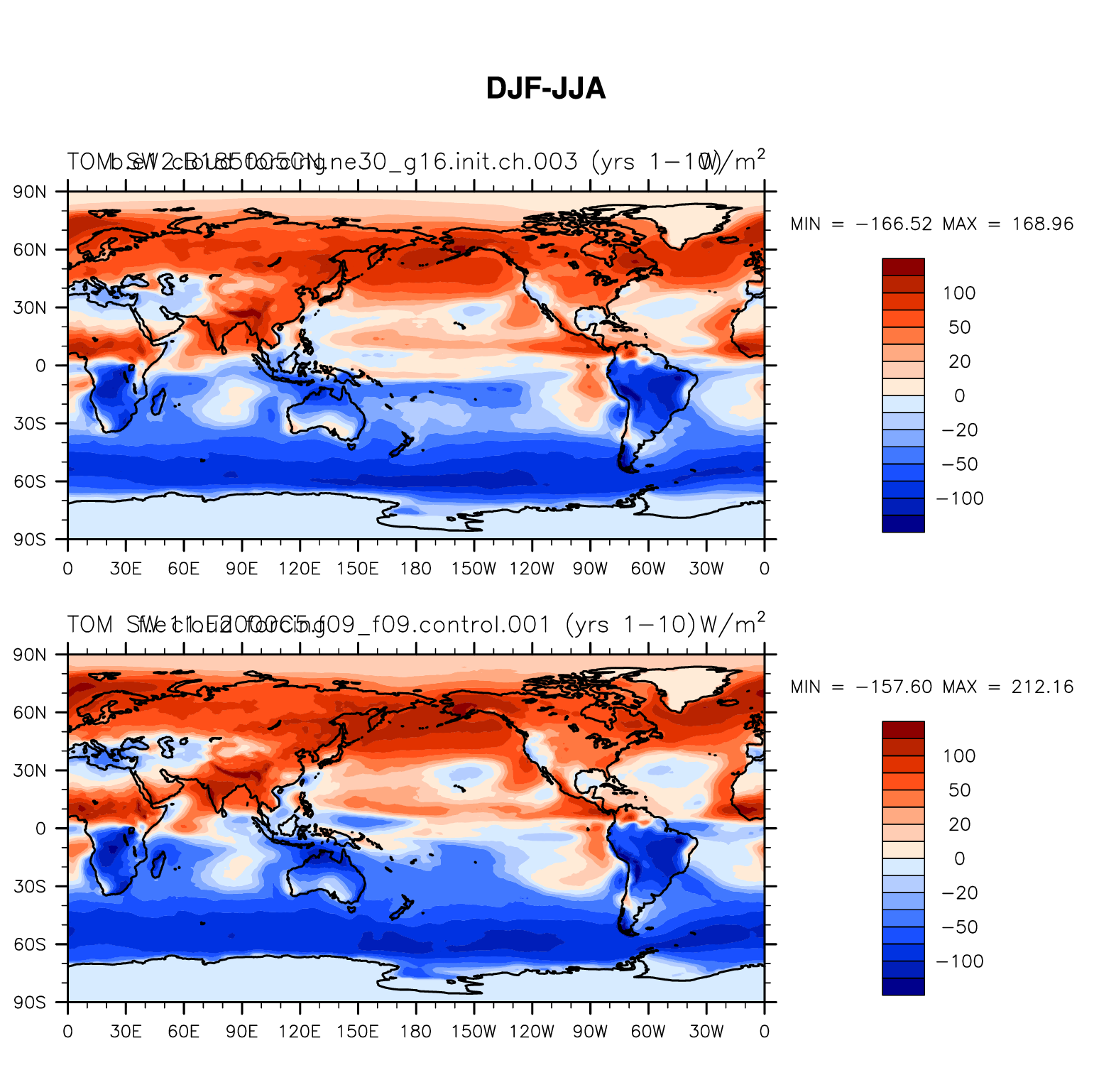 DIAG Set 9 - Horizontal contour plots of DJF-JJA differences