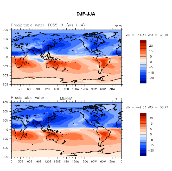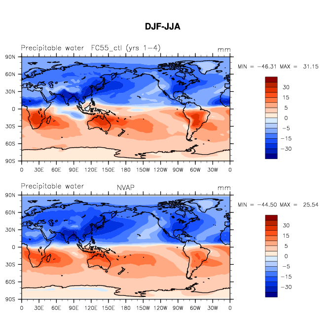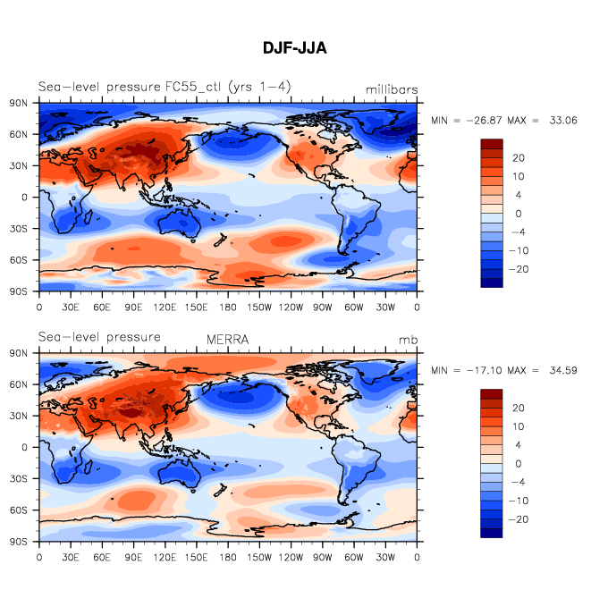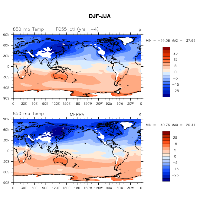 FC55_ctl DIAG Set 9 - Horizontal contour plots of DJF-JJA differences