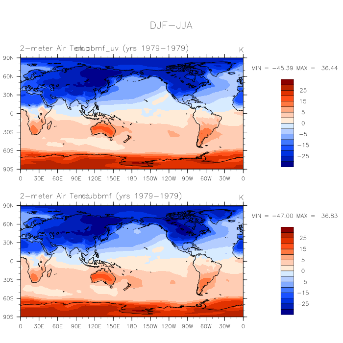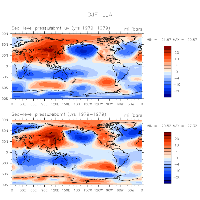 DIAG Set 9 - Horizontal contour plots of DJF-JJA differences