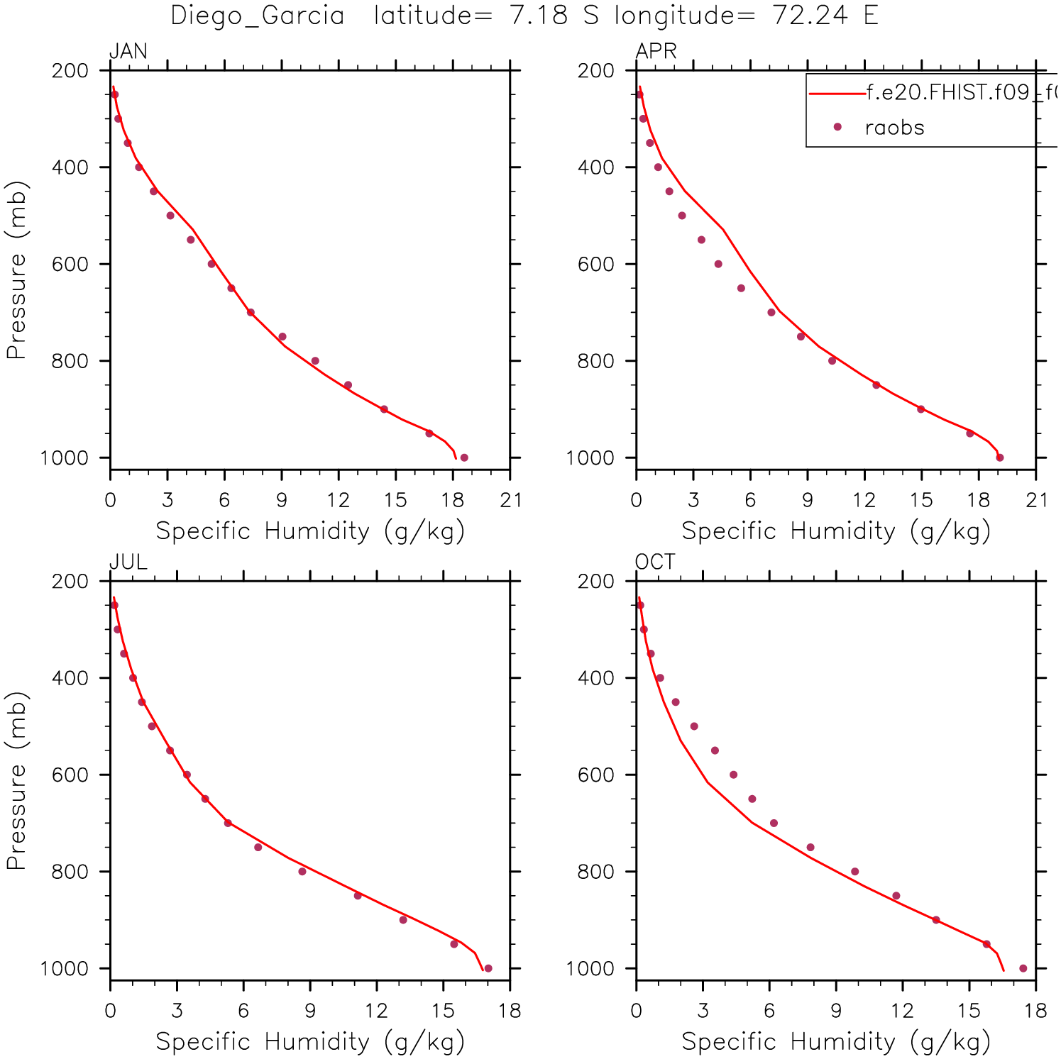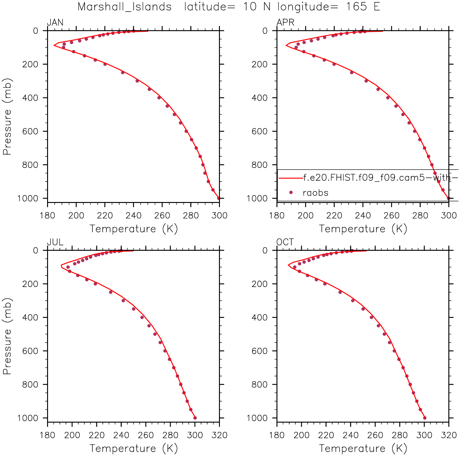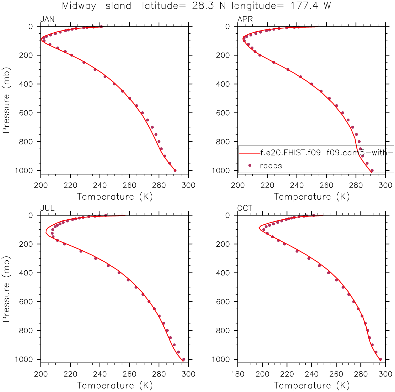 f.e20.FHIST.f09_f09.cam5-with-cam6_coupled-sst-amip.001 Set 12 - Vertical Profiles at 17 selected raobs stations