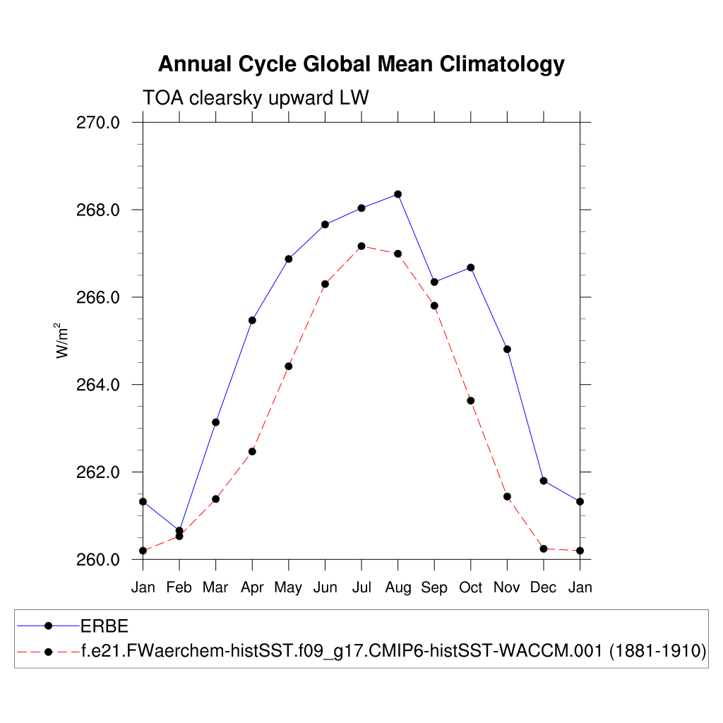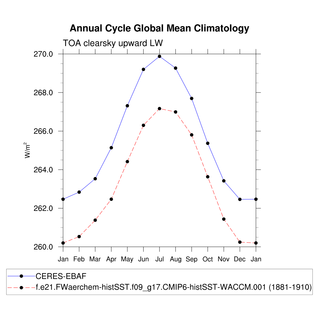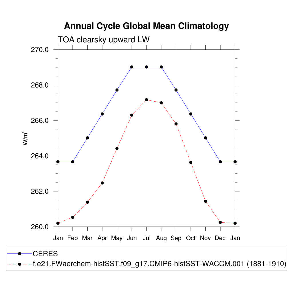 FLUTC TOA clearsky upward LW flux plot