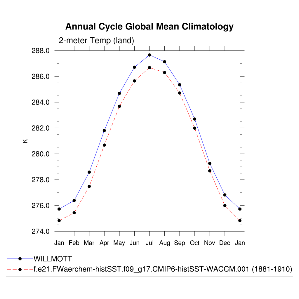 TREFHT 2-meter air temperature (land) plot