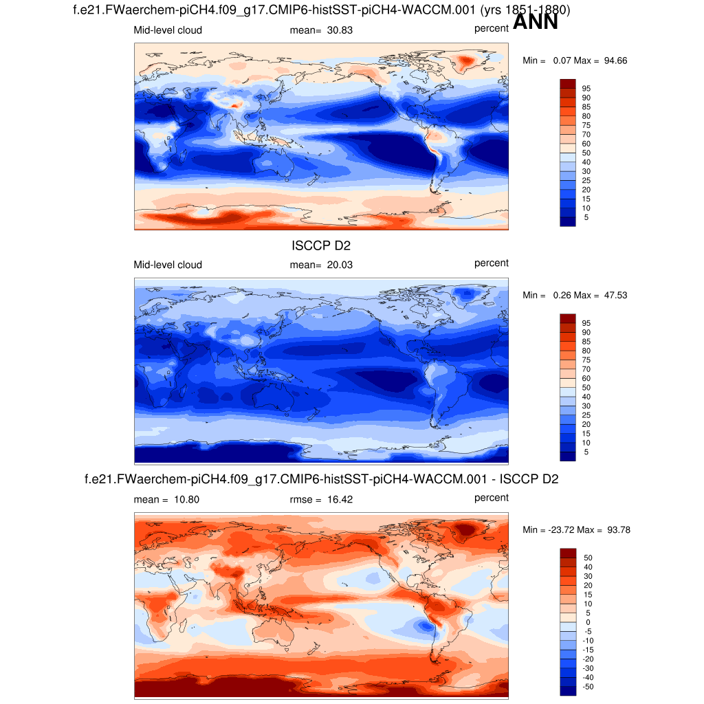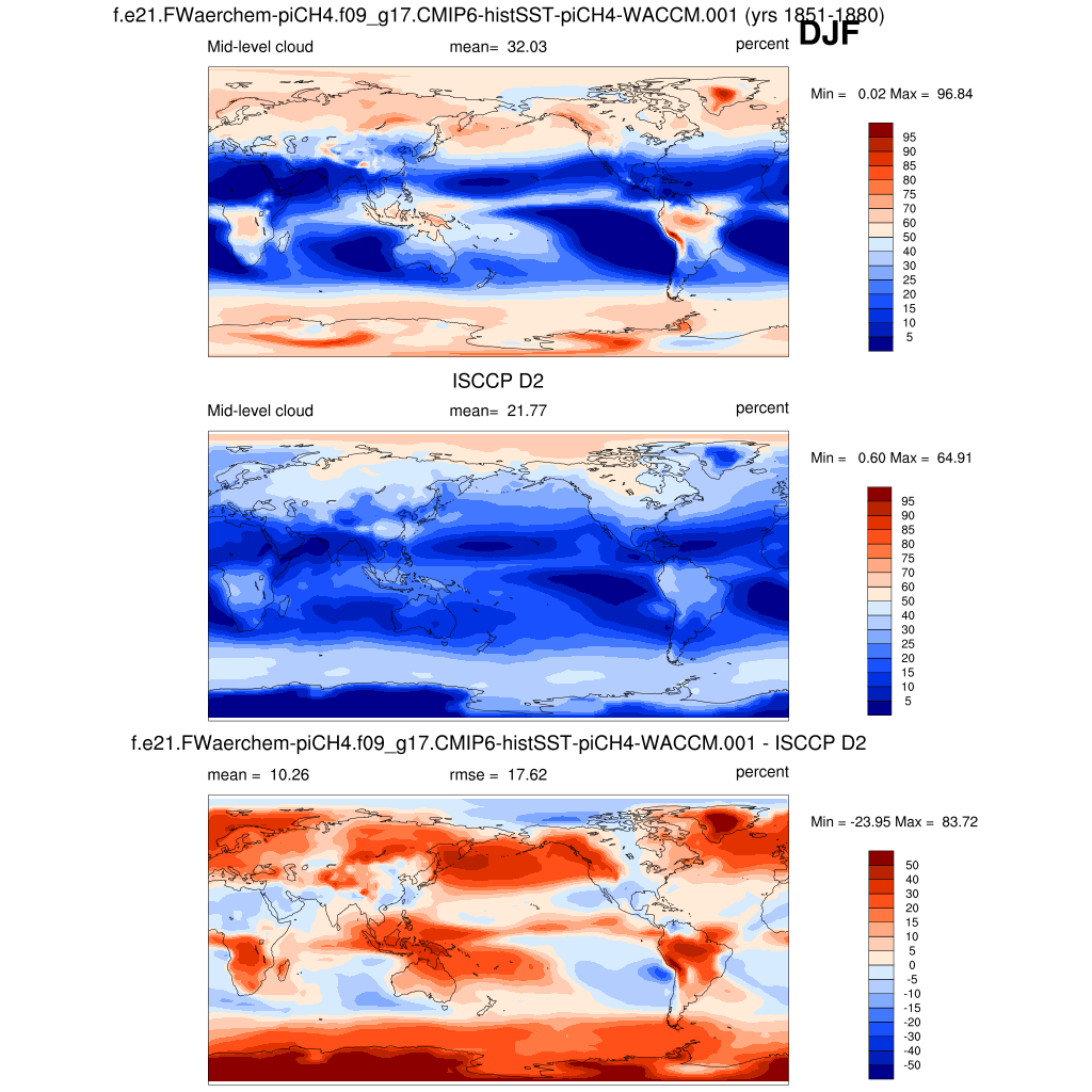 | CLDMED_ISCCPCOSP | Mid-topped cloud amount (tau > 0.3) | plot | plot | plot |