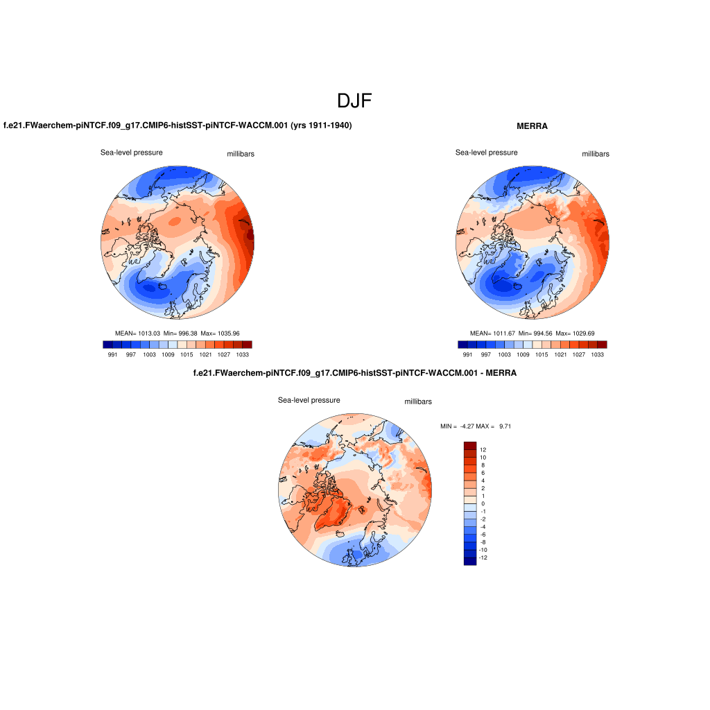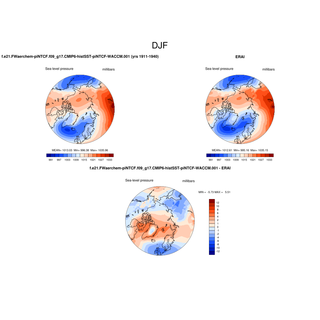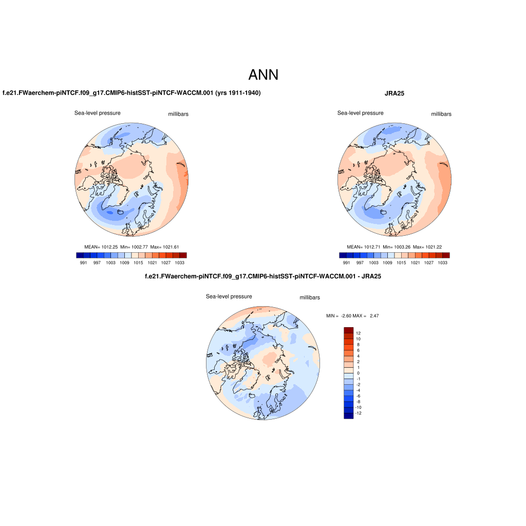 f.e21.FWaerchem-piNTCF.f09_g17.CMIP6-histSST-piNTCF-WACCM.001DIAG Set 7 - Polar contour/vector plots of DJF, JJA and ANN means