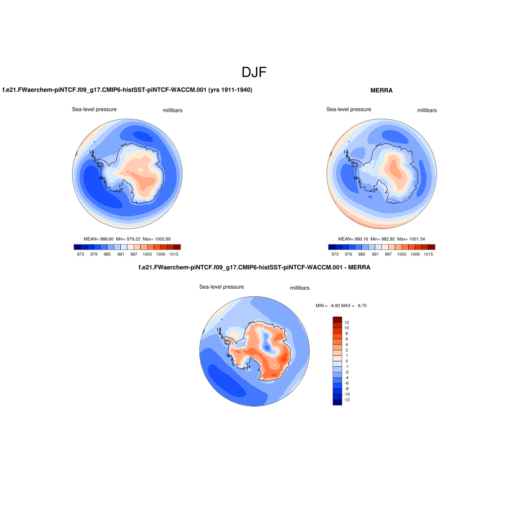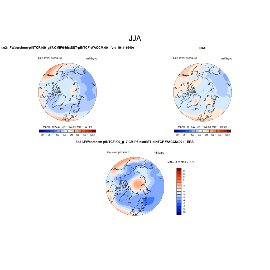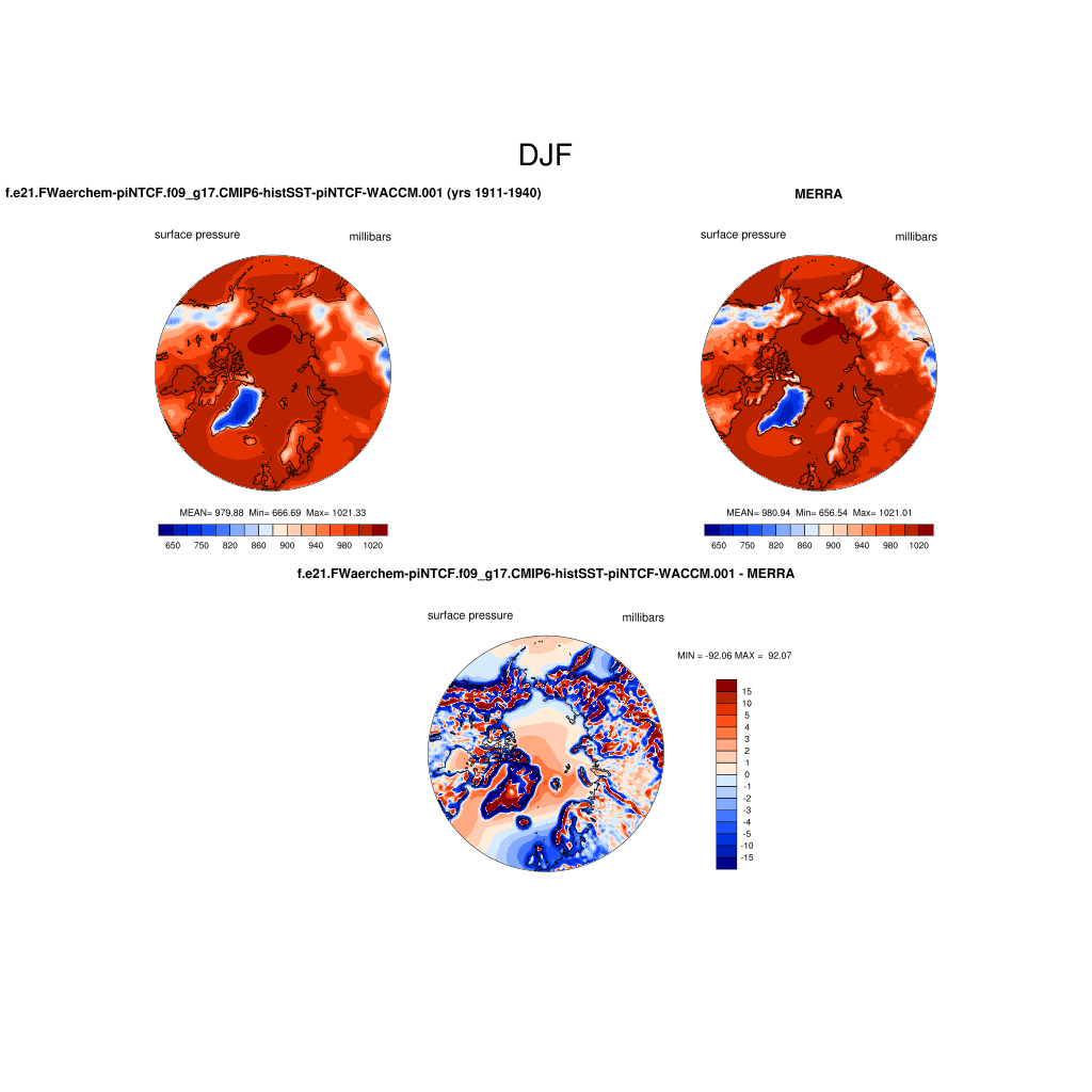 f.e21.FWaerchem-piNTCF.f09_g17.CMIP6-histSST-piNTCF-WACCM.001DIAG Set 7 - Polar contour/vector plots of DJF, JJA and ANN means