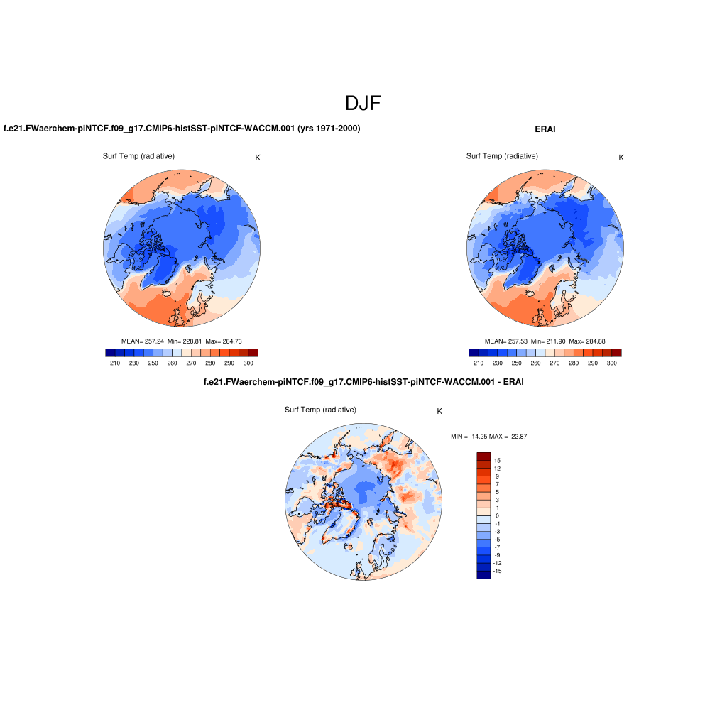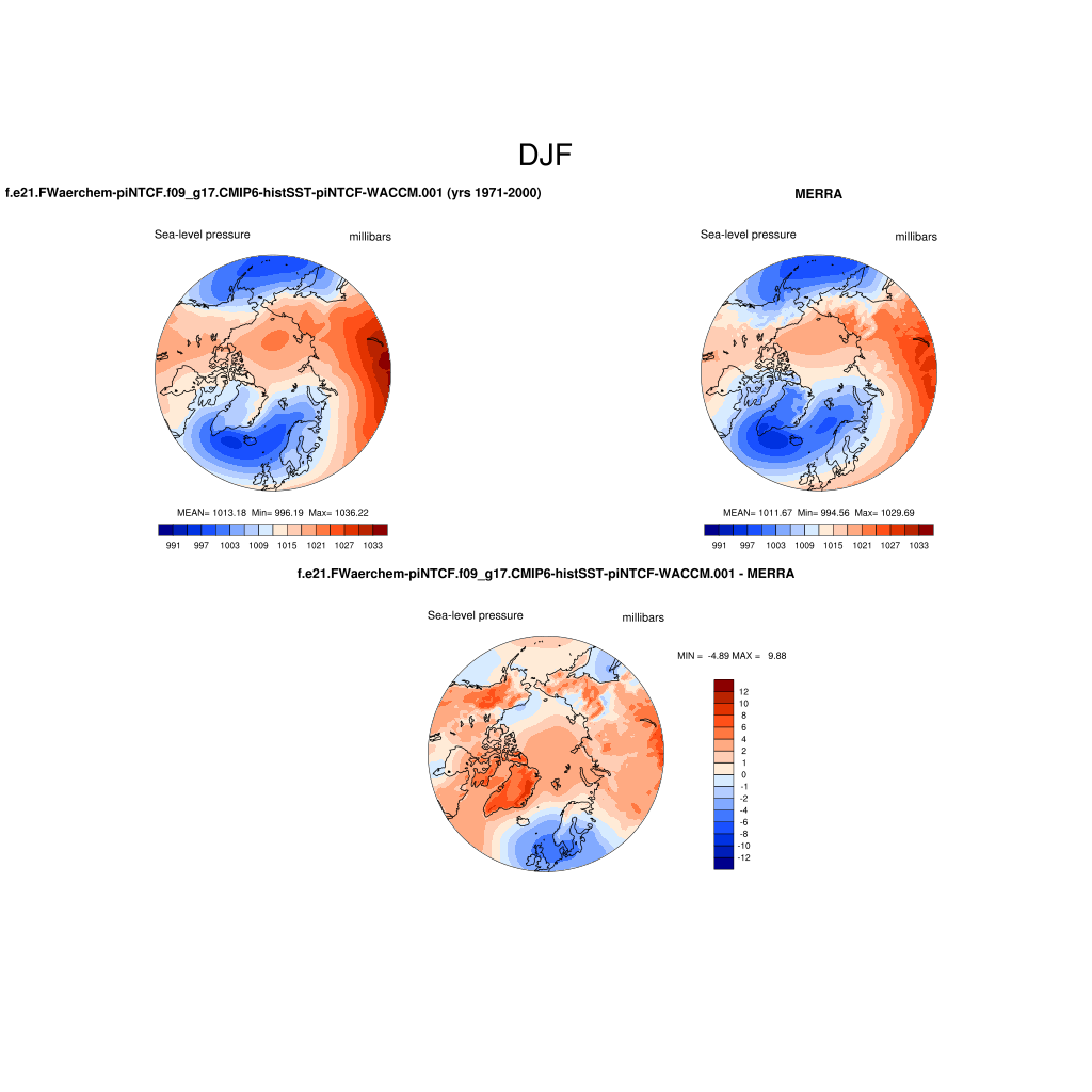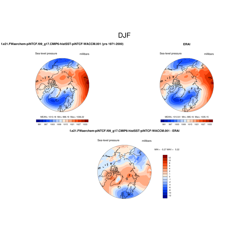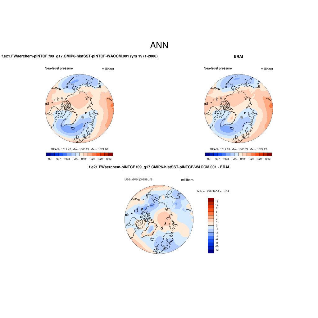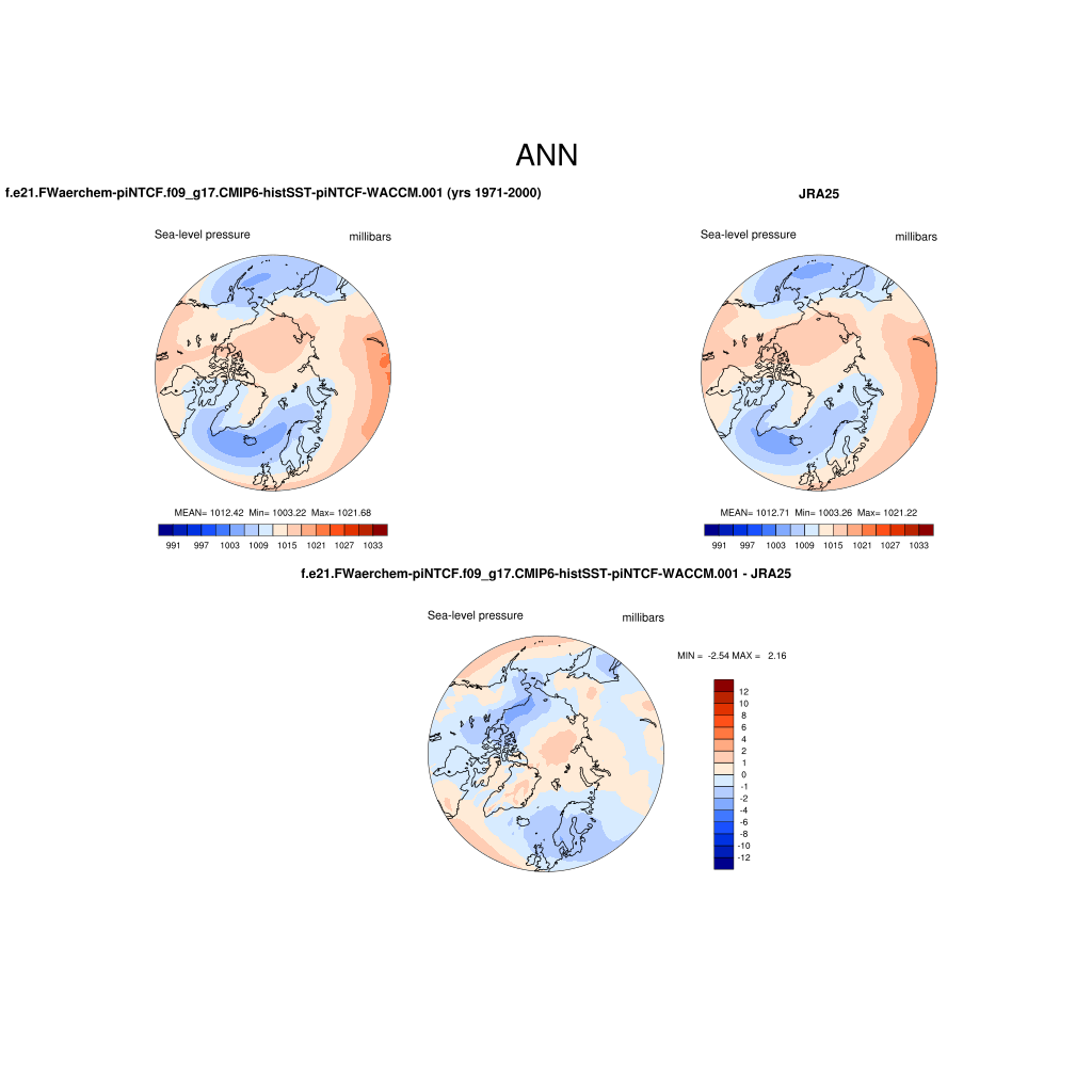 f.e21.FWaerchem-piNTCF.f09_g17.CMIP6-histSST-piNTCF-WACCM.001DIAG Set 7 - Polar contour/vector plots of DJF, JJA and ANN means