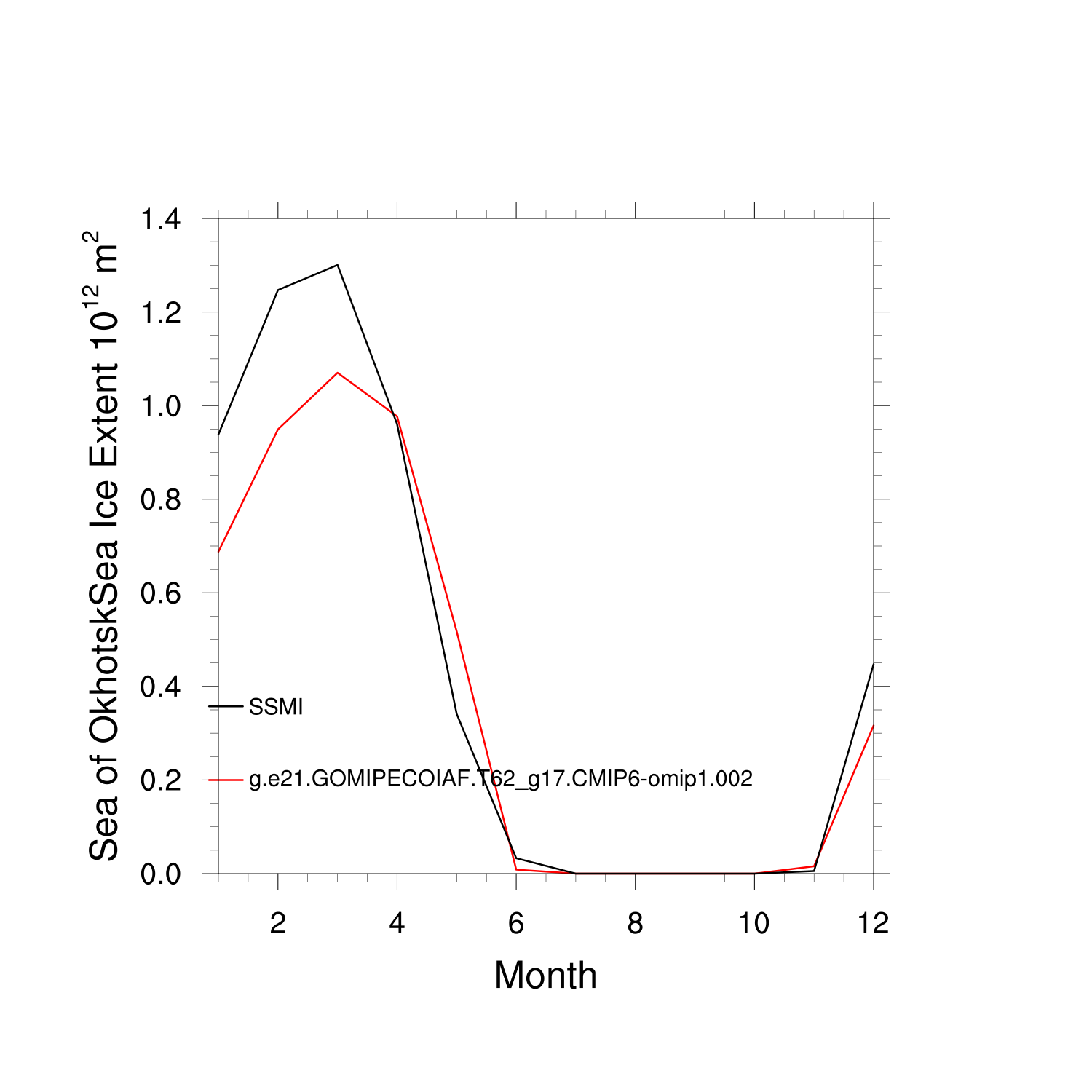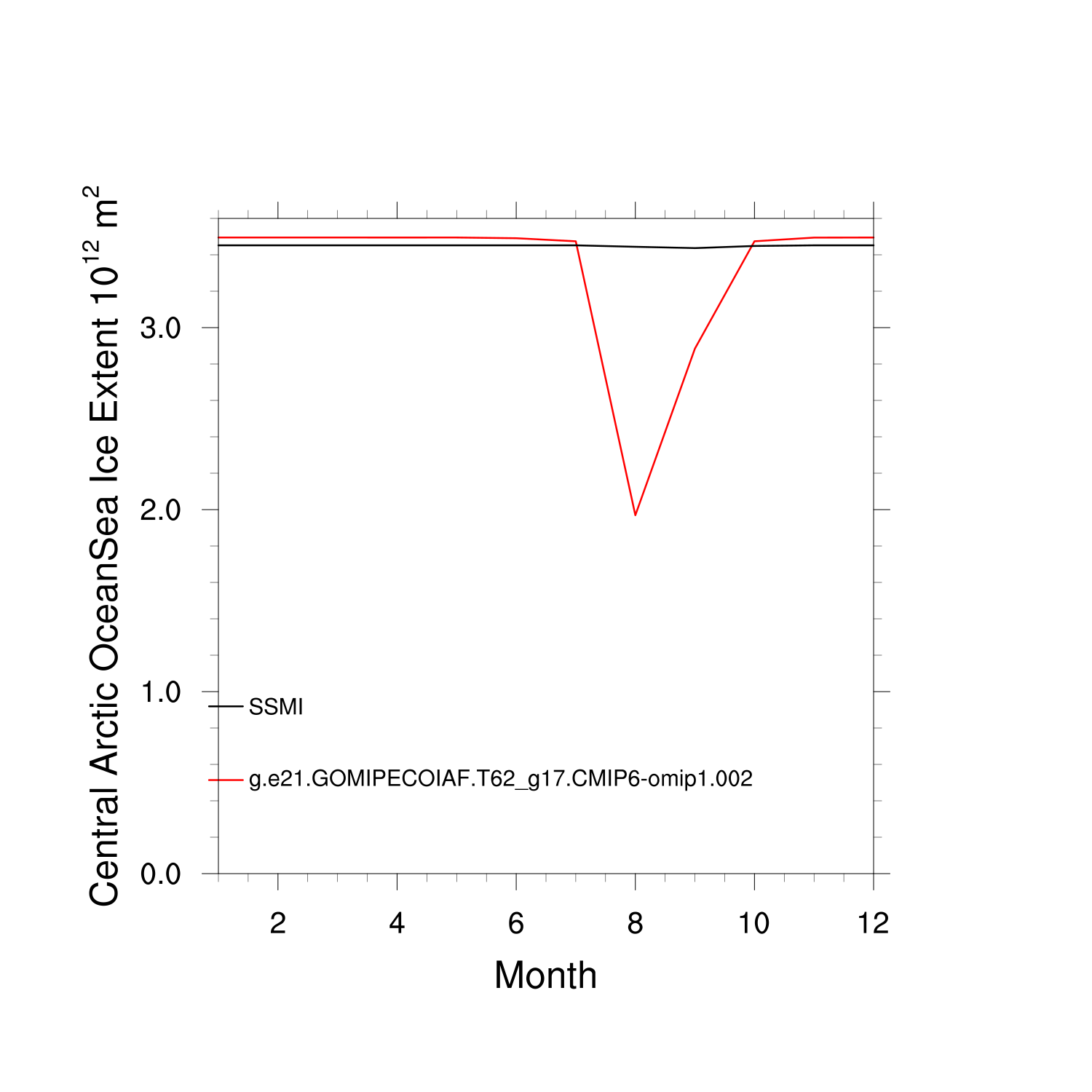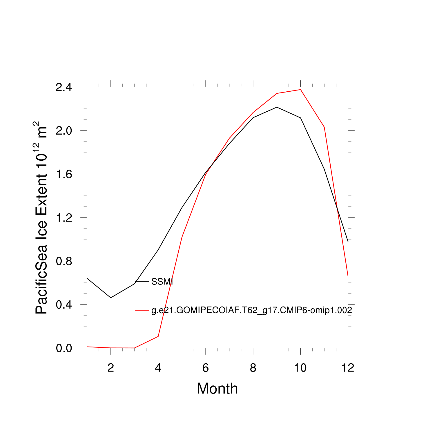 Climatological Monthly Mean Extent vs Obs plot