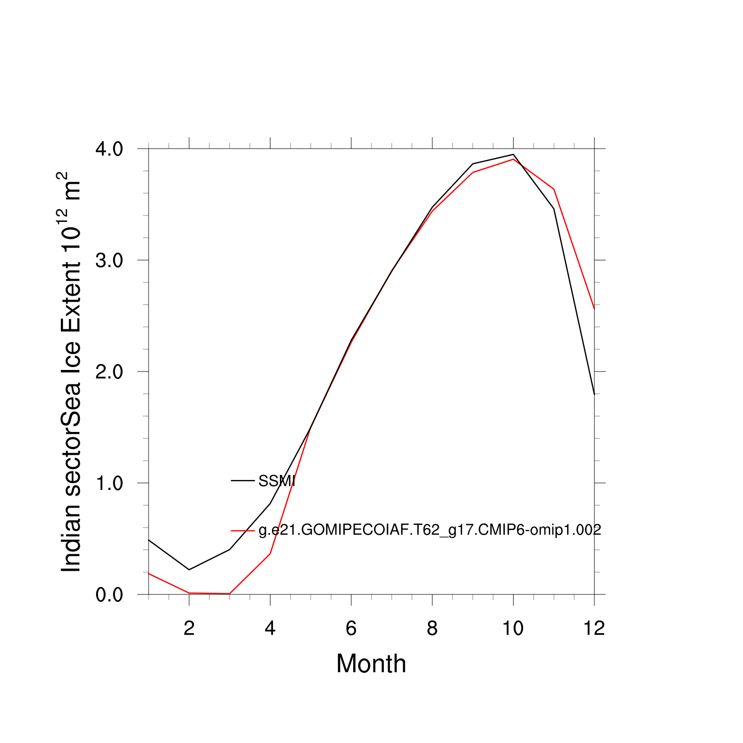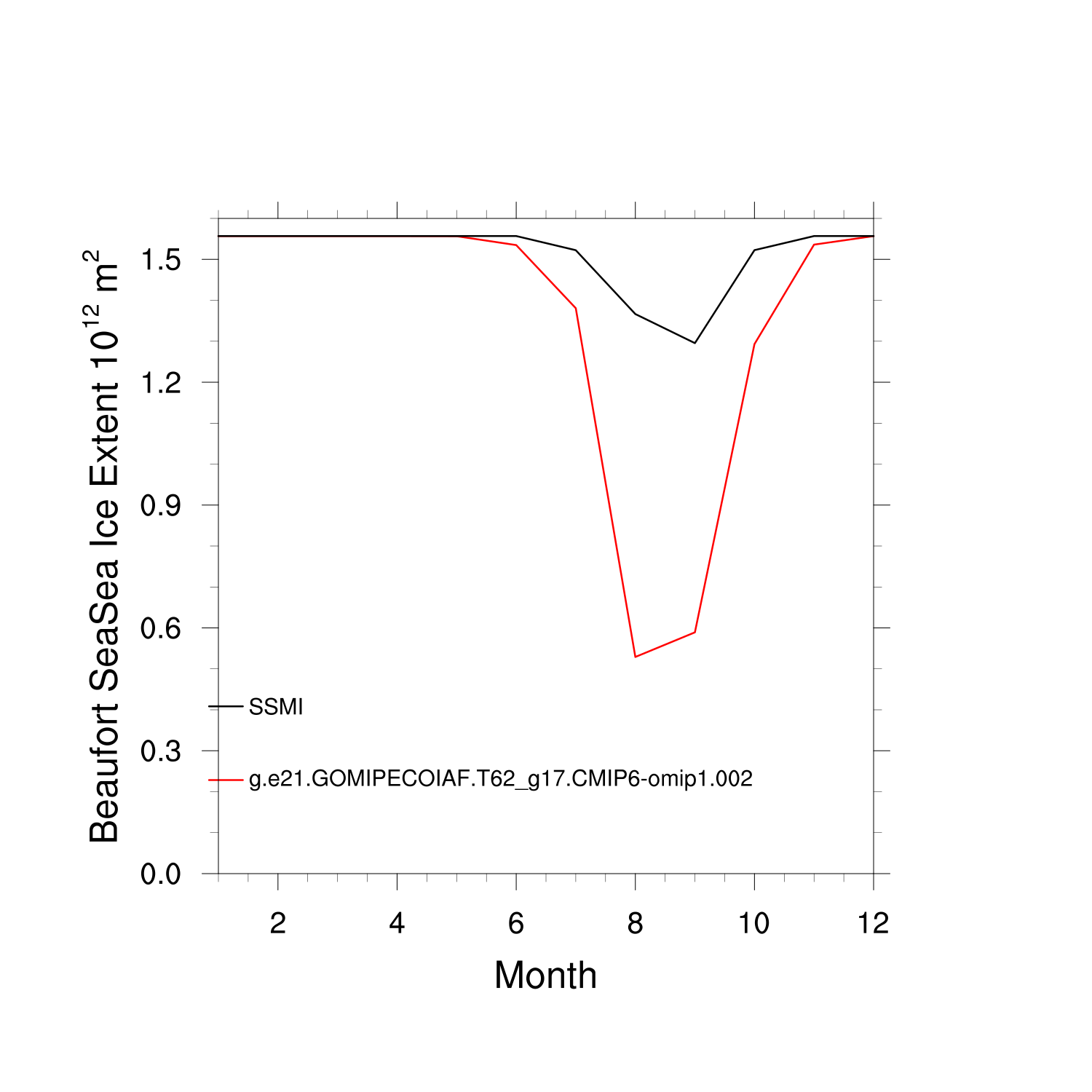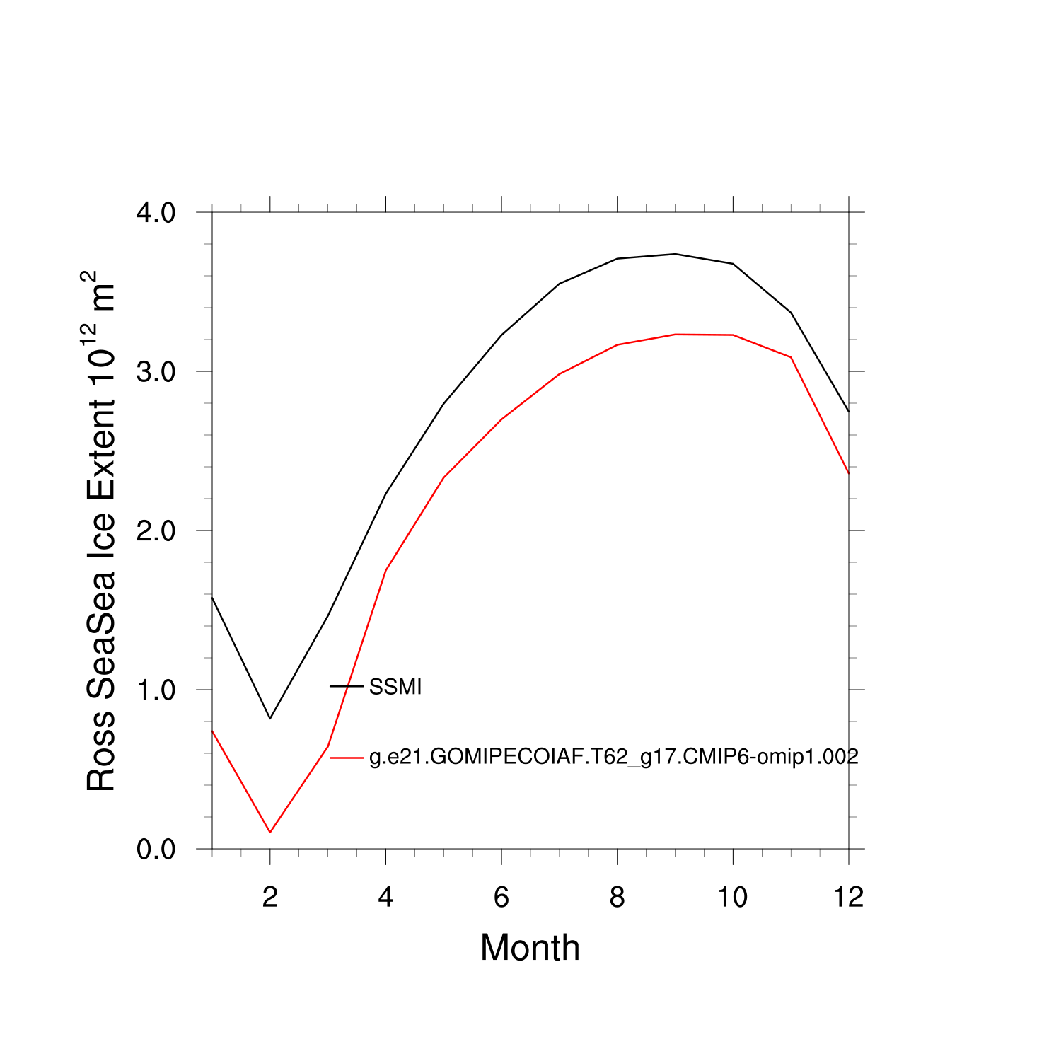 Climatological Monthly Mean Extent vs Obs plot