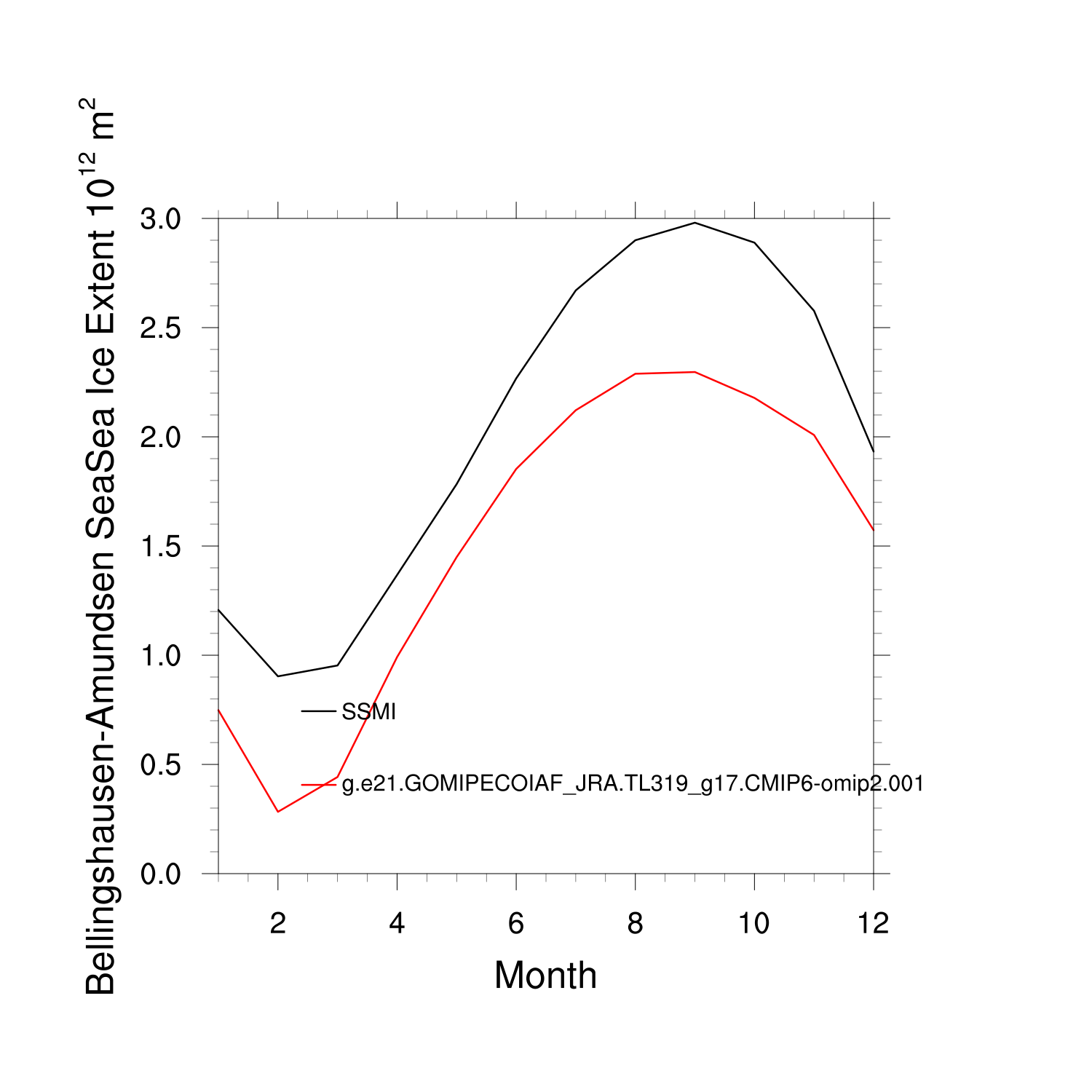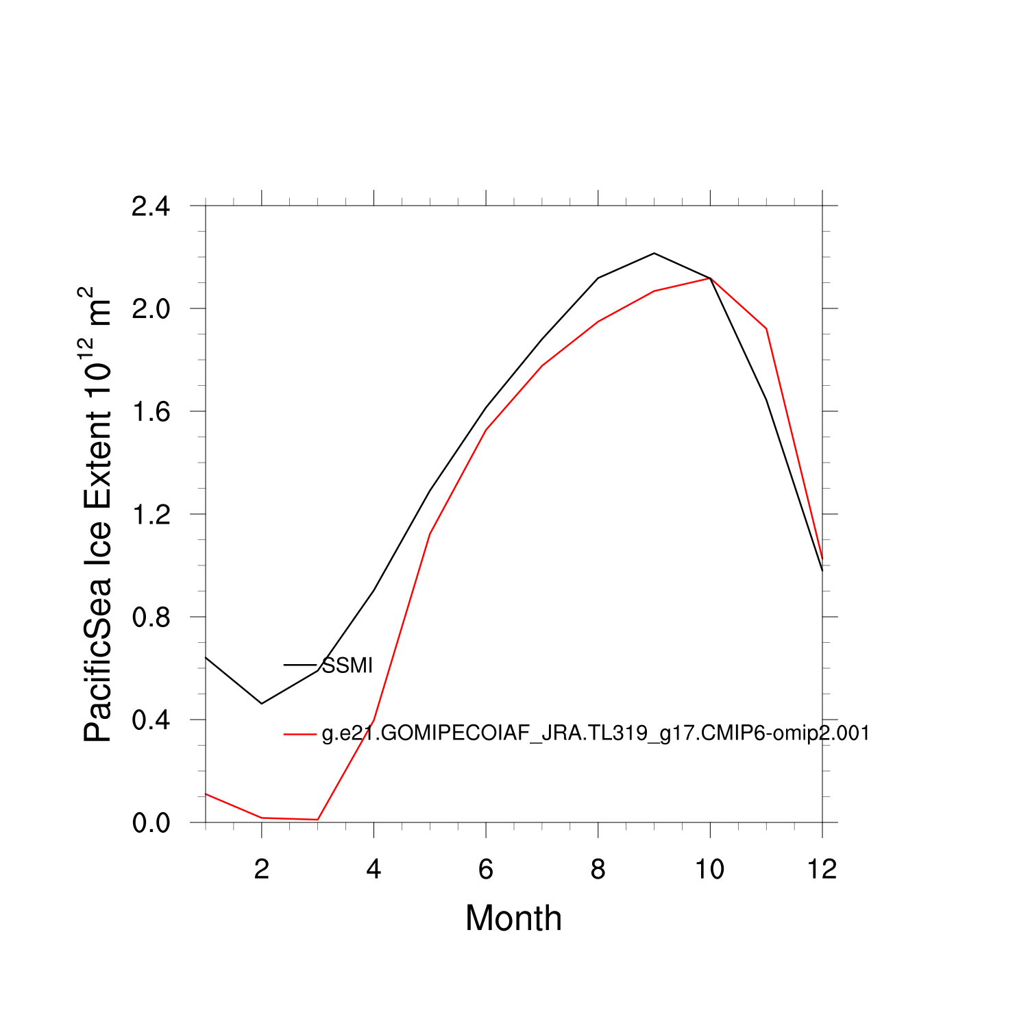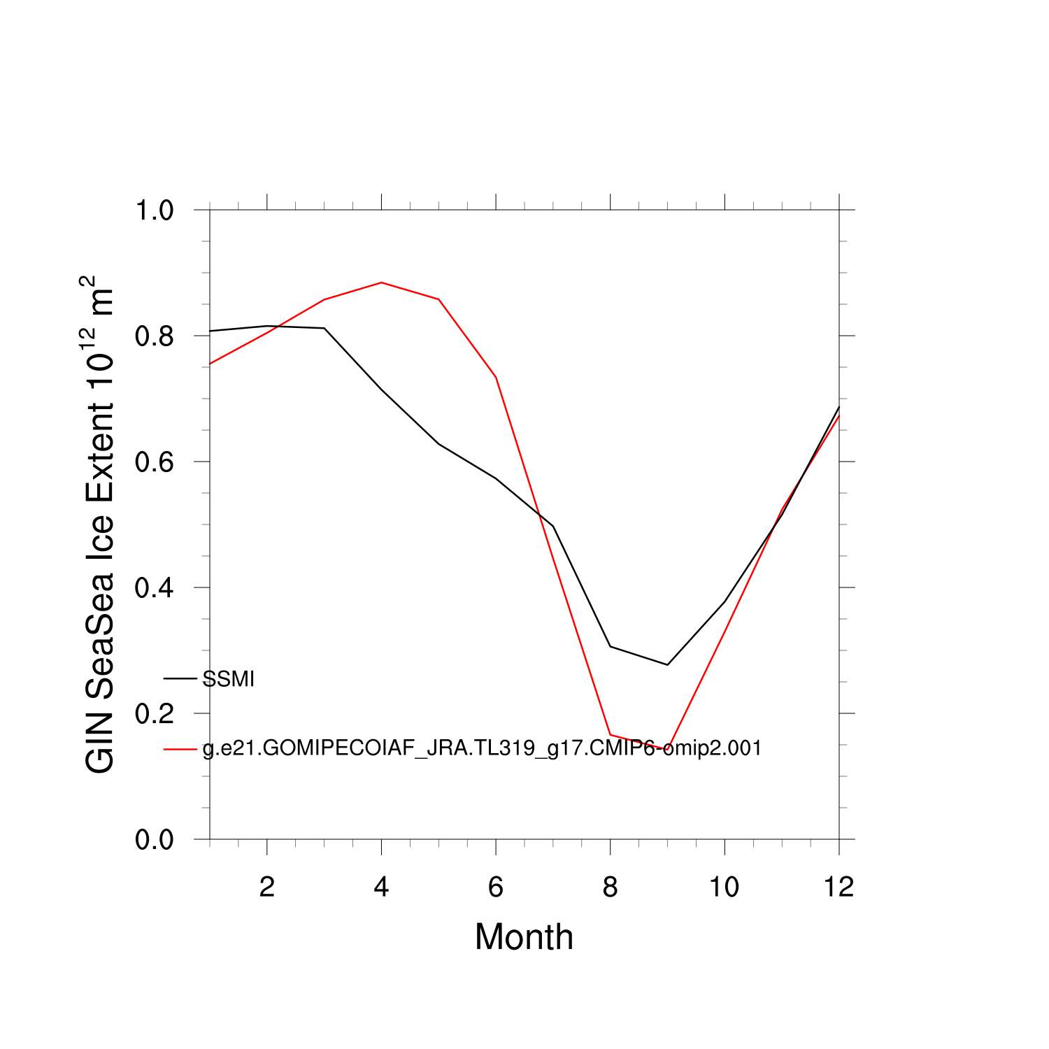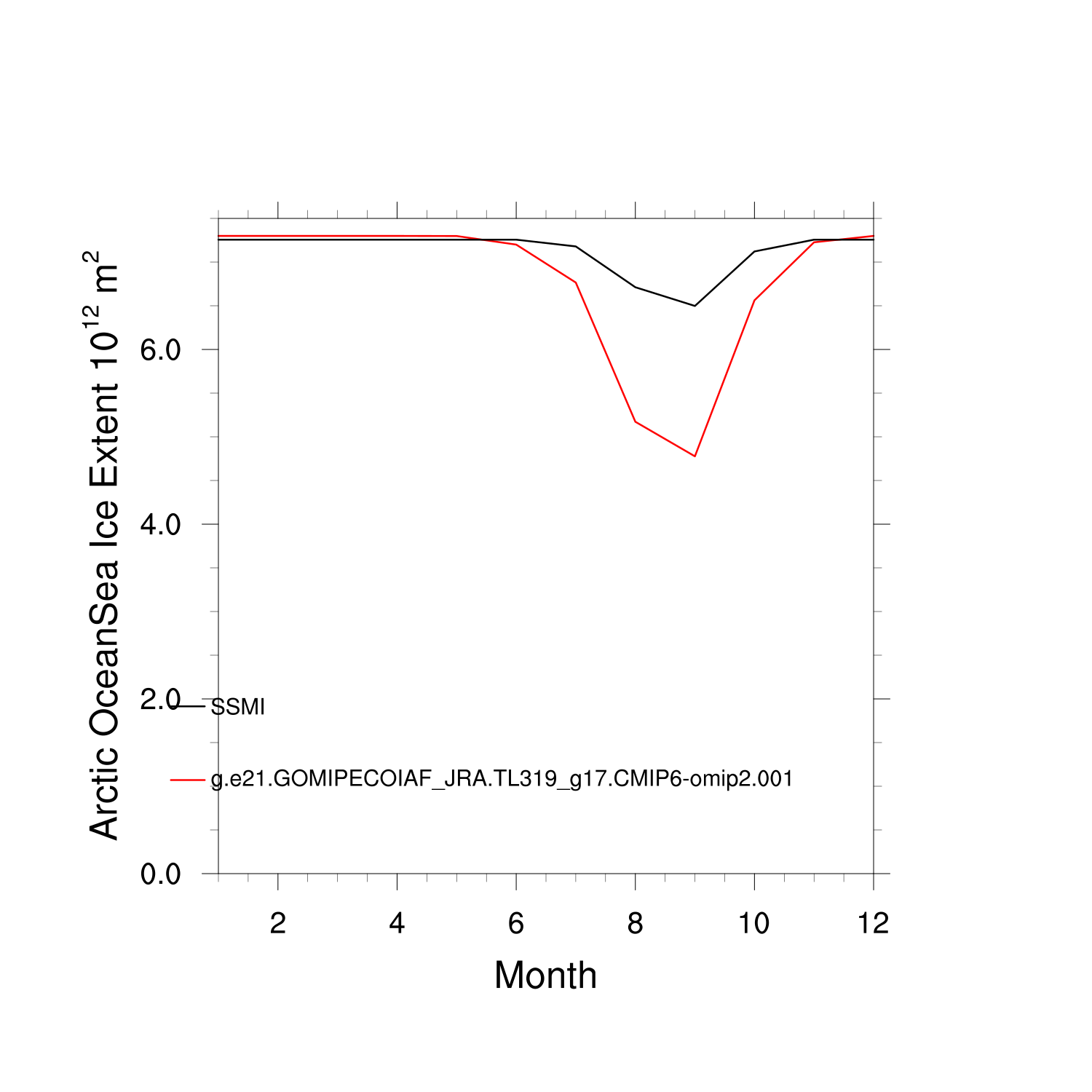 Climatological Monthly Mean Extent vs Obs plot
