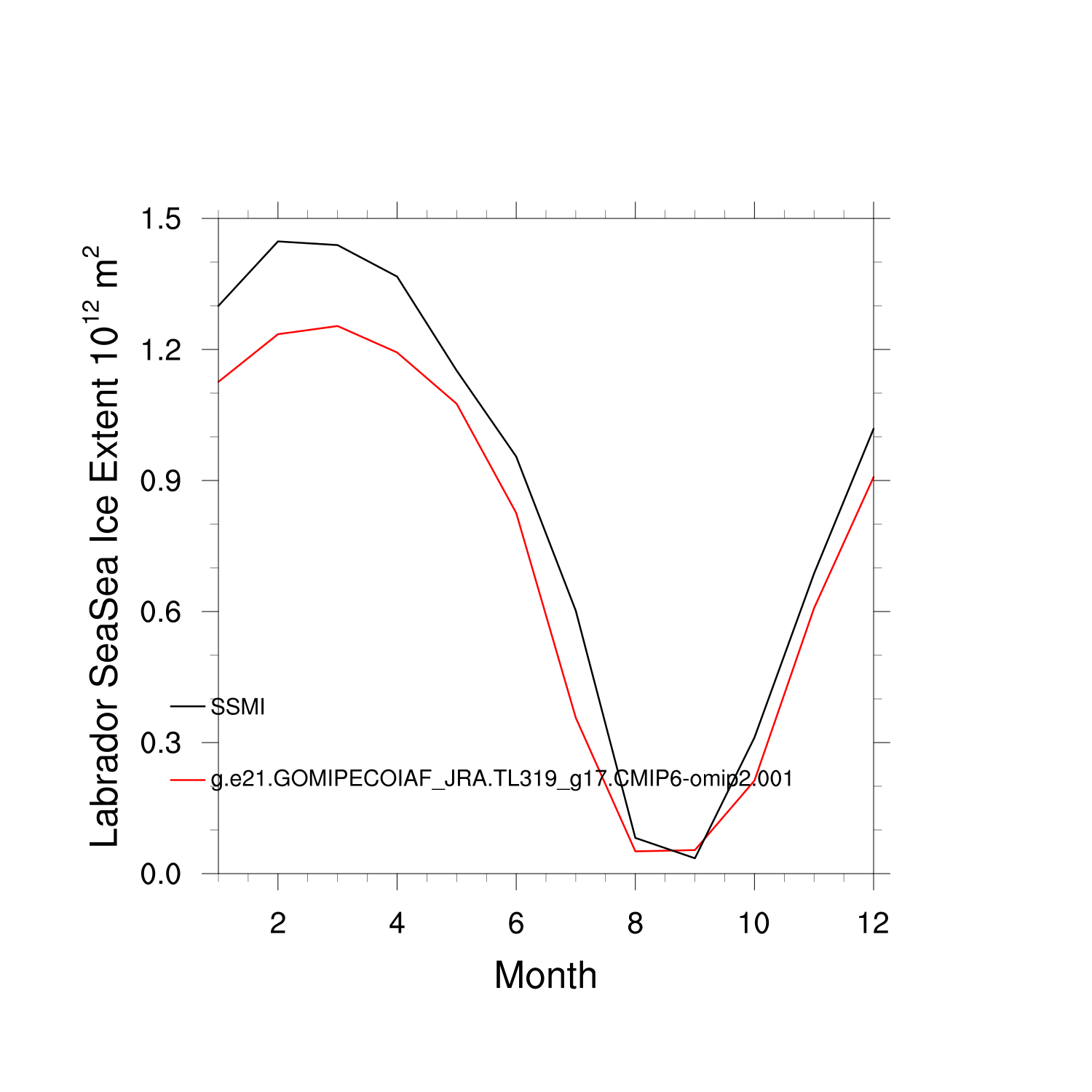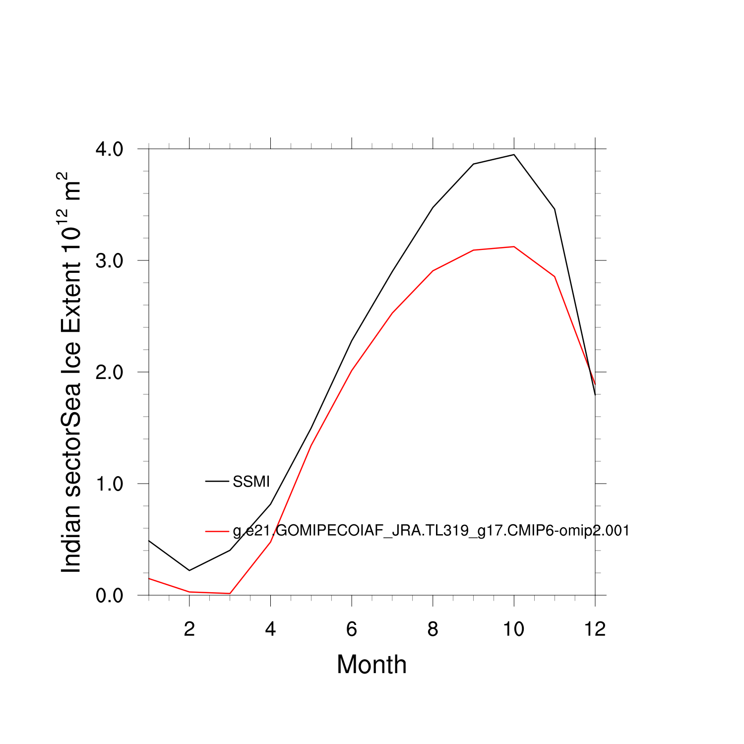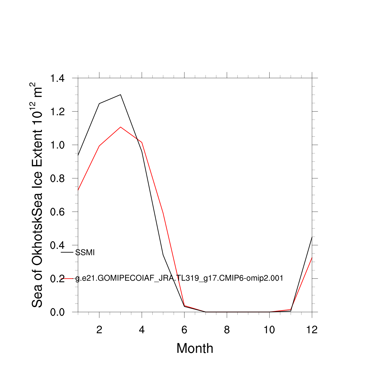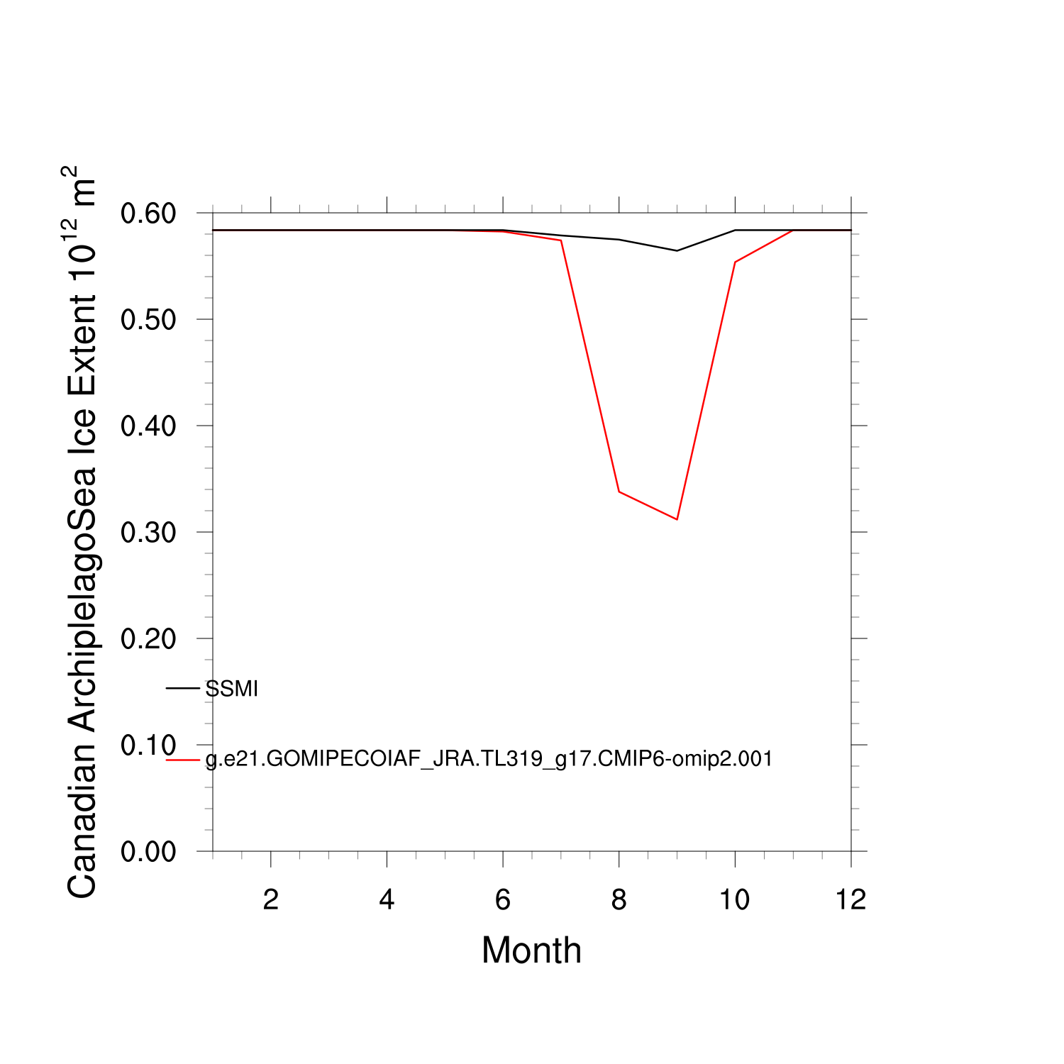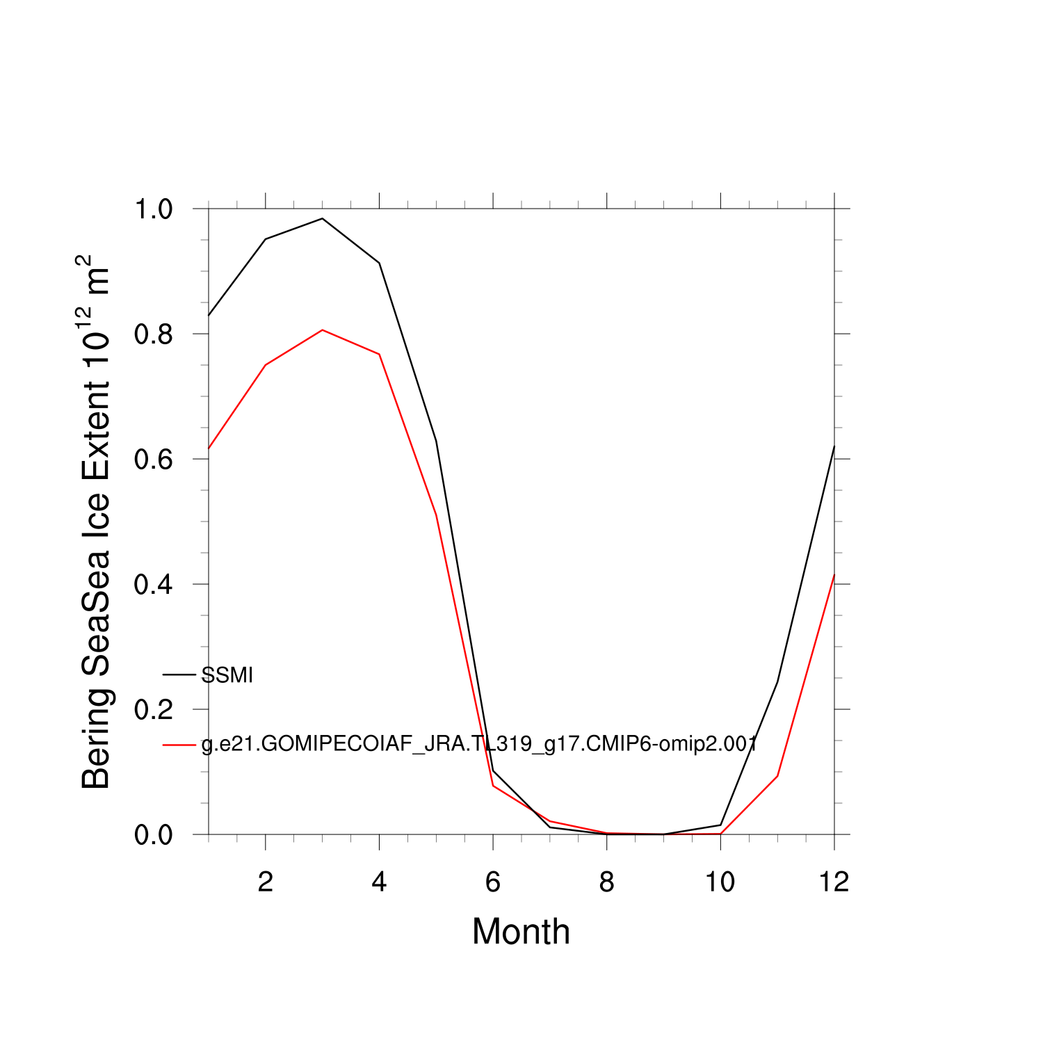 Climatological Monthly Mean Extent vs Obs plot
