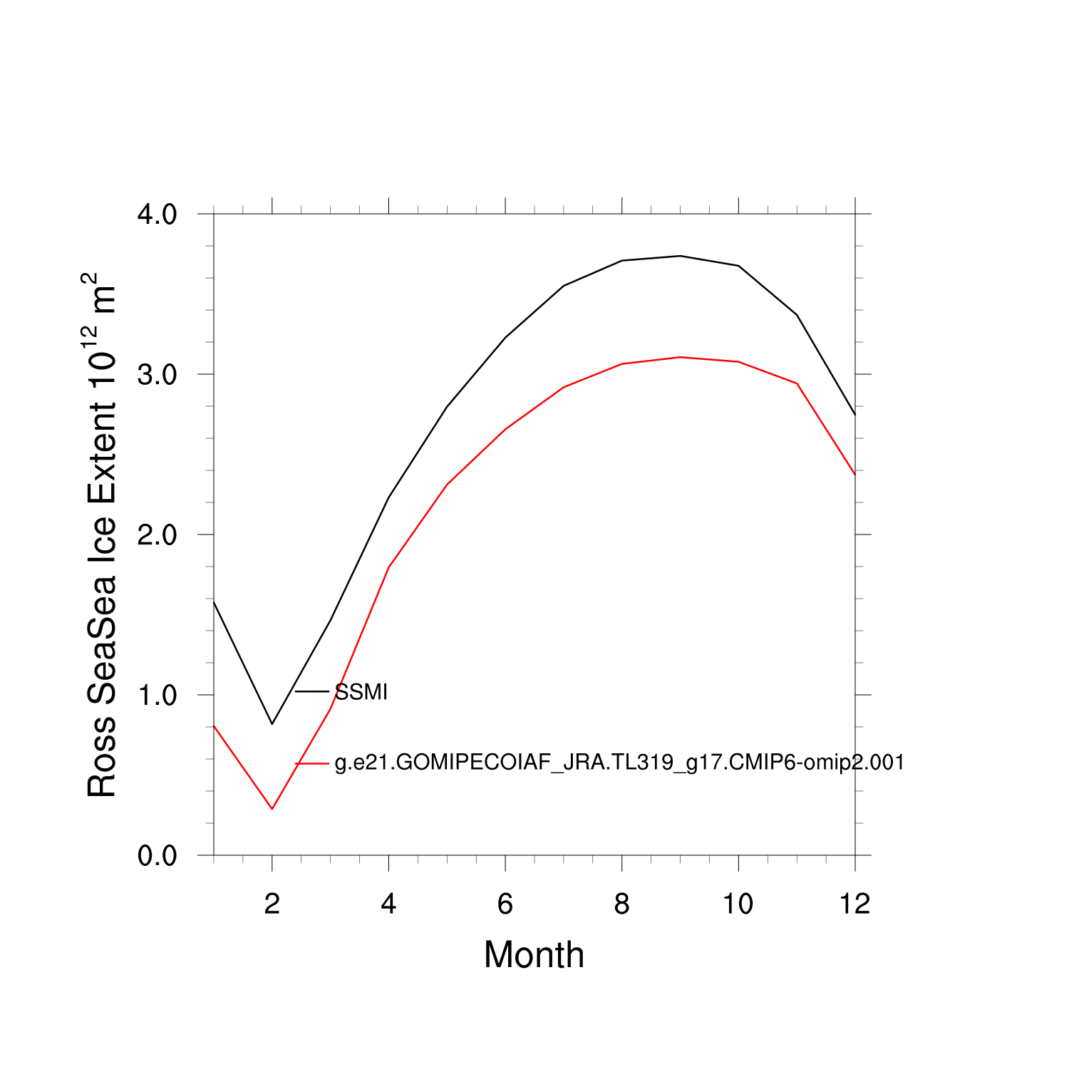 Climatological Monthly Mean Extent vs Obs plot Climatological Monthly Mean Extent vs Obs plot