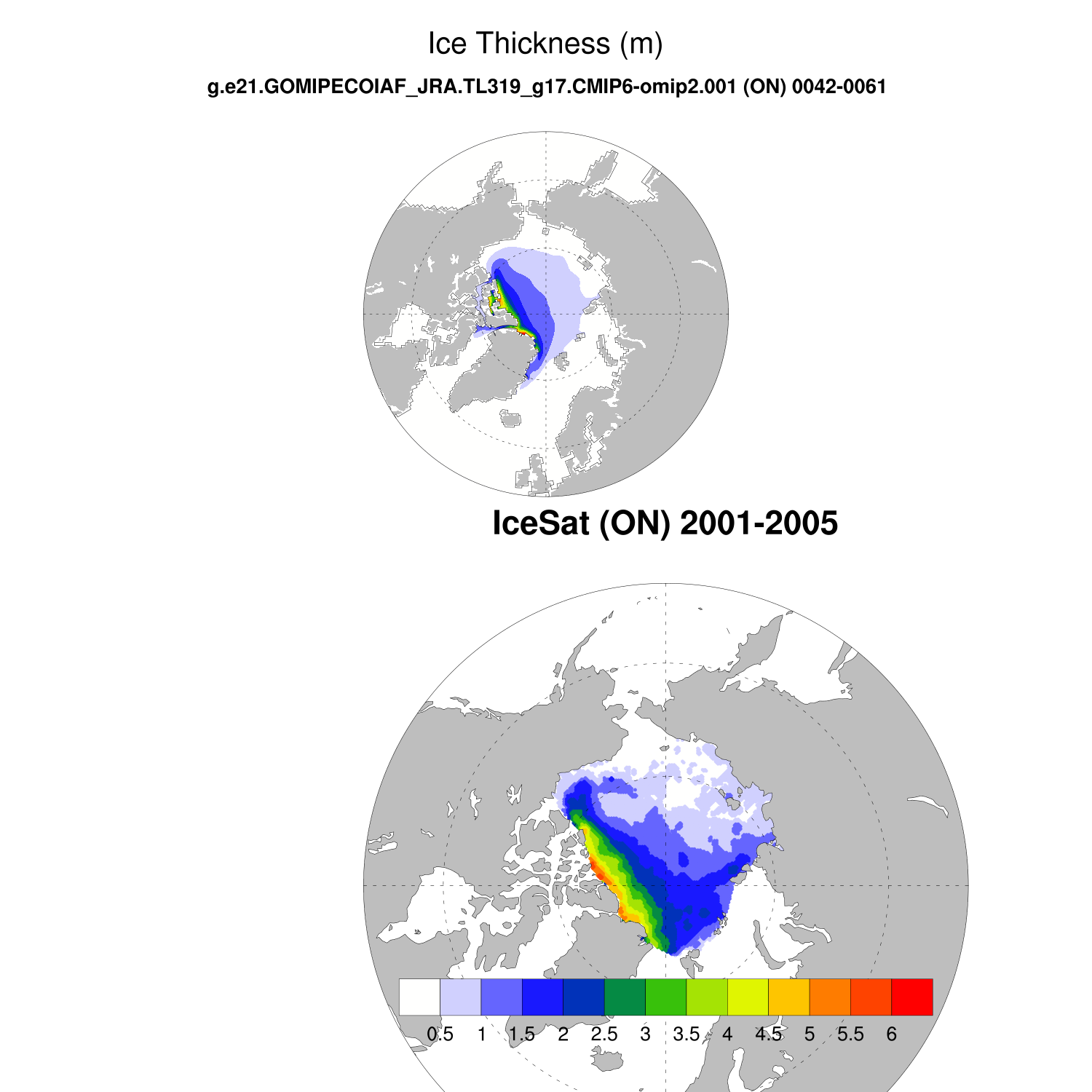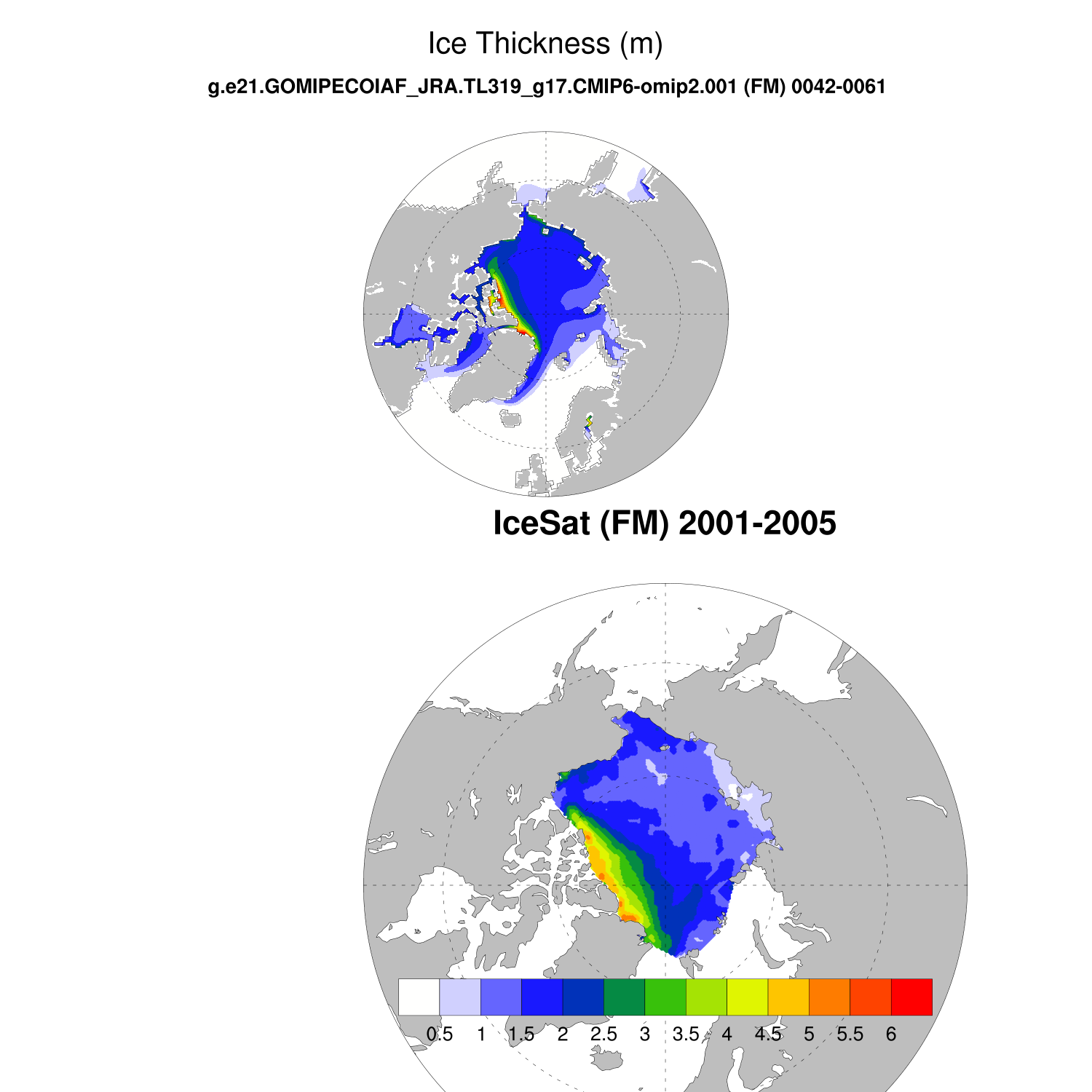 Ice Thickness vs IceSat (NH) Contour FM ON ICESat (NH) info