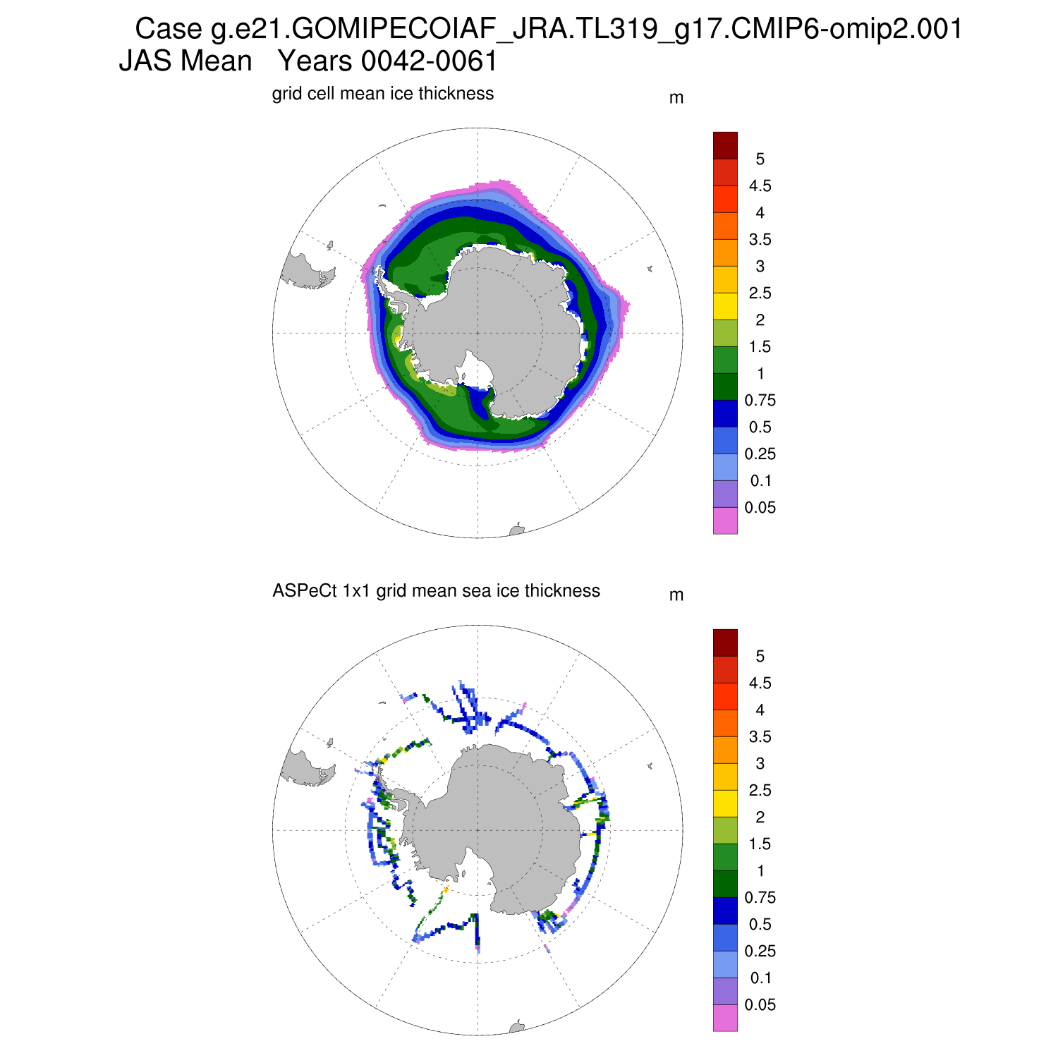 Ice Thickness vs ASPeCt (SH) Contour JFM AMJ JAS OND ASPeCt (SH) info