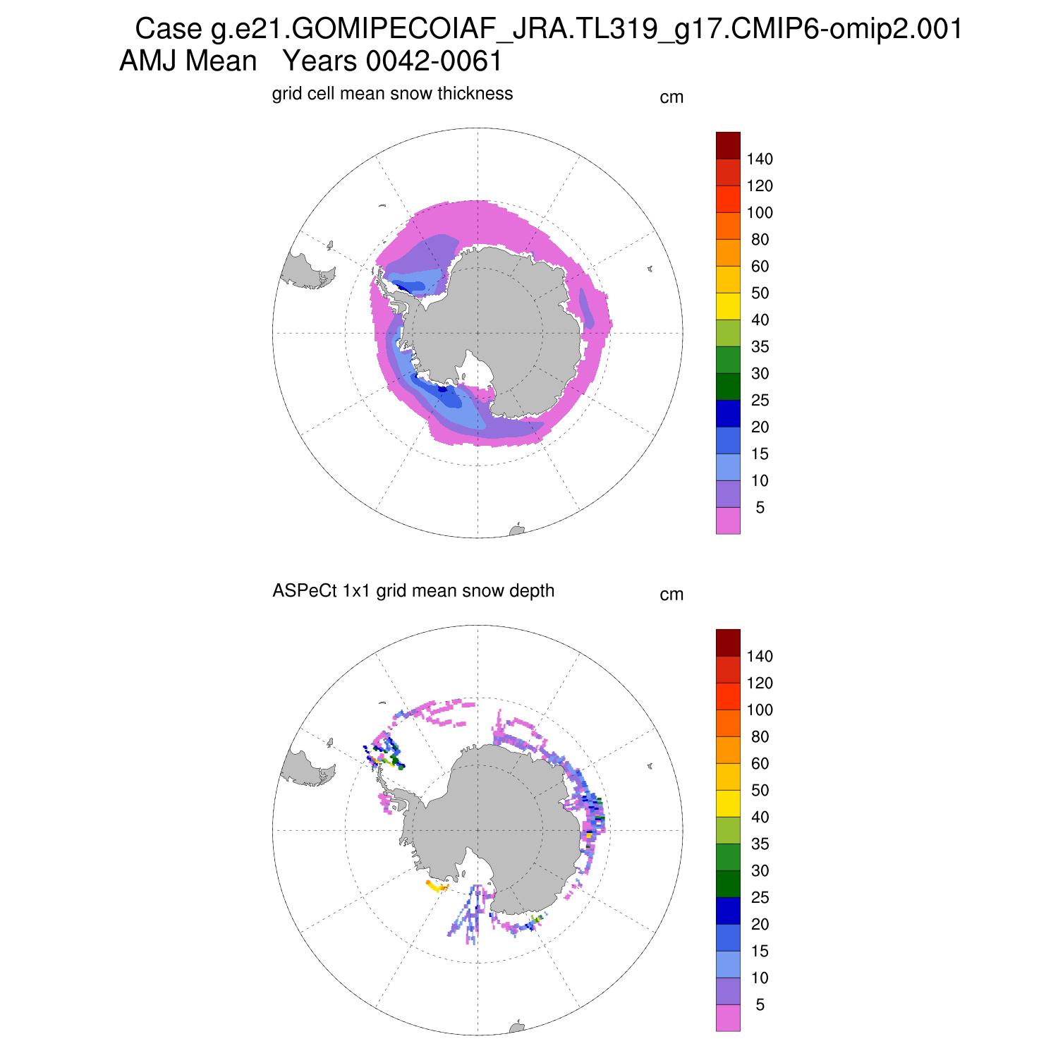 Snow Depth vs ASPeCt (SH) Contour JFM AMJ JAS OND ASPeCt (SH) info