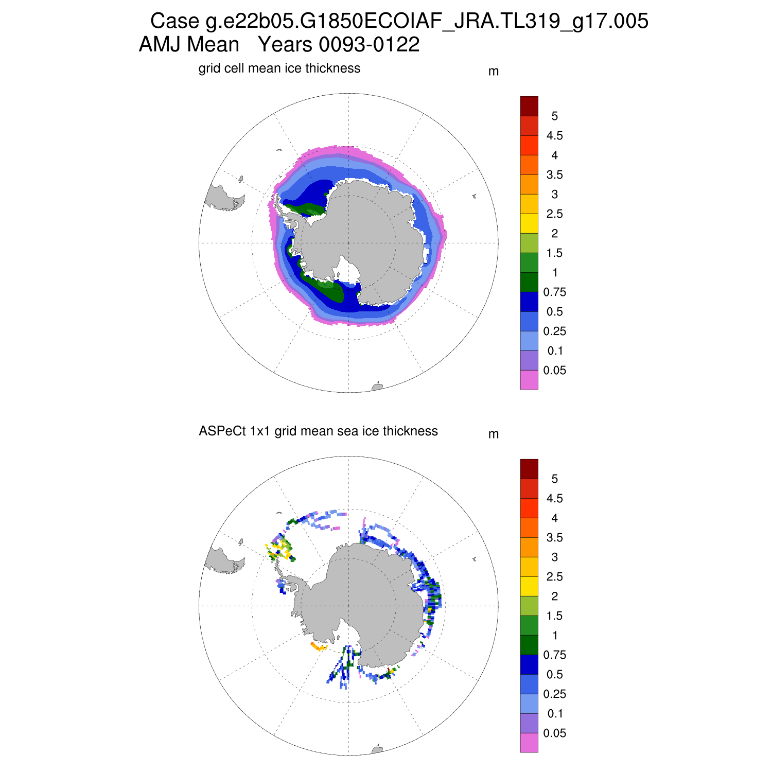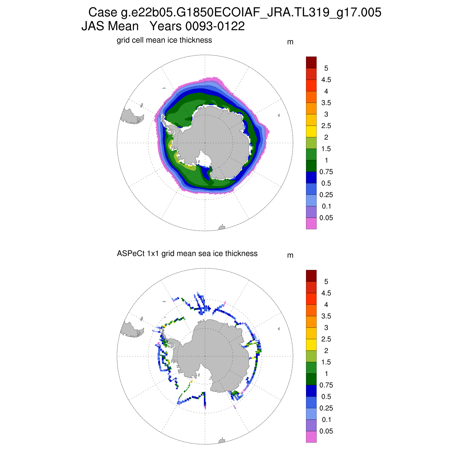 Ice Thickness vs ASPeCt (SH) Contour