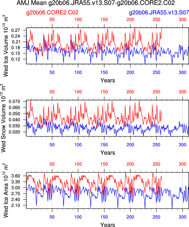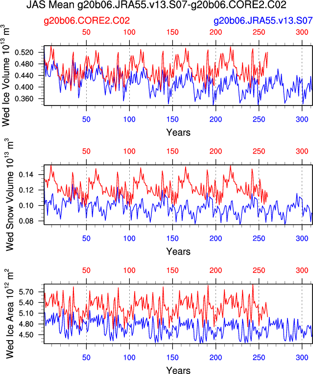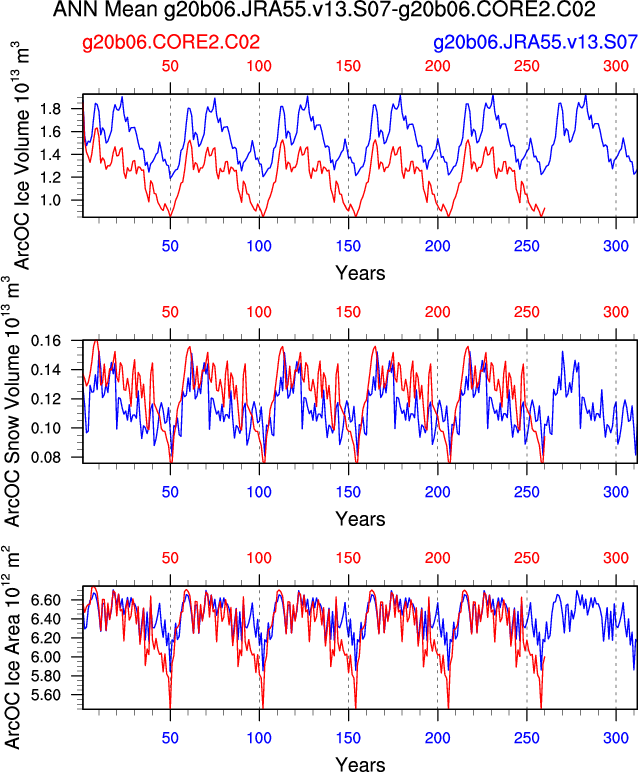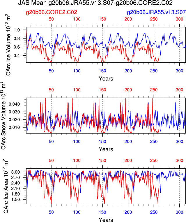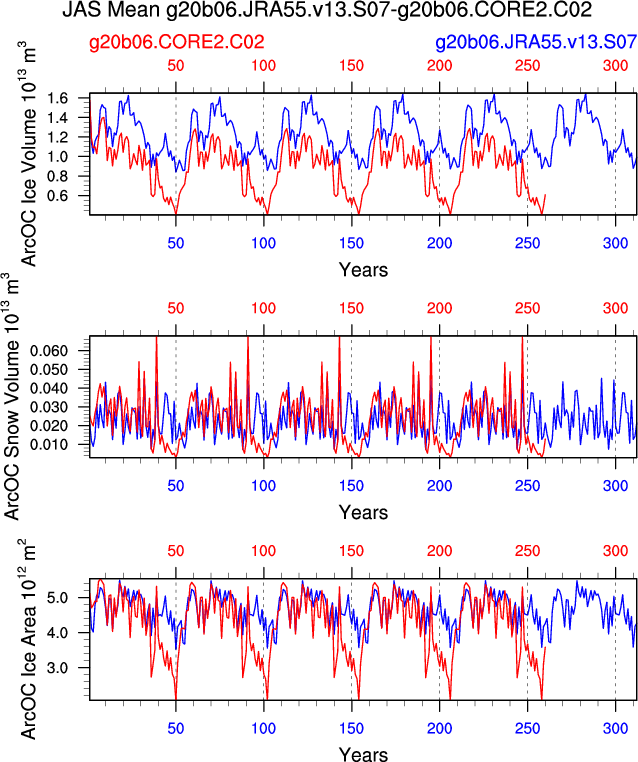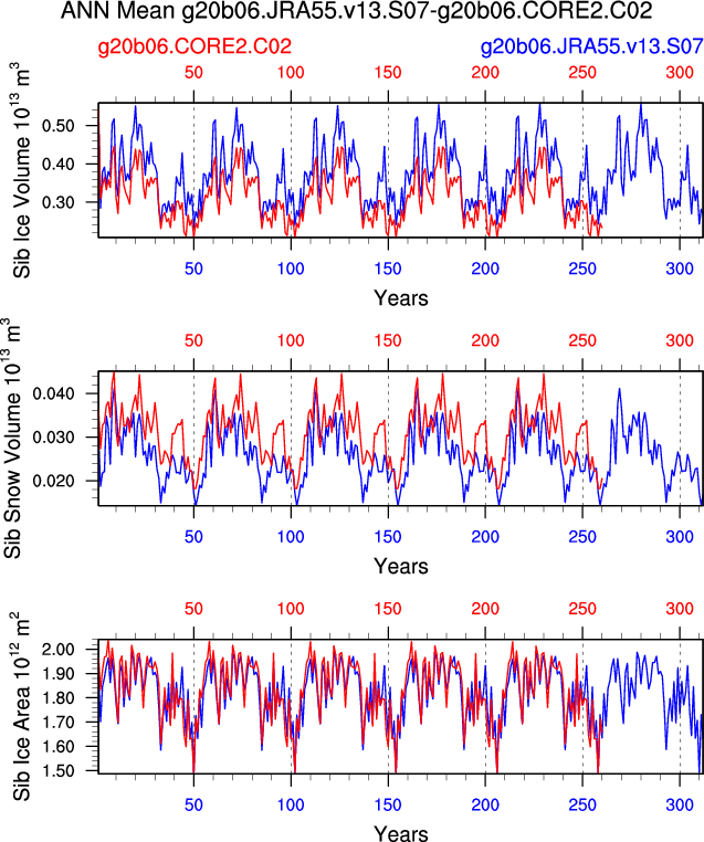 Comparison of runs g20b06.JRA55.v13.S07-g20b06.CORE2.C02: