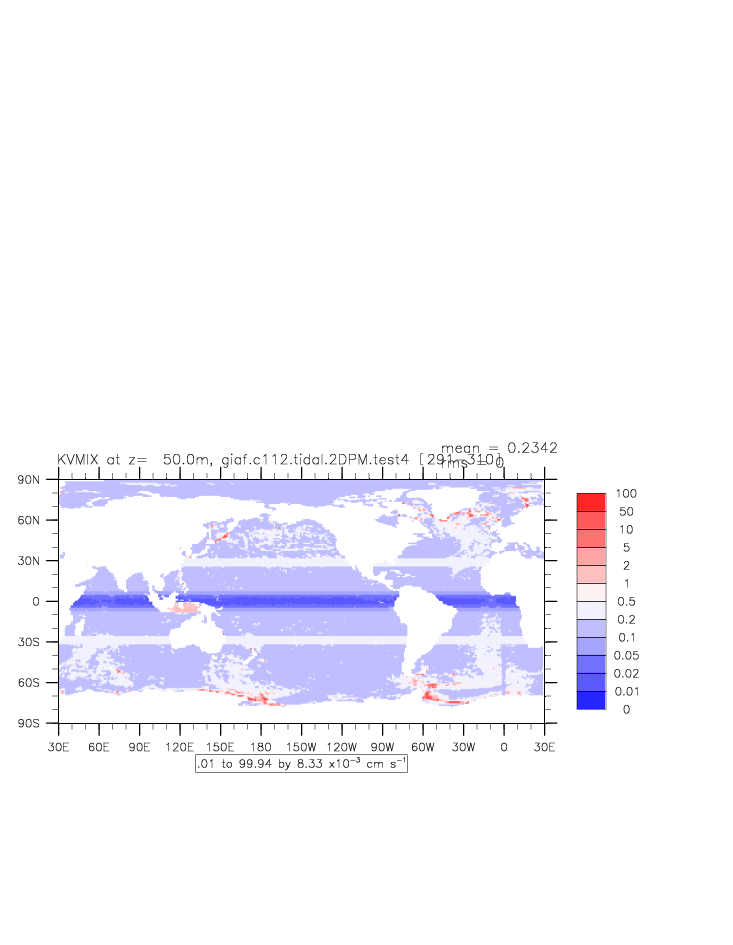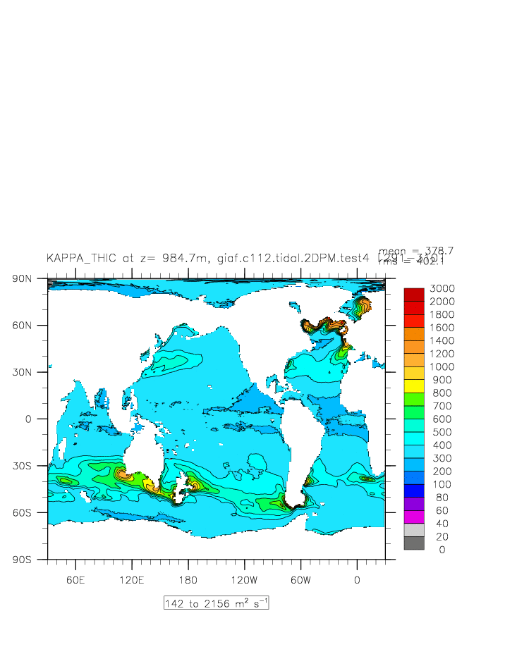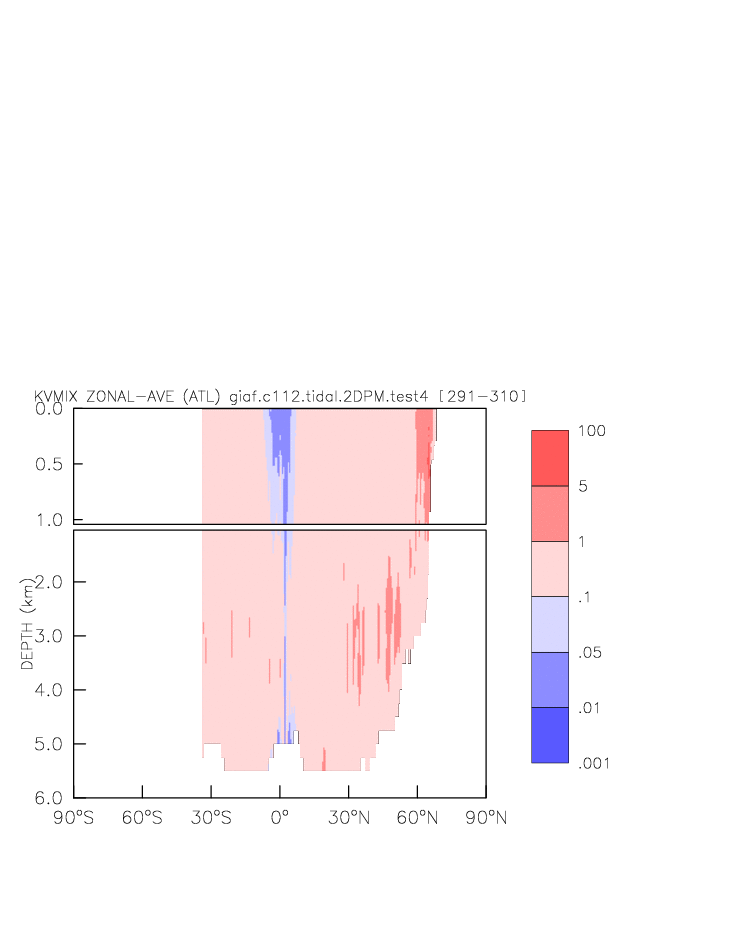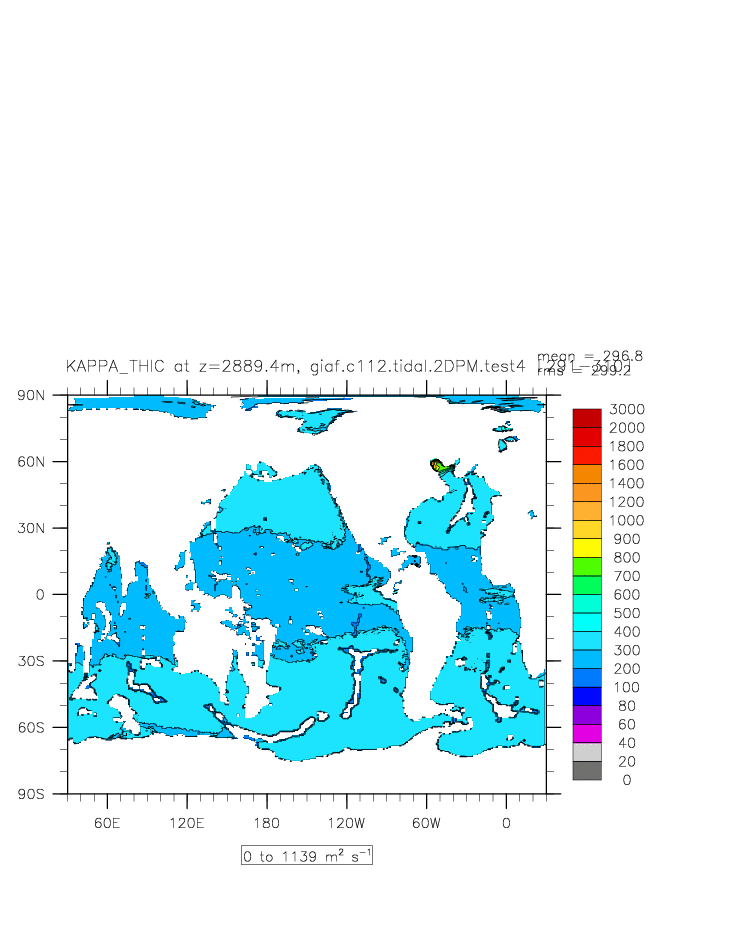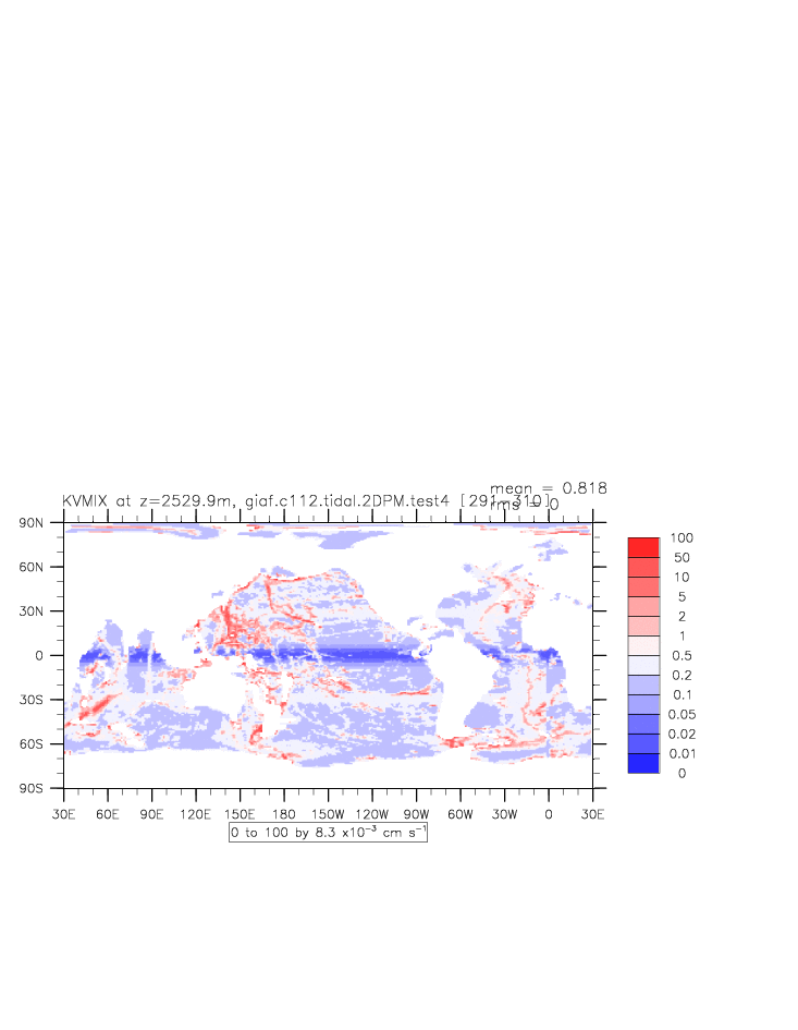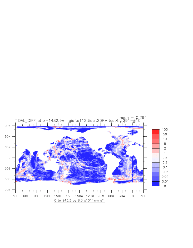 | Vertical diabatic diffusivity due to Tidal Mixing + background at depth