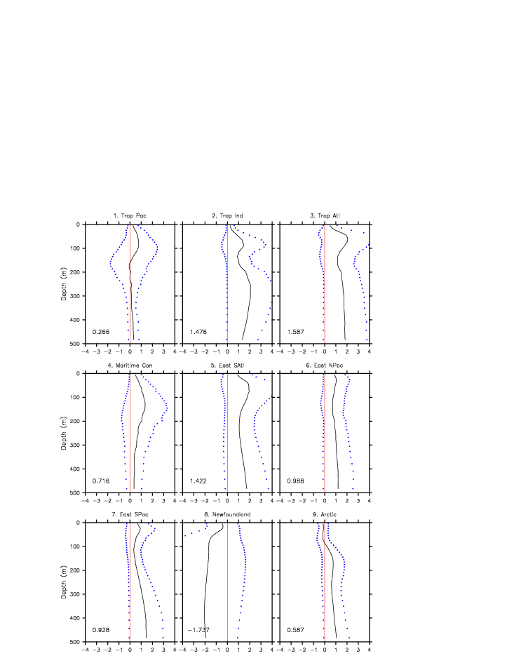 | Regional average T & S anomaly vs. depth