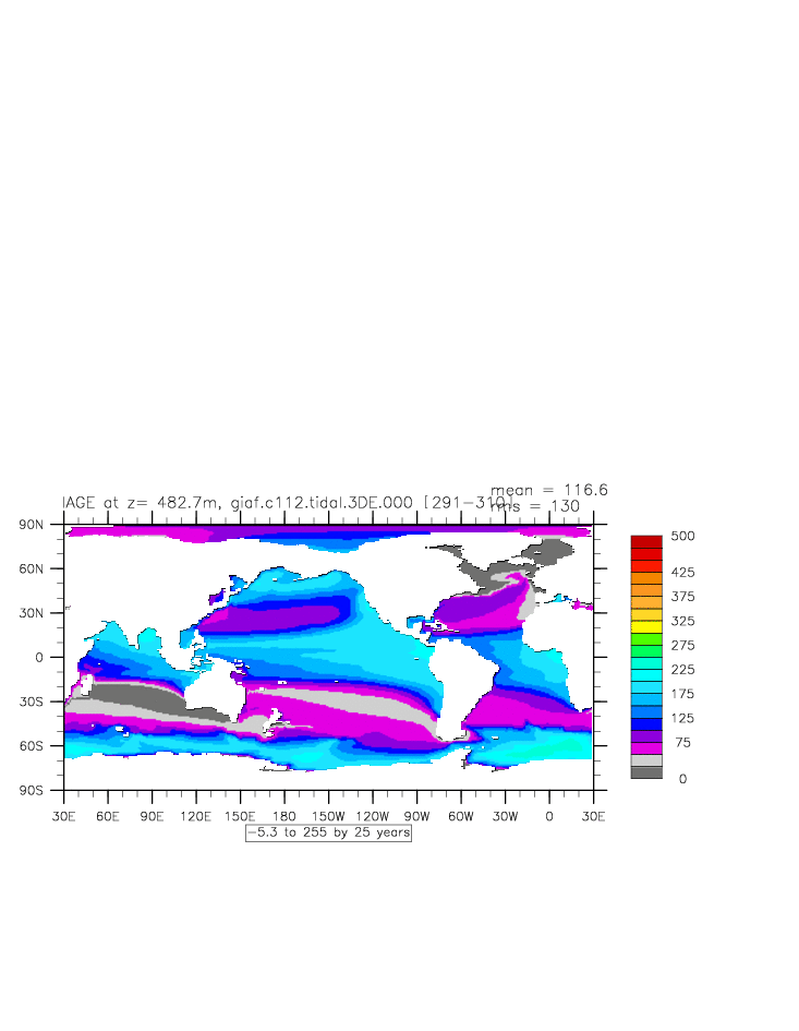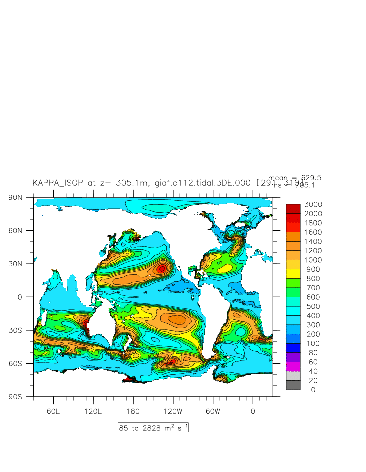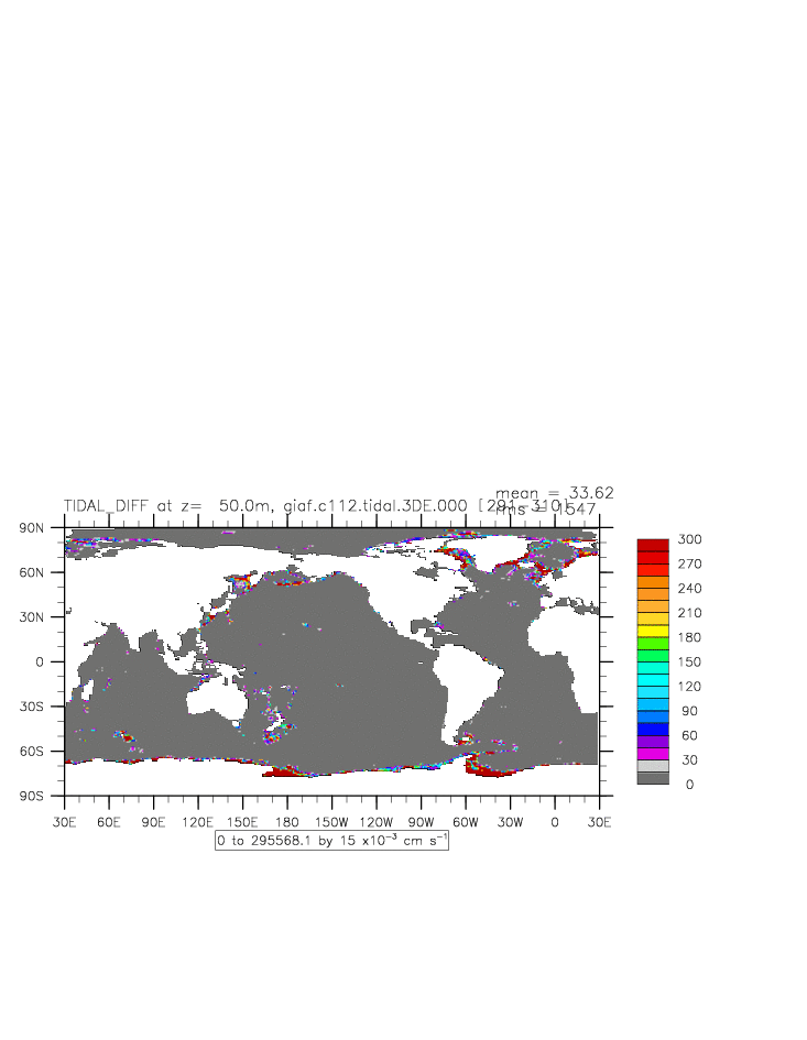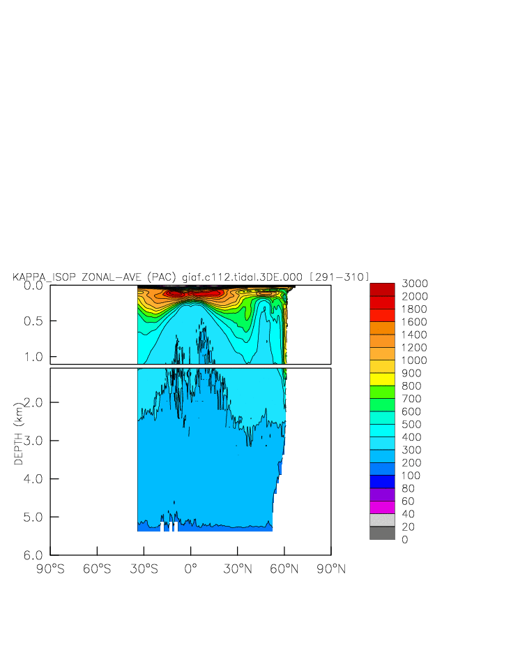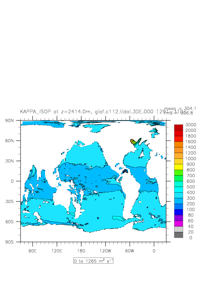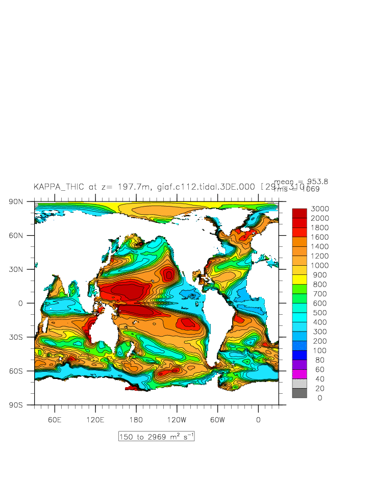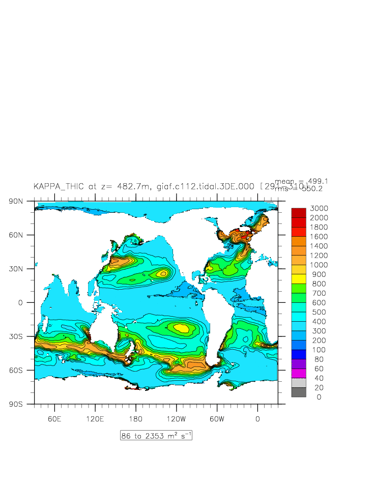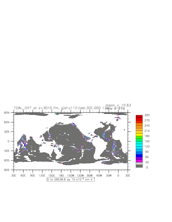 | Vertical diabatic diffusivity due to Tidal Mixing + background at depth