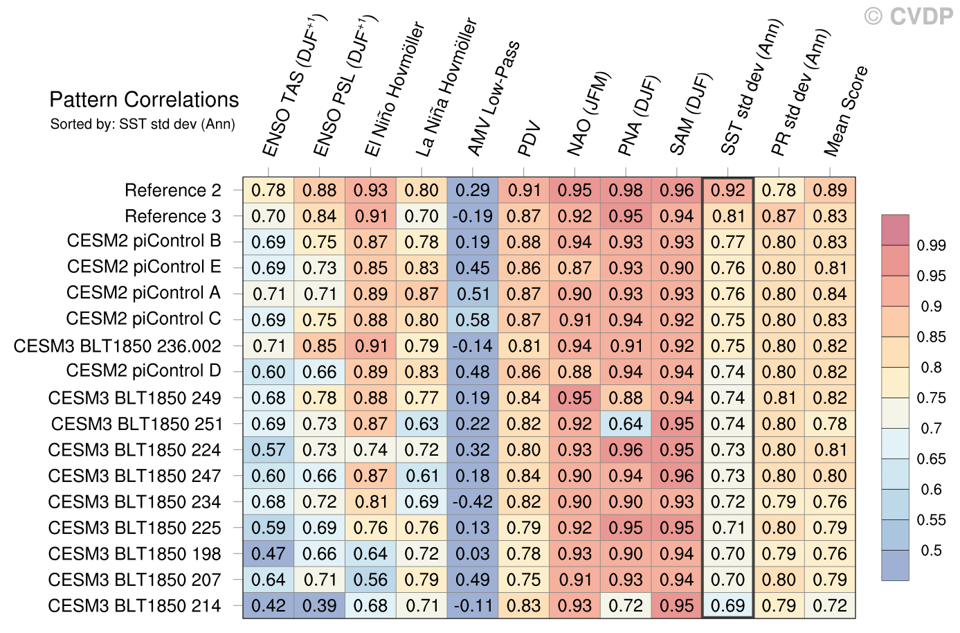 | Sort By: | Namelist (default) | Namelist (Alphabetically) | ENSO TAS | ENSO PSL | El Niño Hovmöller La Niña Hovmöller | AMV Low-Pass | PDV | NAO | PNA | SAM | SST std dev | PR std dev | Mean Score |