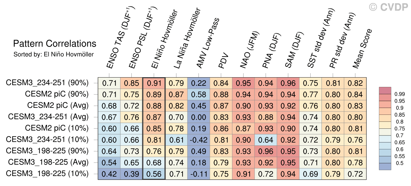 | Sort By: | Namelist (default) | Namelist (Alphabetically) | ENSO TAS | ENSO PSL | El Niño Hovmöller | La Niña Hovmöller | AMV Low-Pass | PDV | NAO | PNA | SAM | SST std dev | PR std dev | Mean Score |