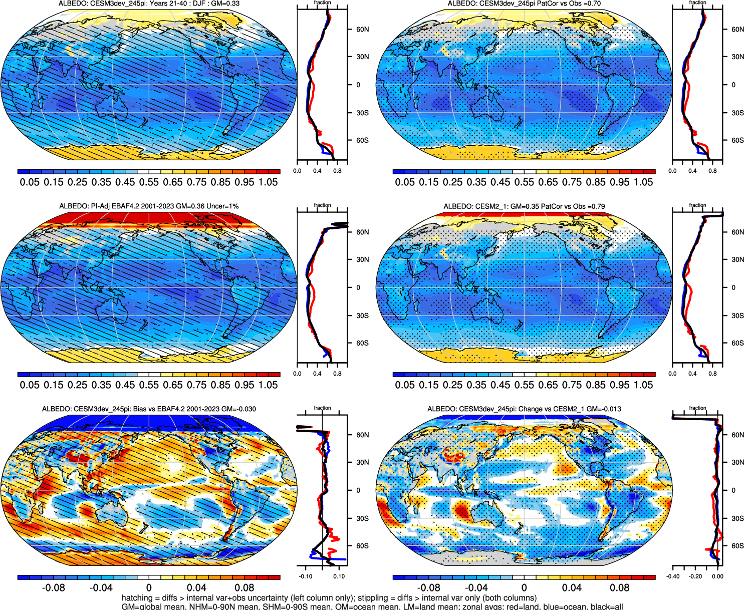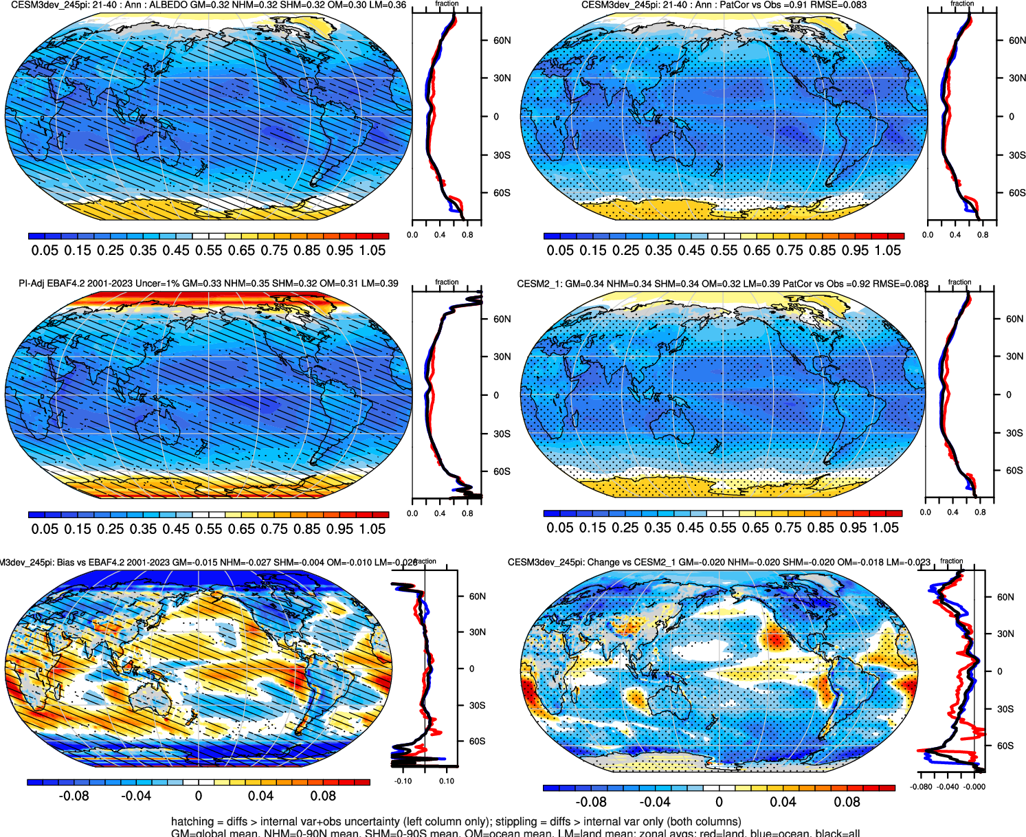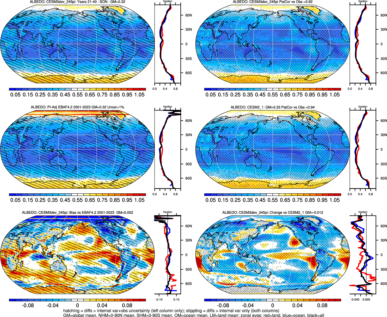 | ALBEDO | OCEAN | LAND | LAND+OCEAN |