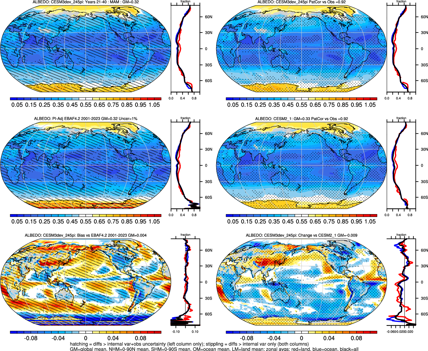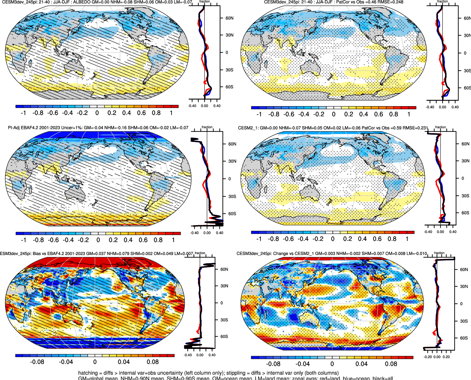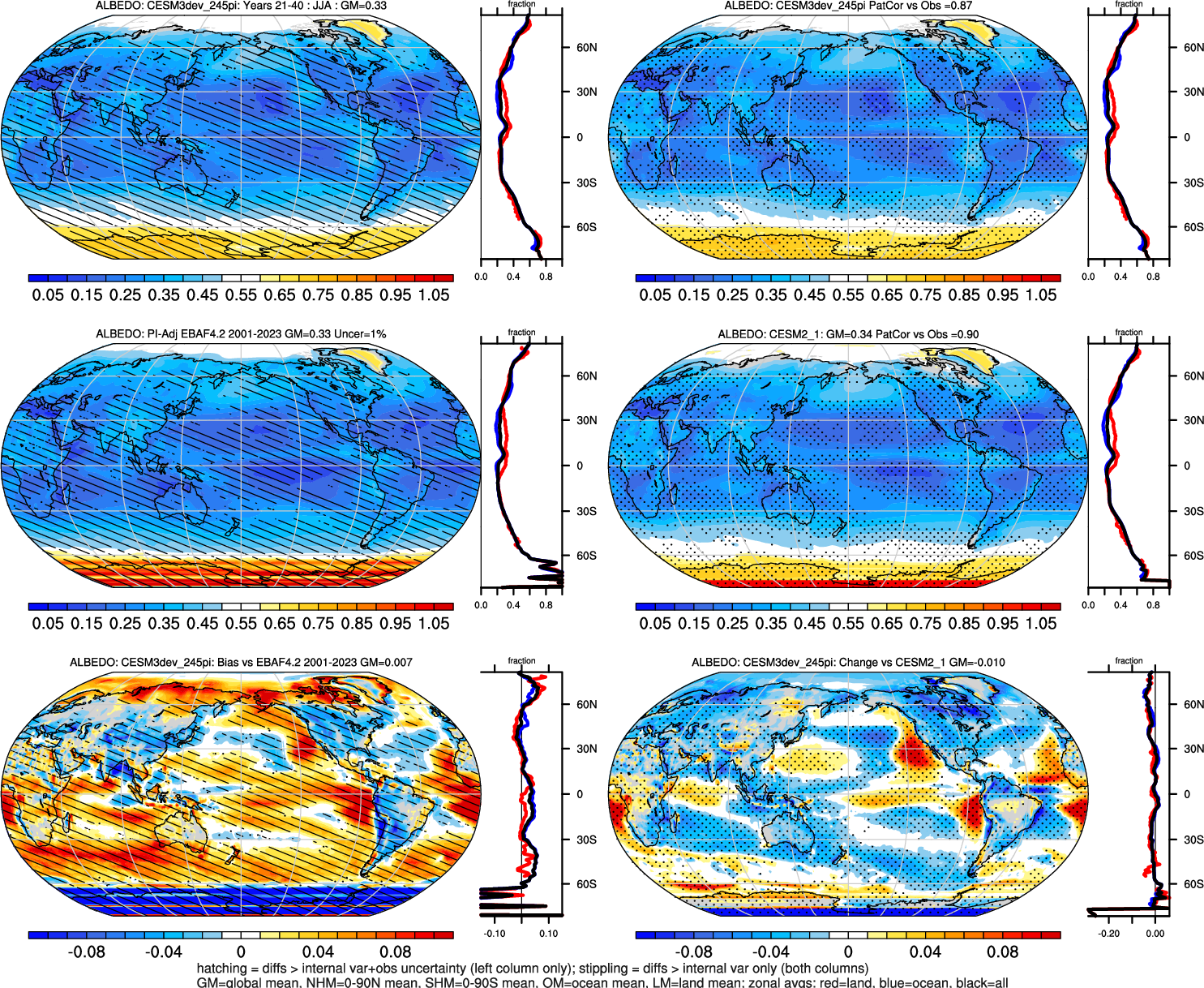 | ALBEDO | OCEAN | LAND | LAND+OCEAN |