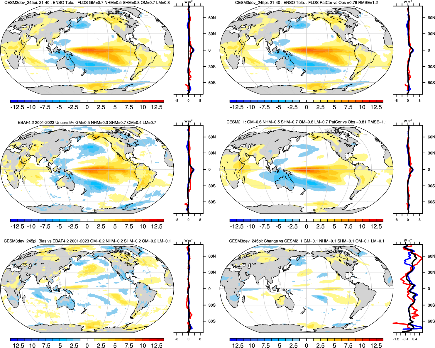 | LWCF 0.89 | Annual 0.90 | JJA-DJF 0.92 | ENSO Tele 0.86 | DJF 0.90 | MAM 0.84 | JJA 0.91 | SON 0.87 |