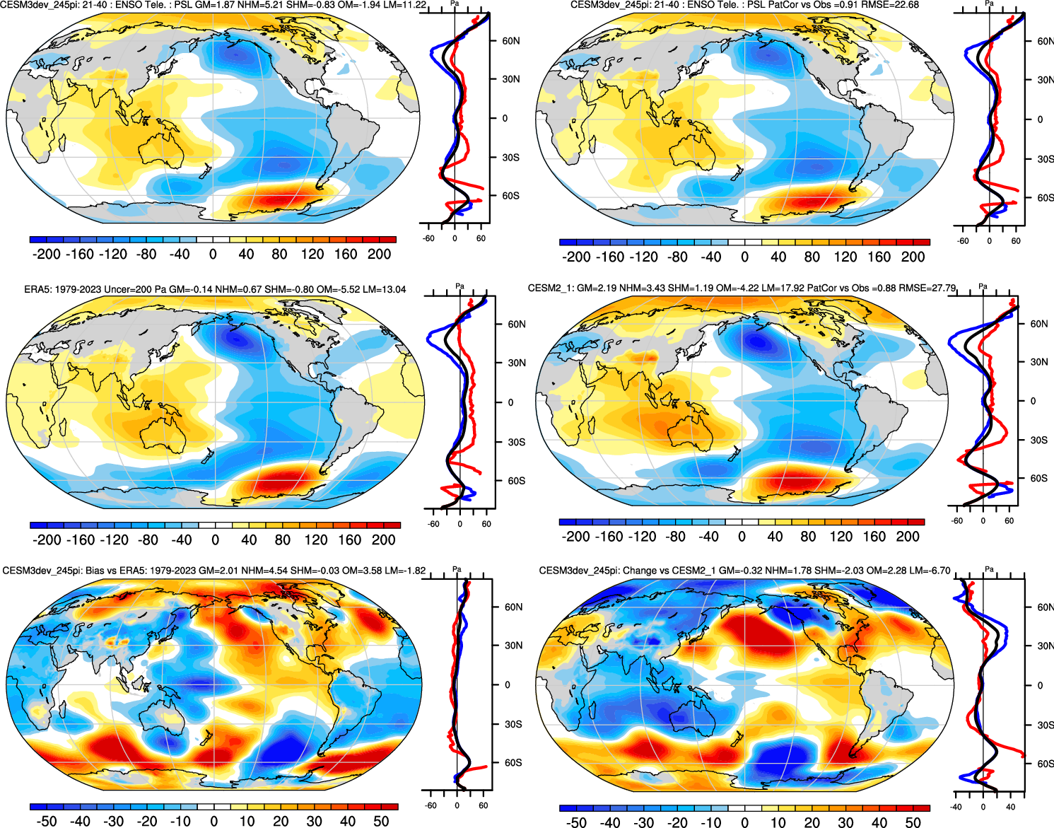 | PSL 0.95 | Annual 0.99 | JJA-DJF 0.96 | ENSO Tele 0.91 | DJF 0.98 | MAM 0.98 | JJA 0.98 | SON 0.99 |