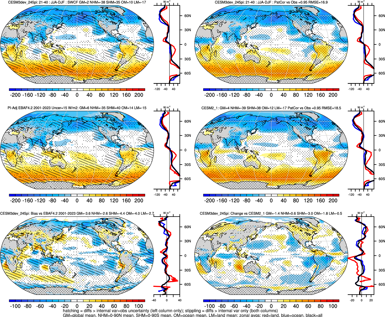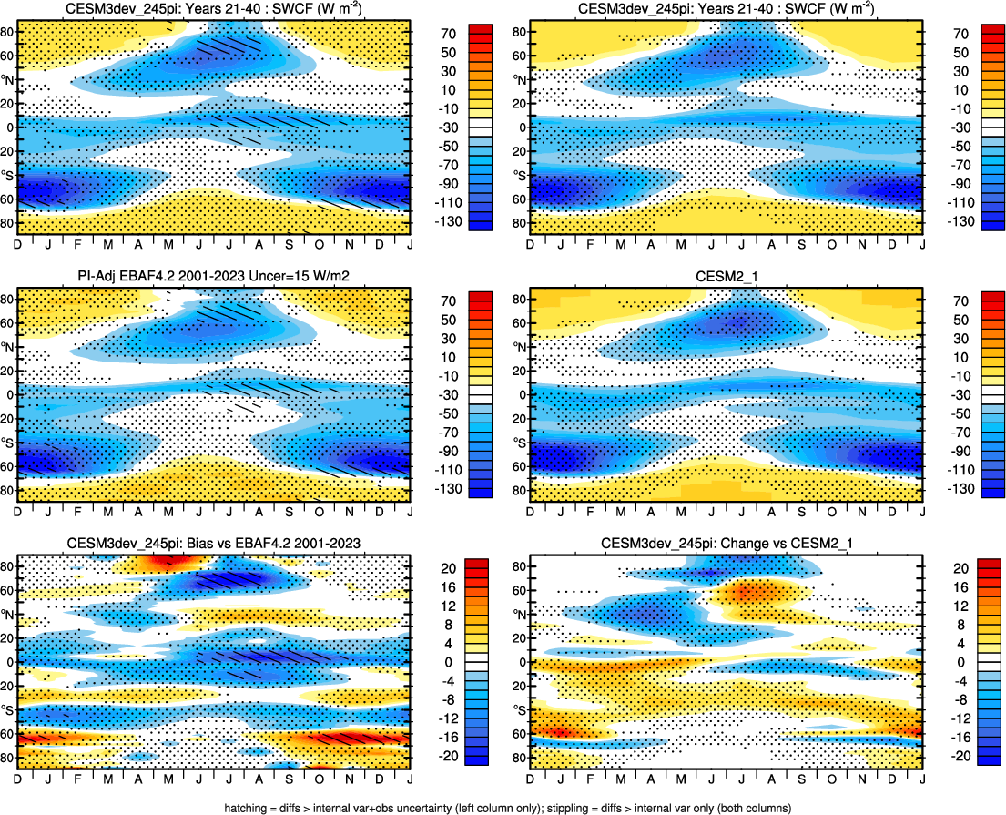| SWCF 0.84 | Annual 0.88 | JJA-DJF 0.95 | ENSO Tele 0.69 | DJF 0.94 | MAM 0.89 | JJA 0.89 | SON 0.88 |