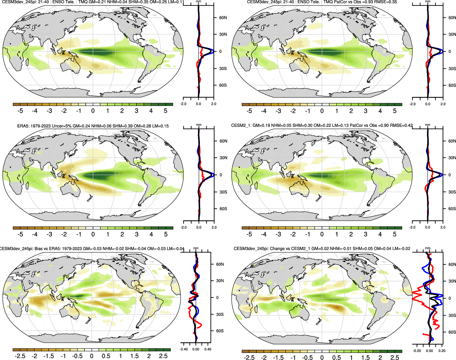 | TMQ 0.97 | Annual 0.99 | JJA-DJF 0.98 | ENSO Tele 0.93 | DJF 0.99 | MAM 0.99 | JJA 0.98 | SON 0.98 |