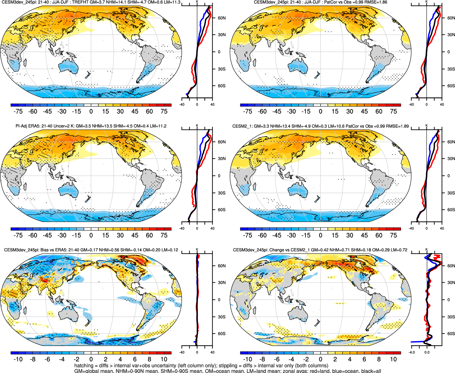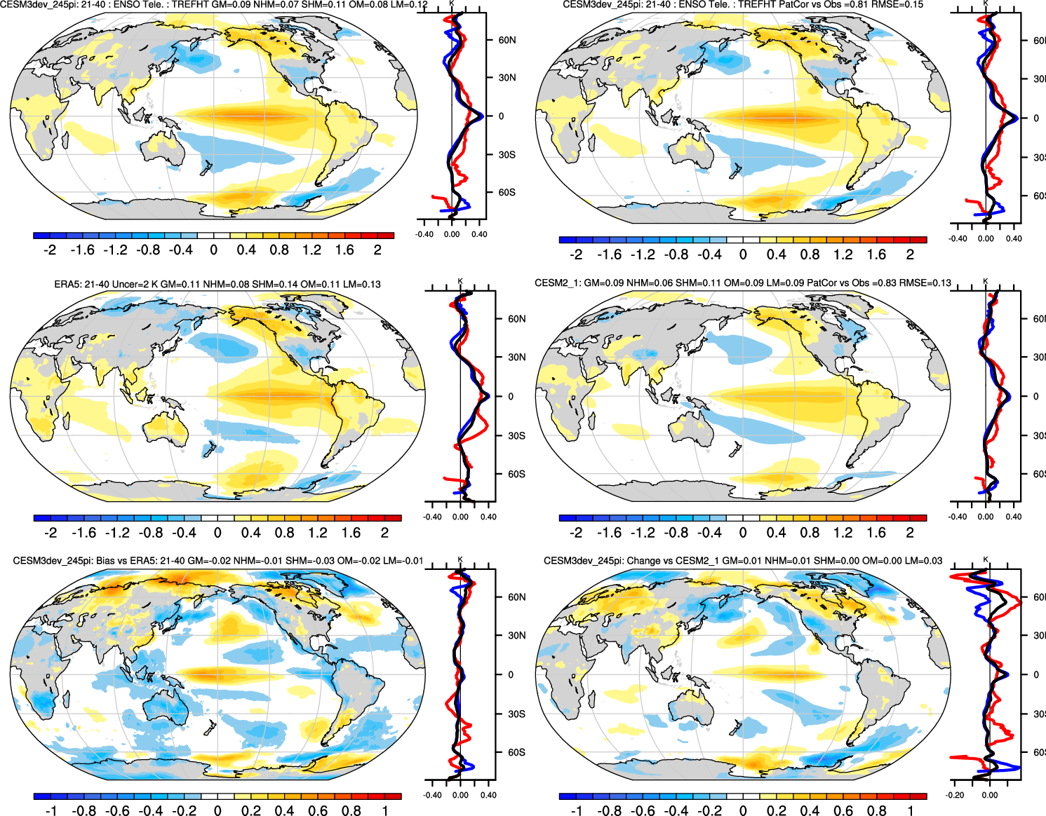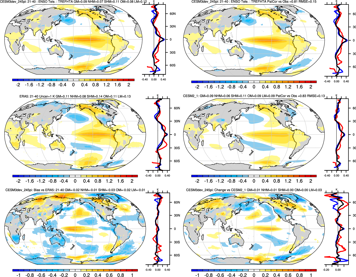 | TREFHT | Annual 1.00 | JJA-DJF 0.99 | ENSO Tele 0.81 | DJF 0.99 | MAM 0.99 | JJA 0.99 | SON 0.99 |