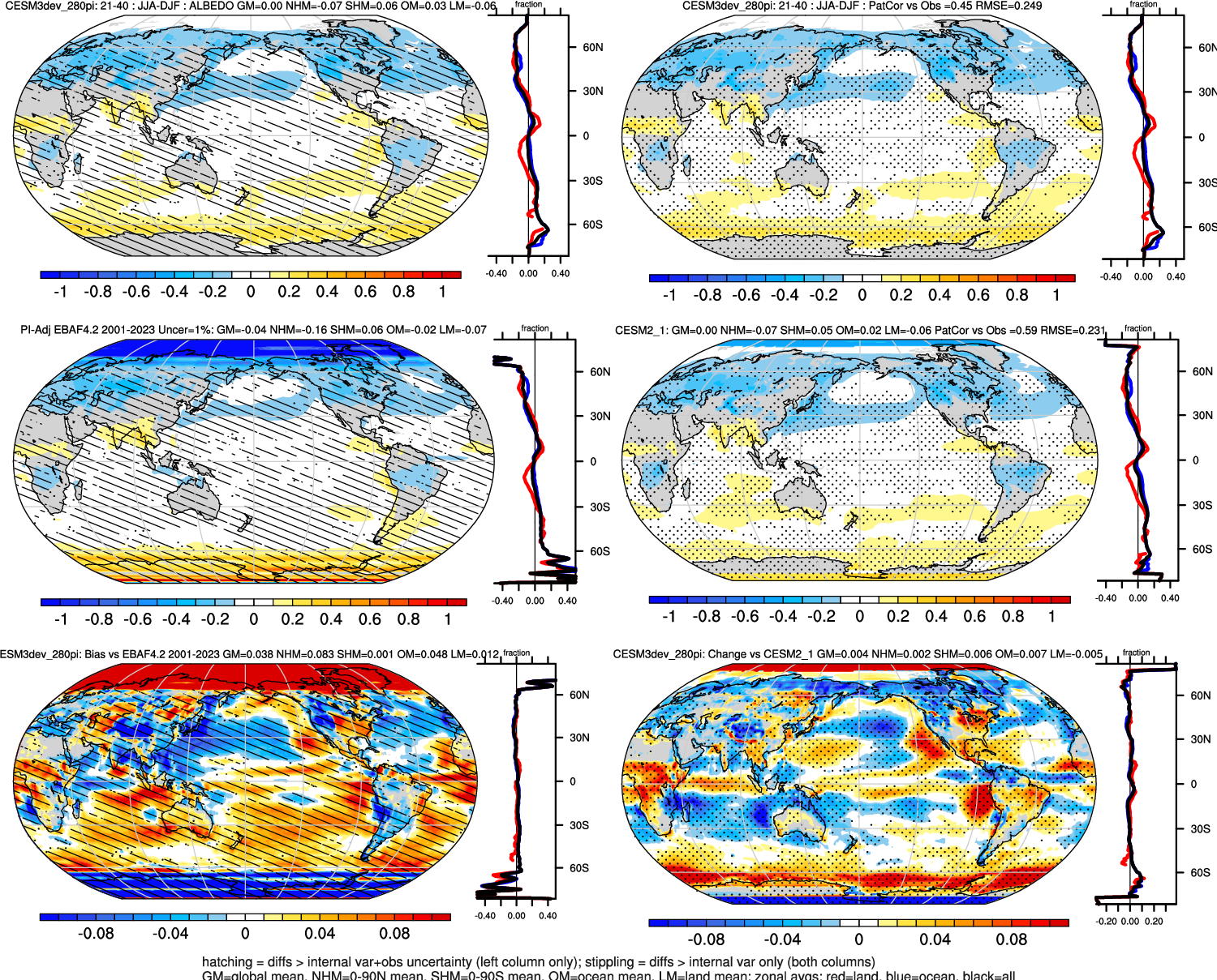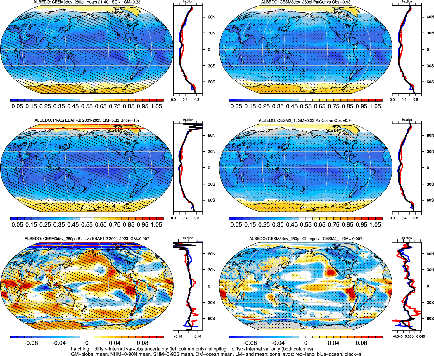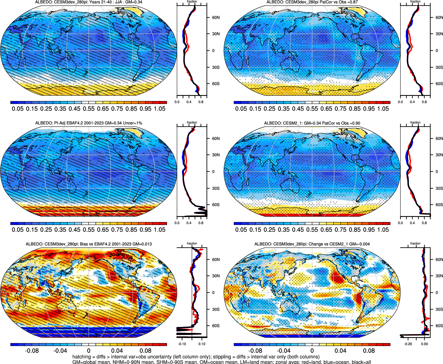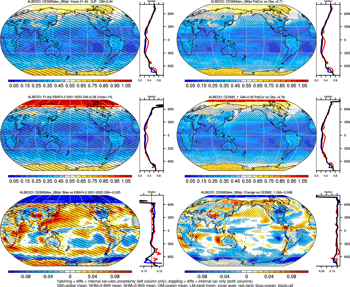 | ALBEDO | OCEAN | LAND | LAND+OCEAN |